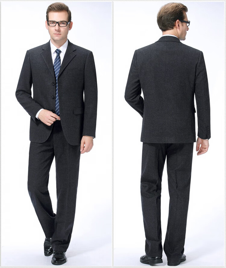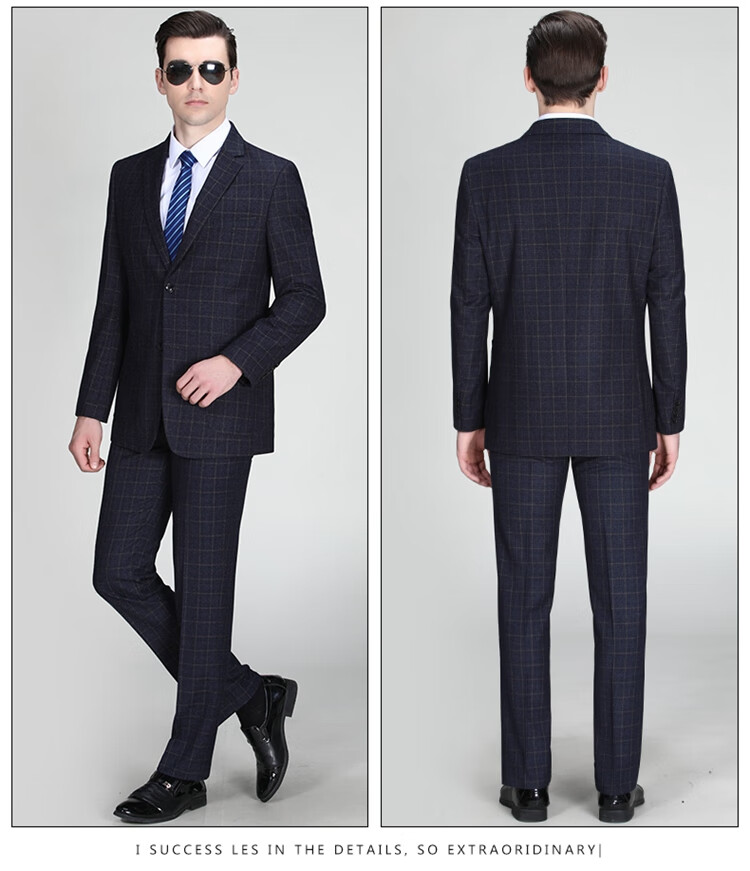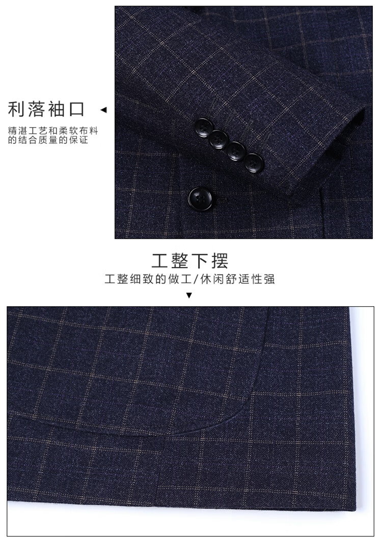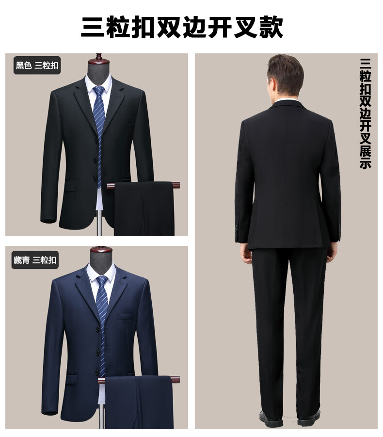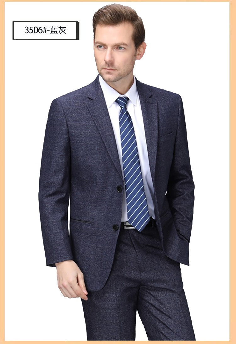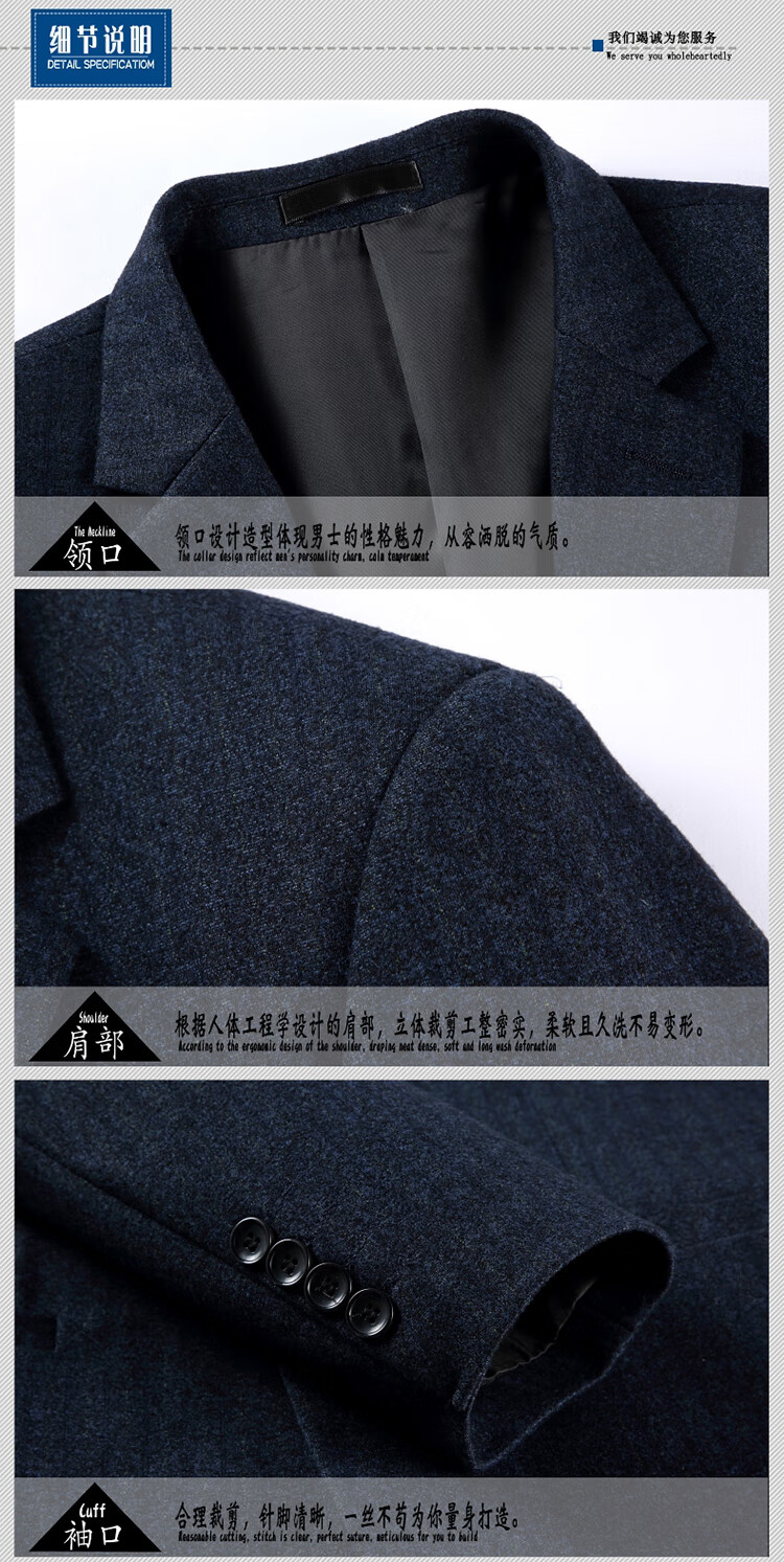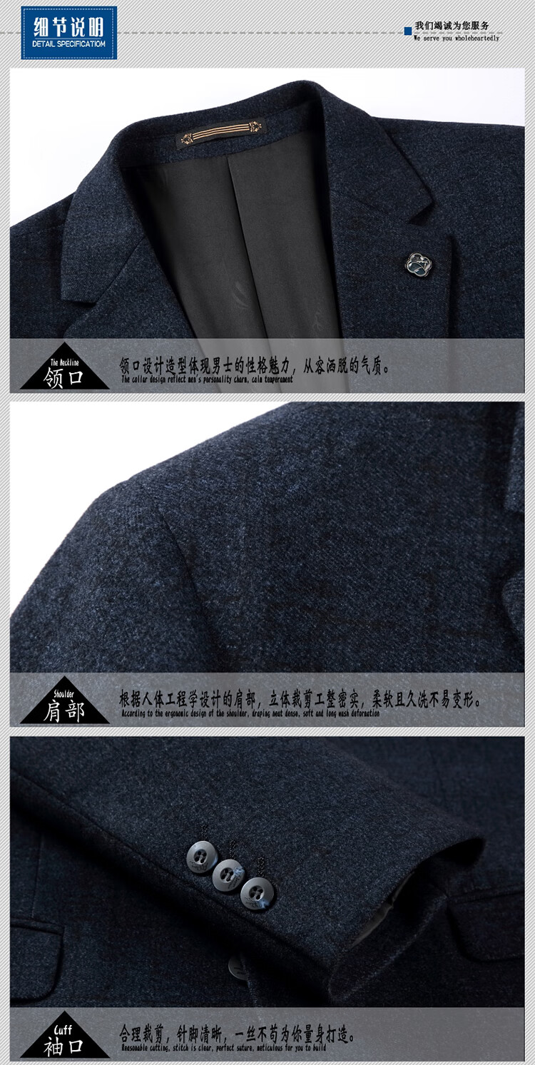 Hengyuanxiang Wool Suit Men's Spring and Autumn Two-piece Suit for Middle-aged and Elderly Business Formal Wedding Banquet Anti-wrinkle Commuting Suit for Dad 2218 Sapphire Blue (Three Buttons) Four Seasons No Slit (please note waist when ordering) S 165/84A Recommended 110-125 Jin Jin equals 0.5 kg