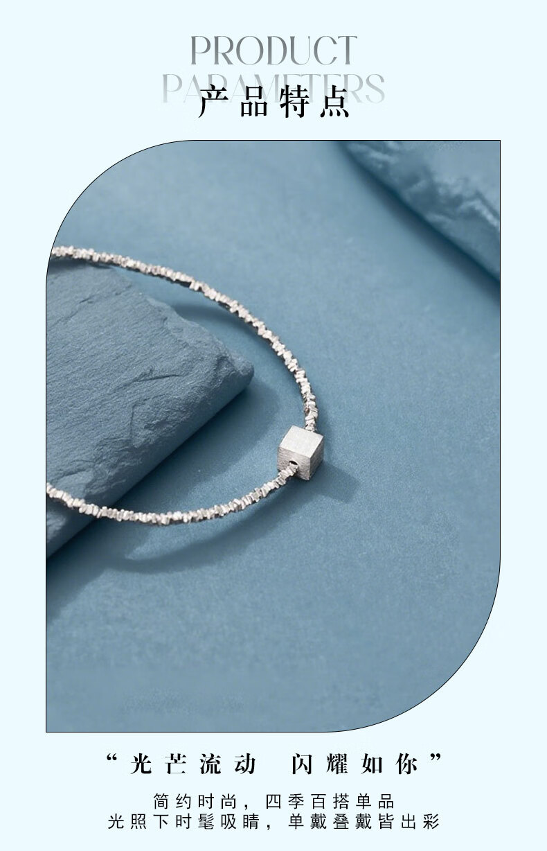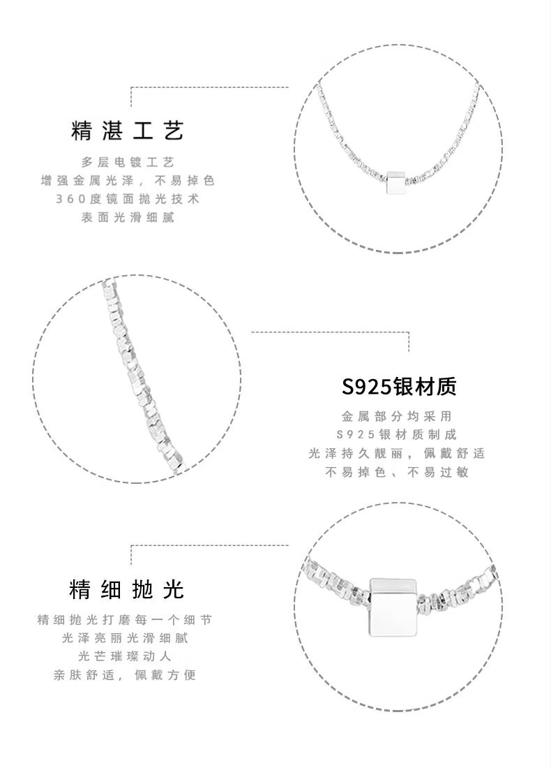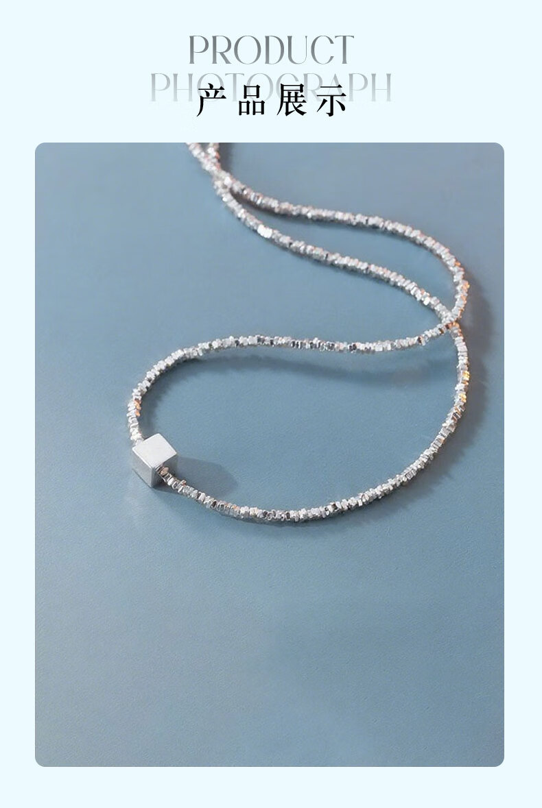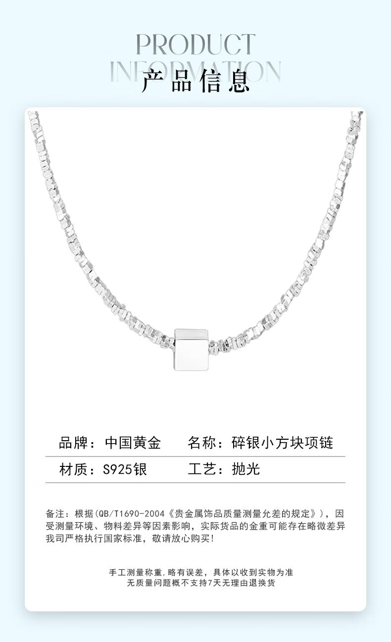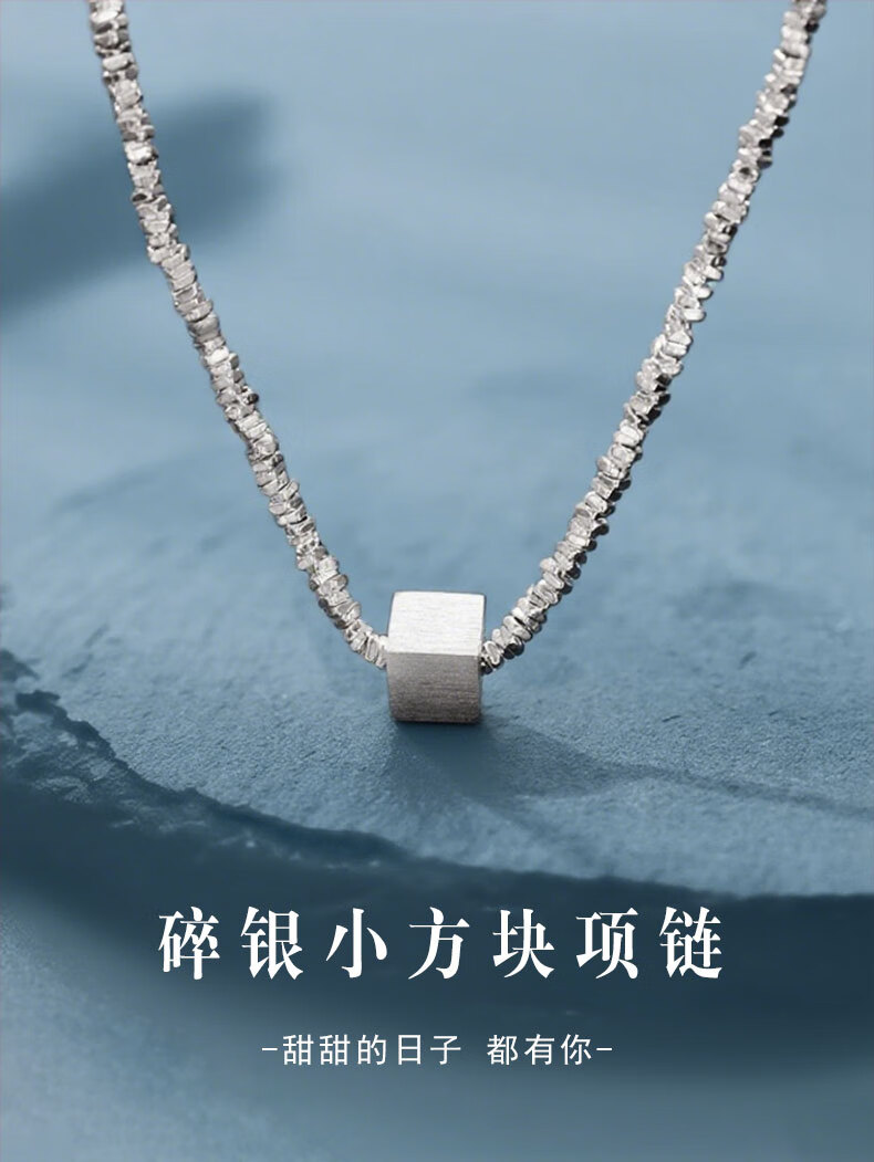 CHINA GOLD Broken Silver Small Square Necklace Women's Versatile S925 Silver Square Pendant Valentine's Day Birthday Gift for Girlfriend and Wife Broken Silver Small Square Necklace