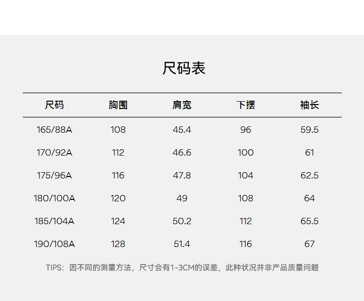 China (cm) 160-165/84-86 165-170 / 88-90 167-172 / 92-96 168-173 / 98-102 170-176 / 106-110