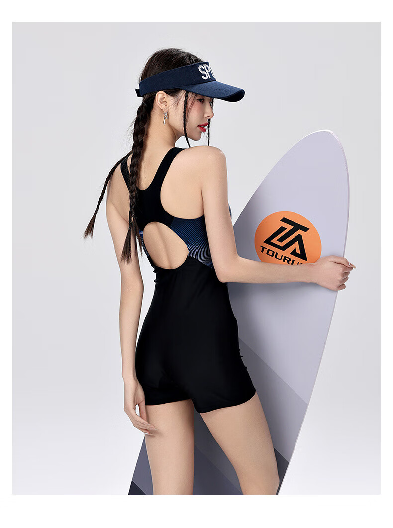 New hot spring swimsuit women's racing close-fitting cover-up body slimming one-piece boxer sports swimsuit sleeveless backless swimsuit black 220094 L
