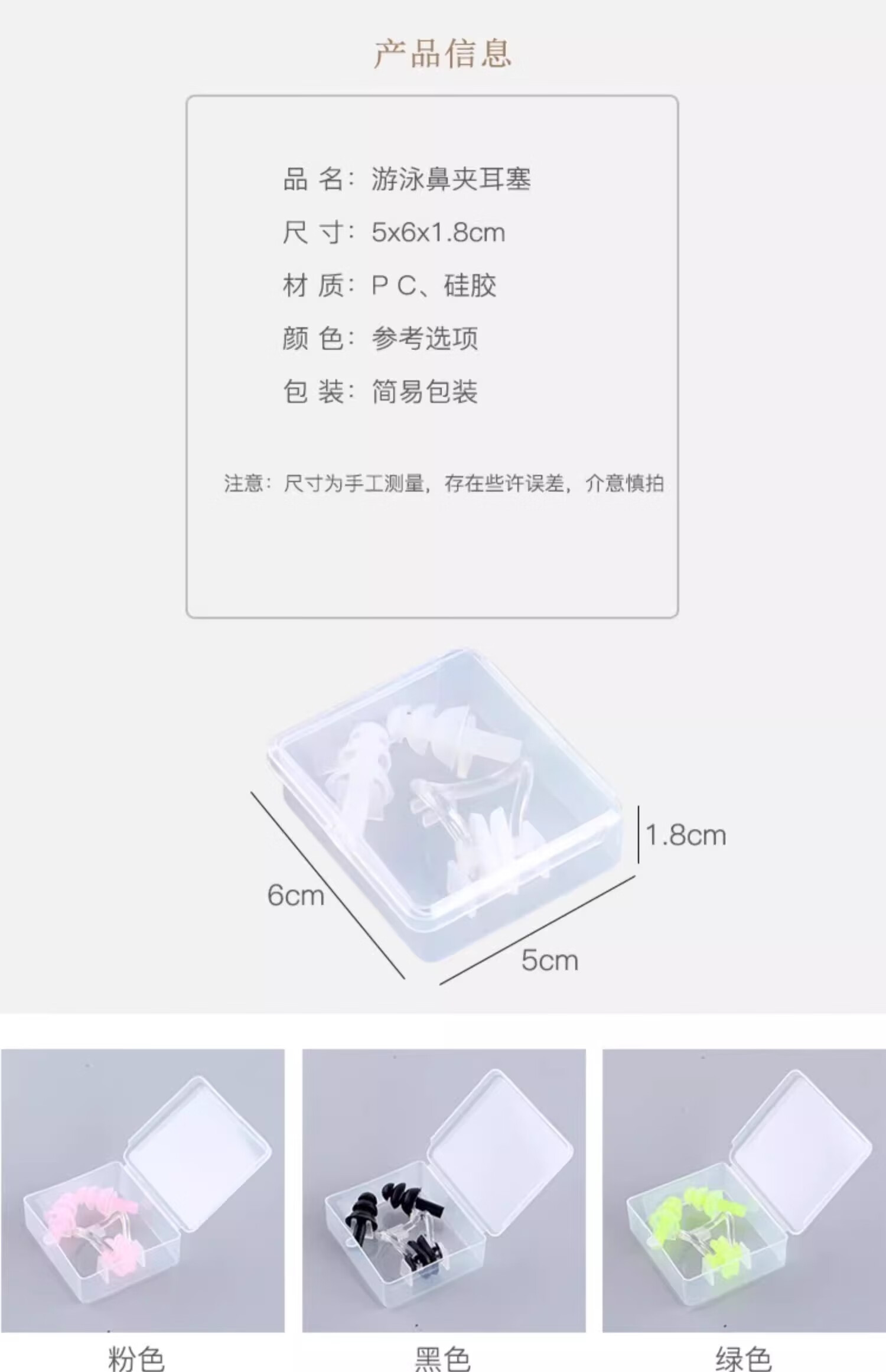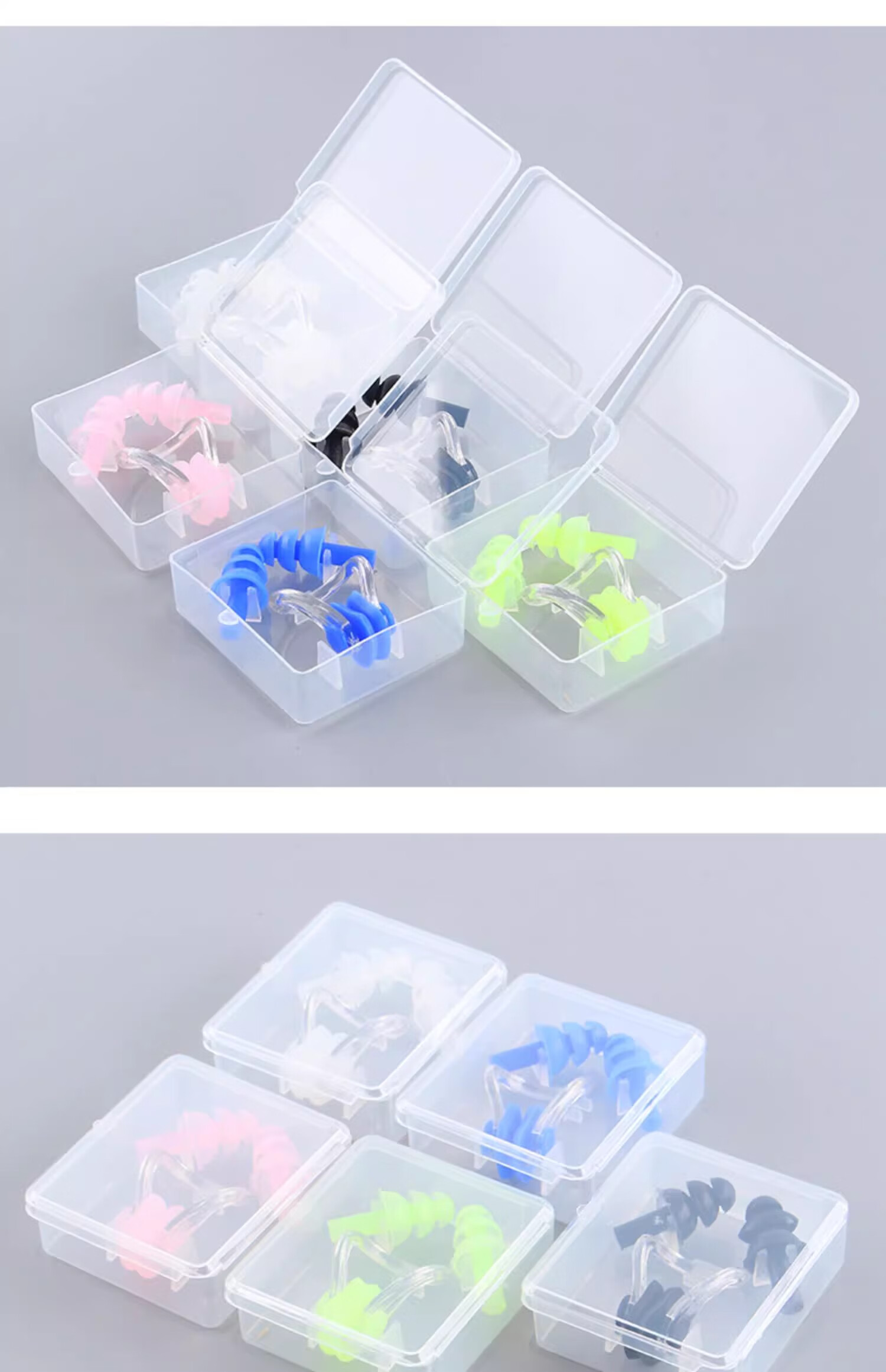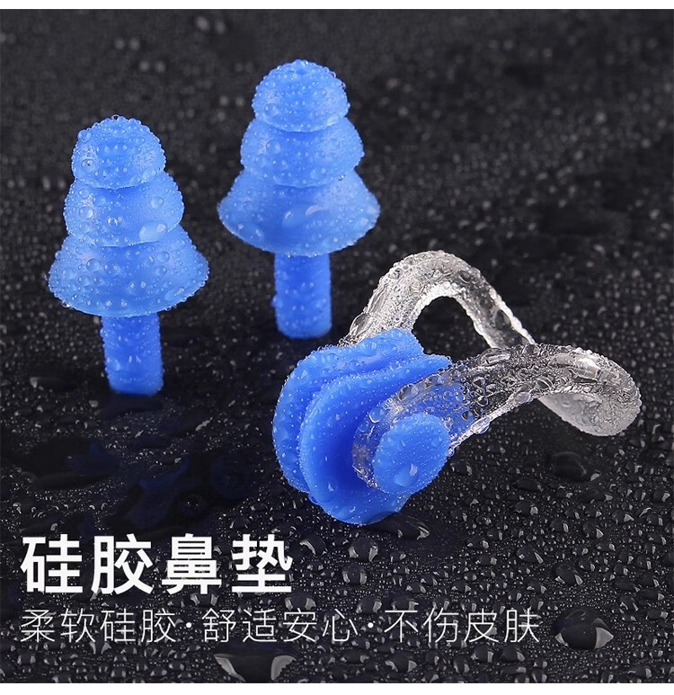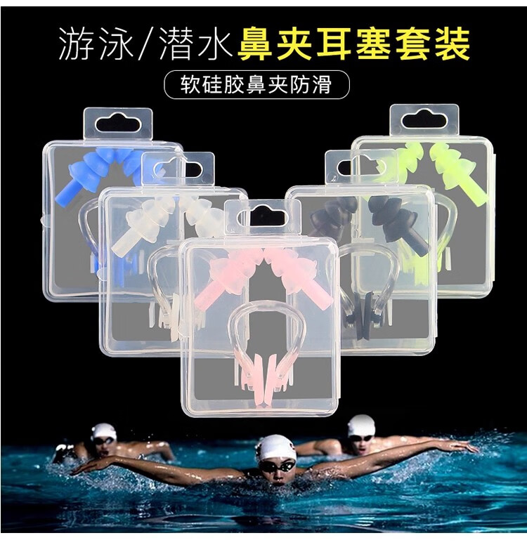 Swimming earplugs, nose clip, three-piece set, silent, waterproof, silicone, water-proof, student training and competition earplugs, pink nose clip earplugs, bagged