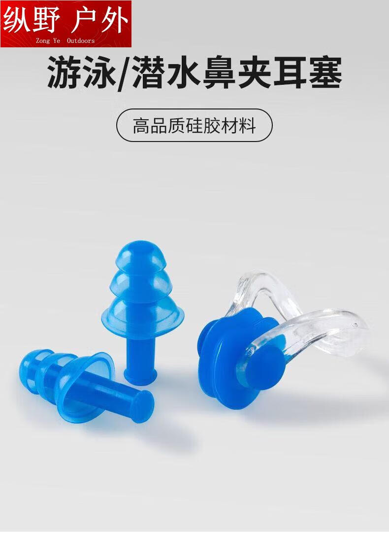 Kaooseen Swimming Nose Clip Earplugs Set Silicone Nose Plugs Children's Special Anti-Choking Adult Diving Earplugs Anti-Black Universal Soft Silicone 1 Nose Clip + 2 Ears