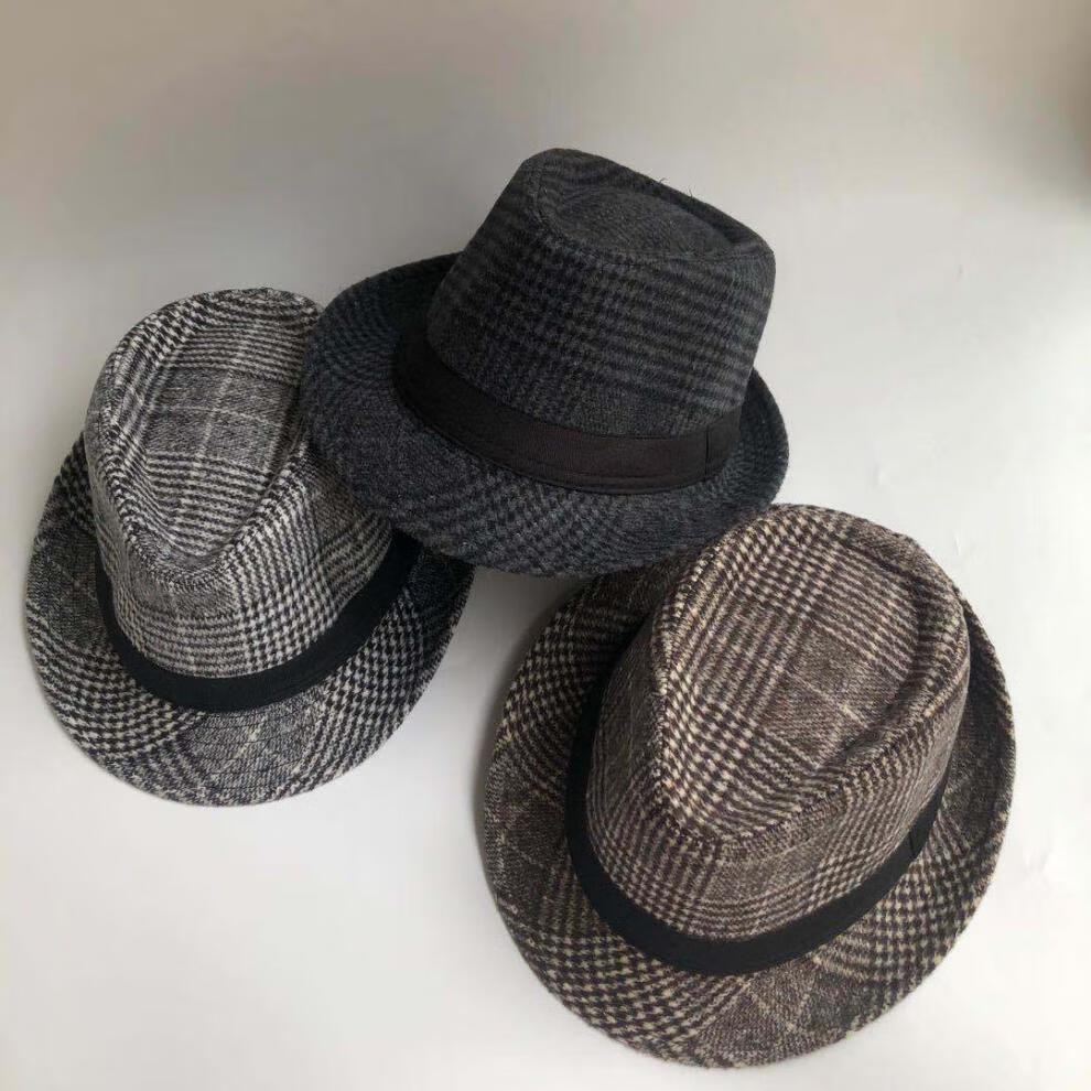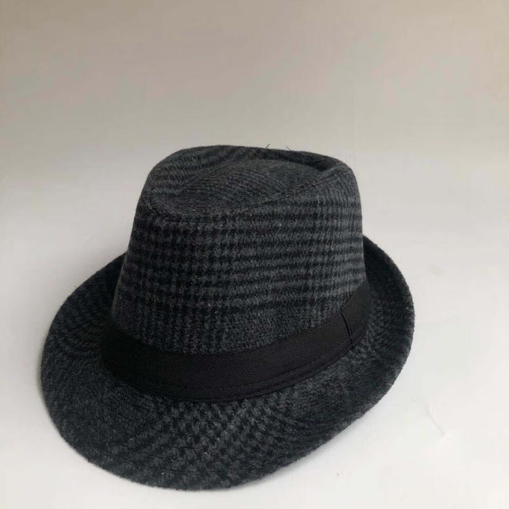 Qingyou Xu Wenqiang's same style hat, men's top hat Shanghai Tang Xu Wenqiang's same style British woolen jazz hat for middle-aged and elderly people, solid color woolen-black, adult version 58cm
