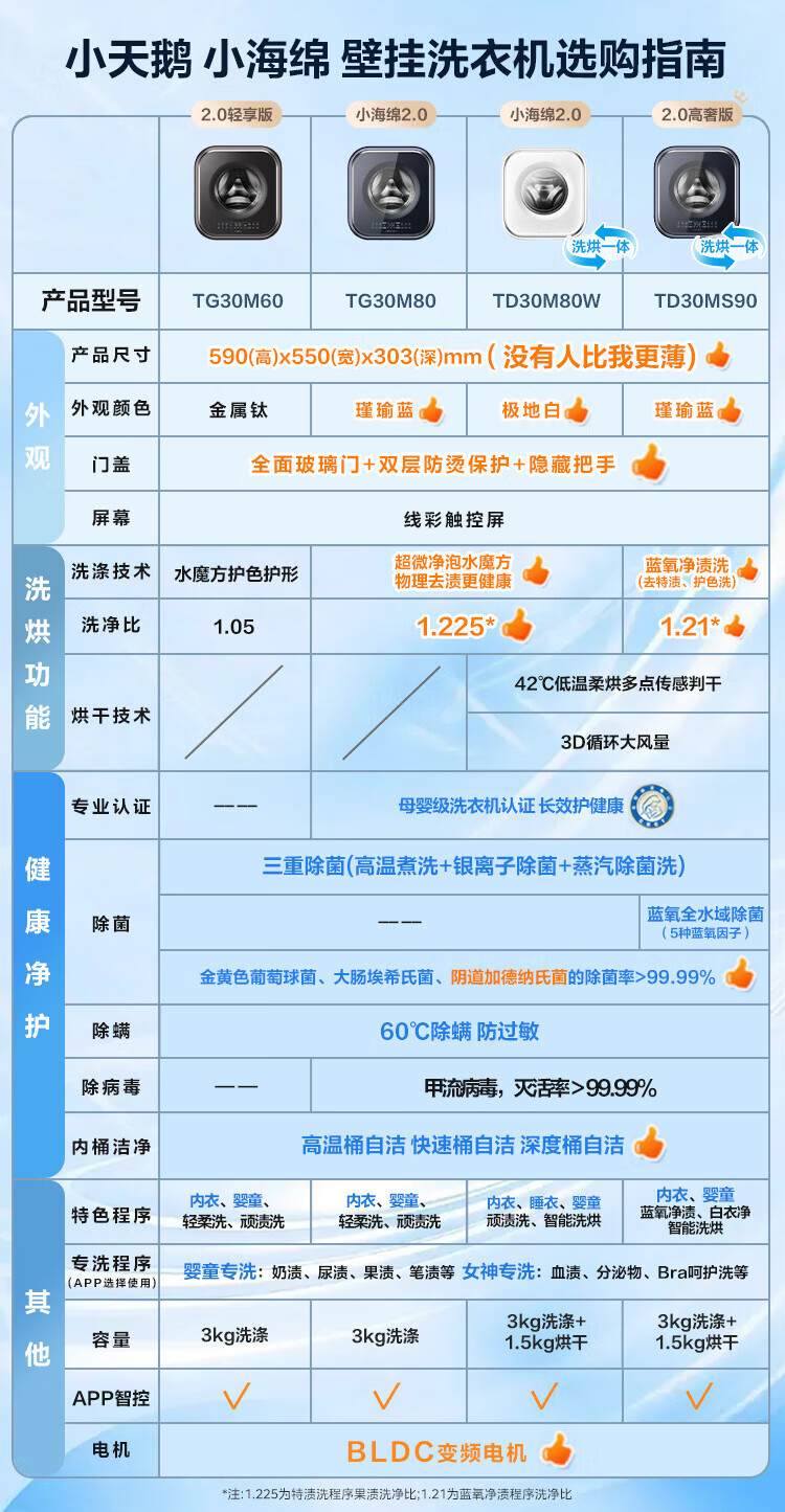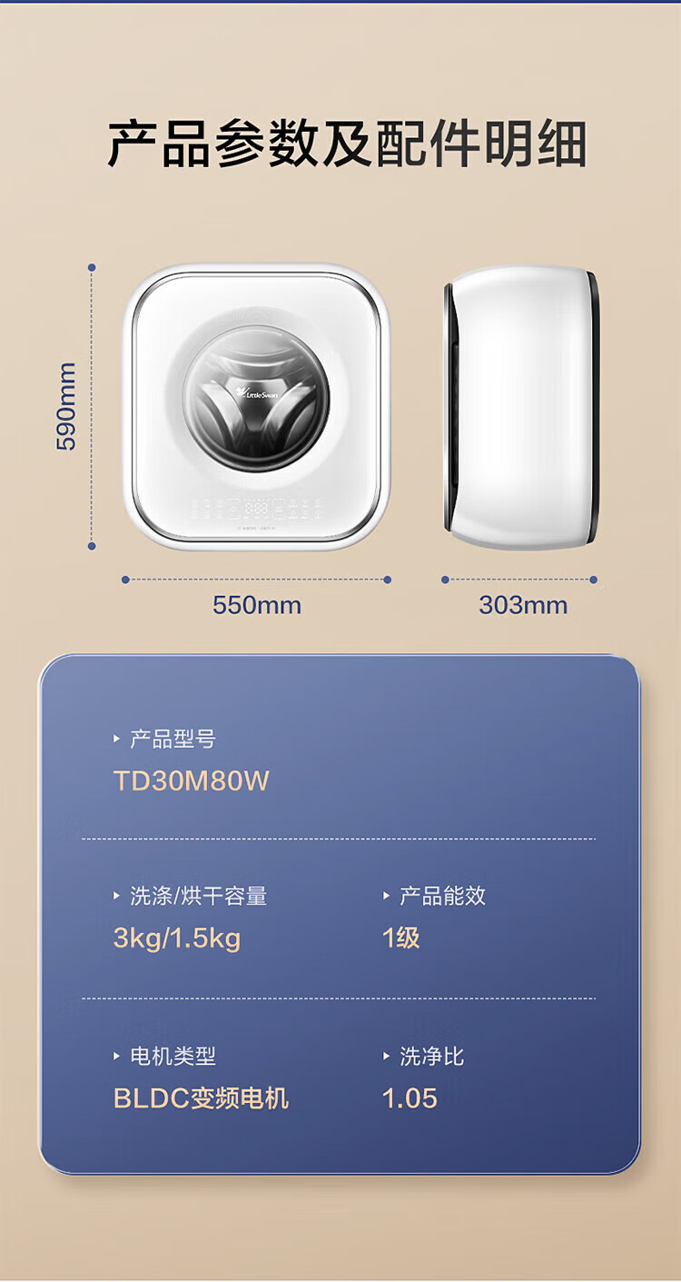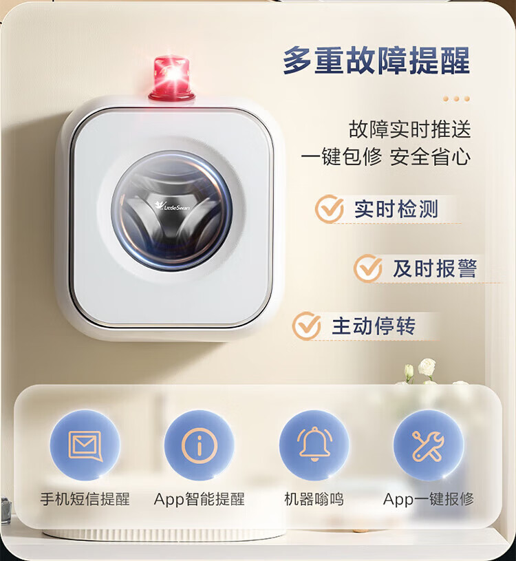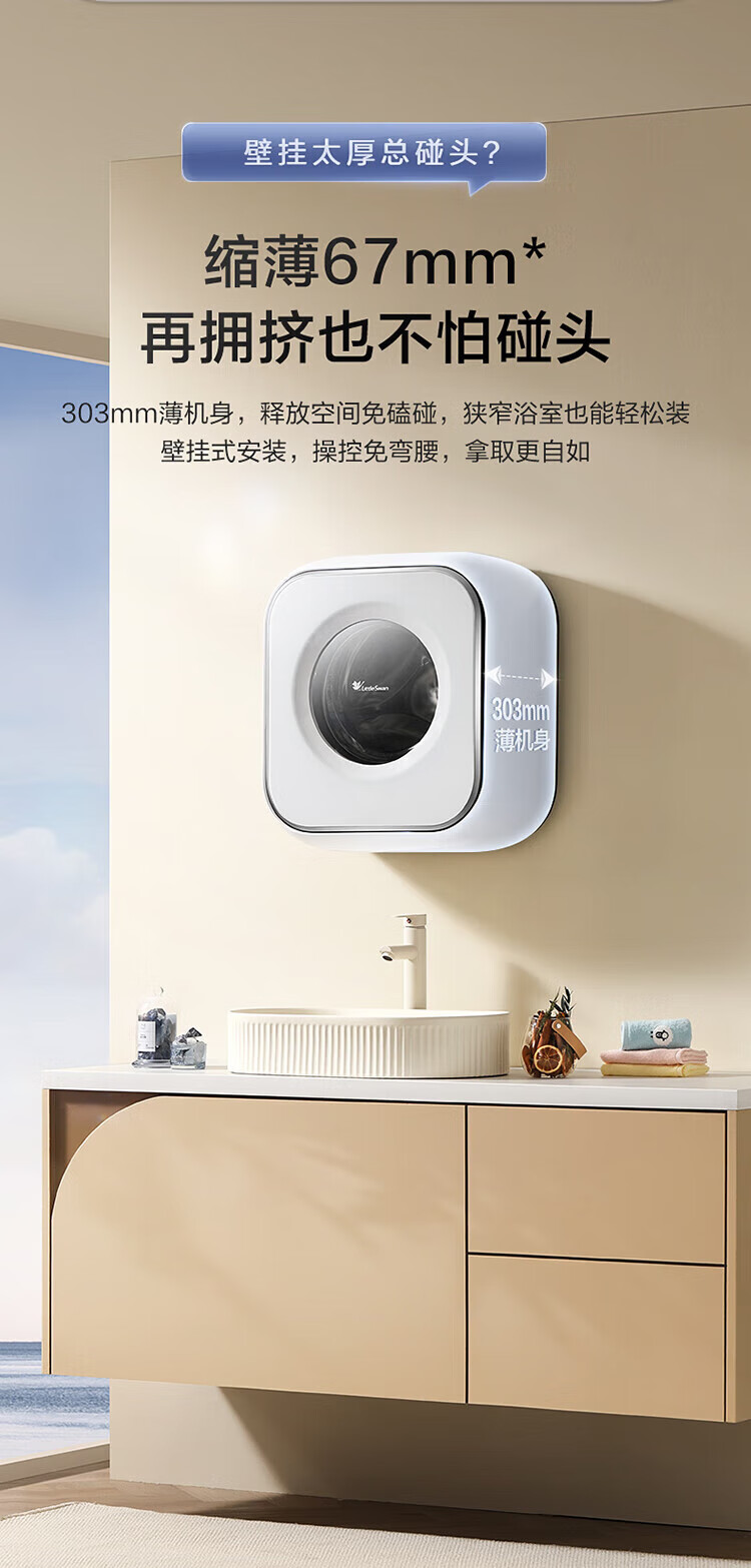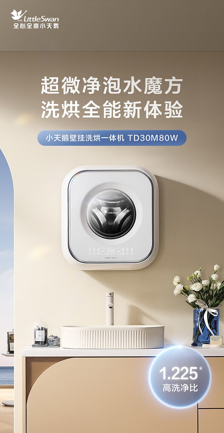 LittleSwan 3kg wall-mounted fully automatic mini underwear washing machine Water Cube nano silver ion sterilization, mite anti-allergy, six-dimensional anti-loosening, first-level energy efficiency, single-wash model TG30M60, steam sterilization