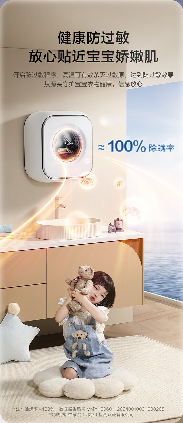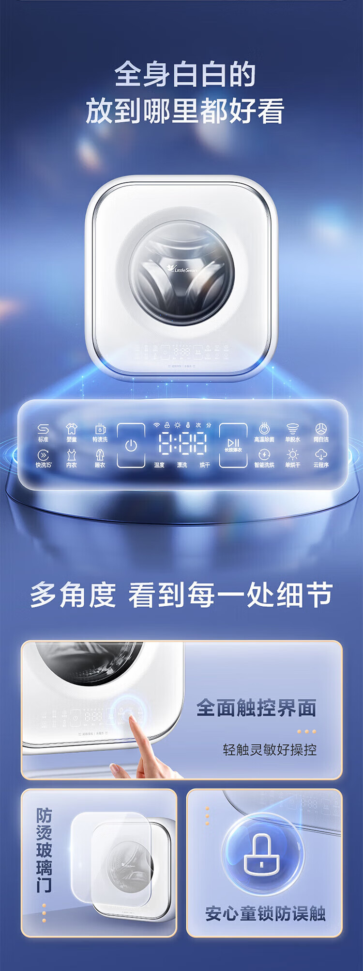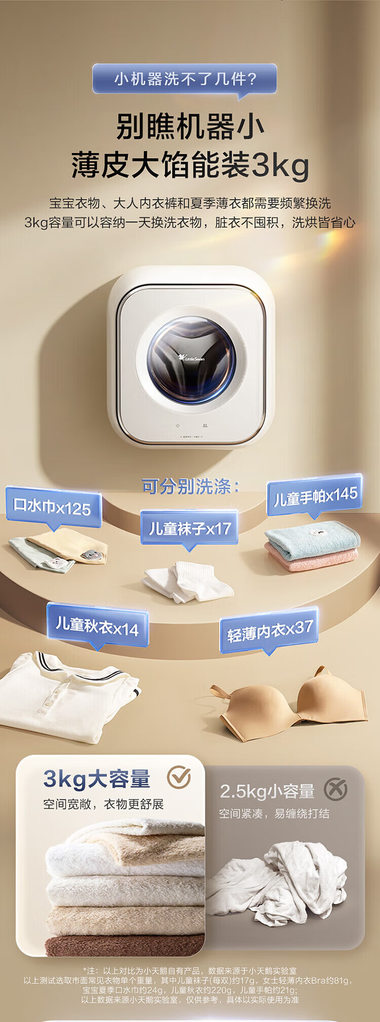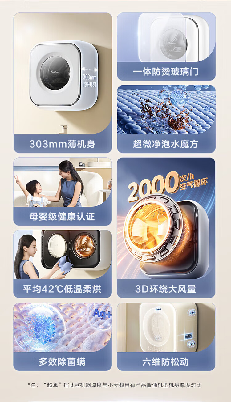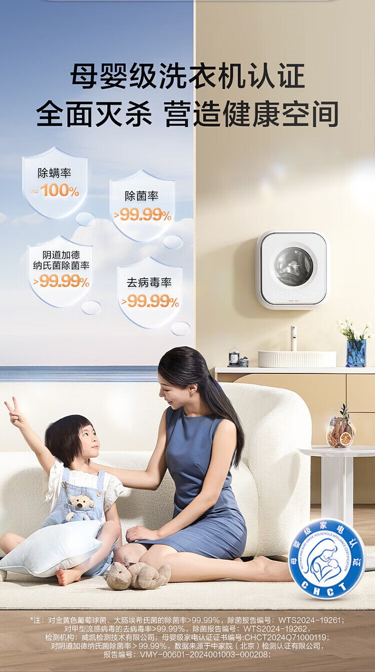 LittleSwan 3kg wall-mounted fully automatic mini underwear washing machine Water Cube nano silver ion sterilization, mite anti-allergy, six-dimensional anti-loosening, first-level energy efficiency, single-wash model TG30M60, steam sterilization