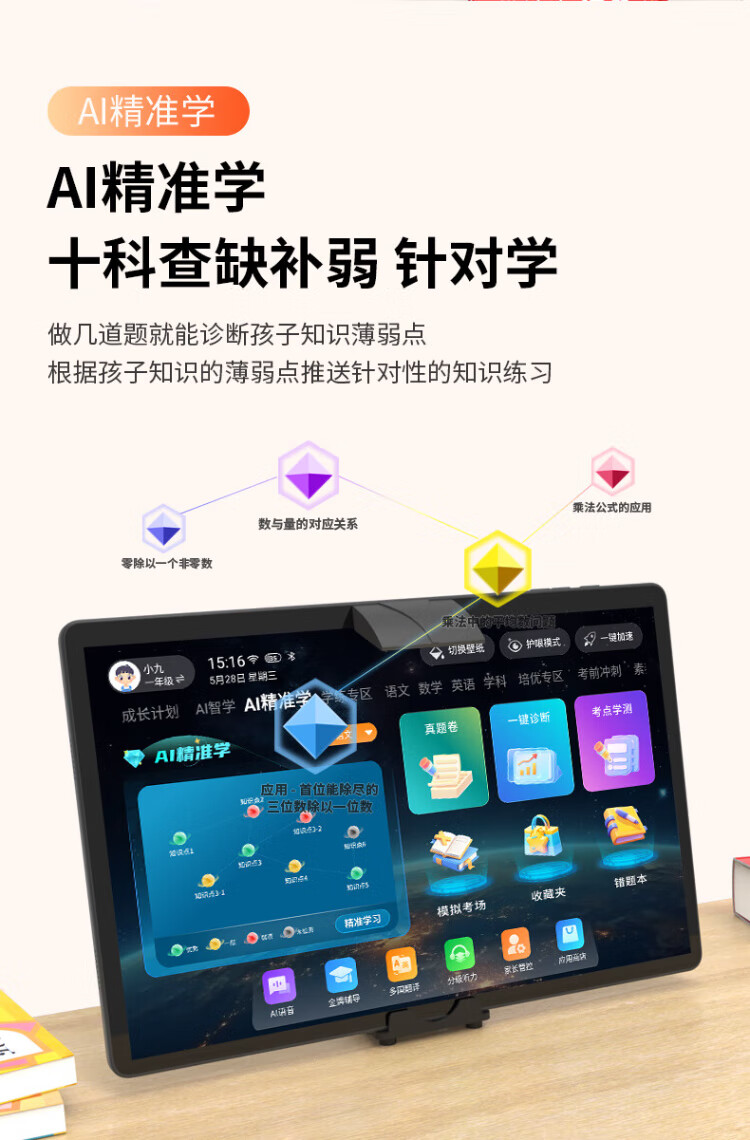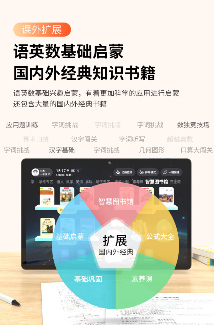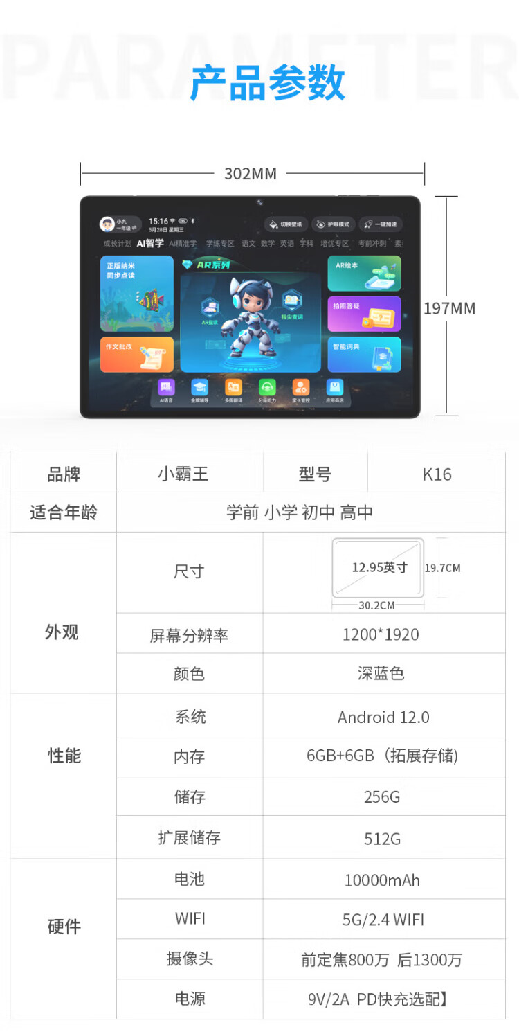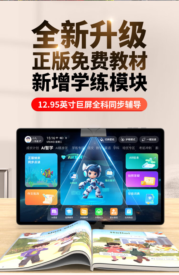 Xiaobawang K16 new learning machine tablet for primary school students, middle and high school courses, all subjects synchronized 512G English learning tablet tutoring early education tutoring reading machine online class learning and practicing 12G operation + 256G eye protection large screen + homework correction + parent control AI intelligent training machine + synchronous accurate learning + real test simulation