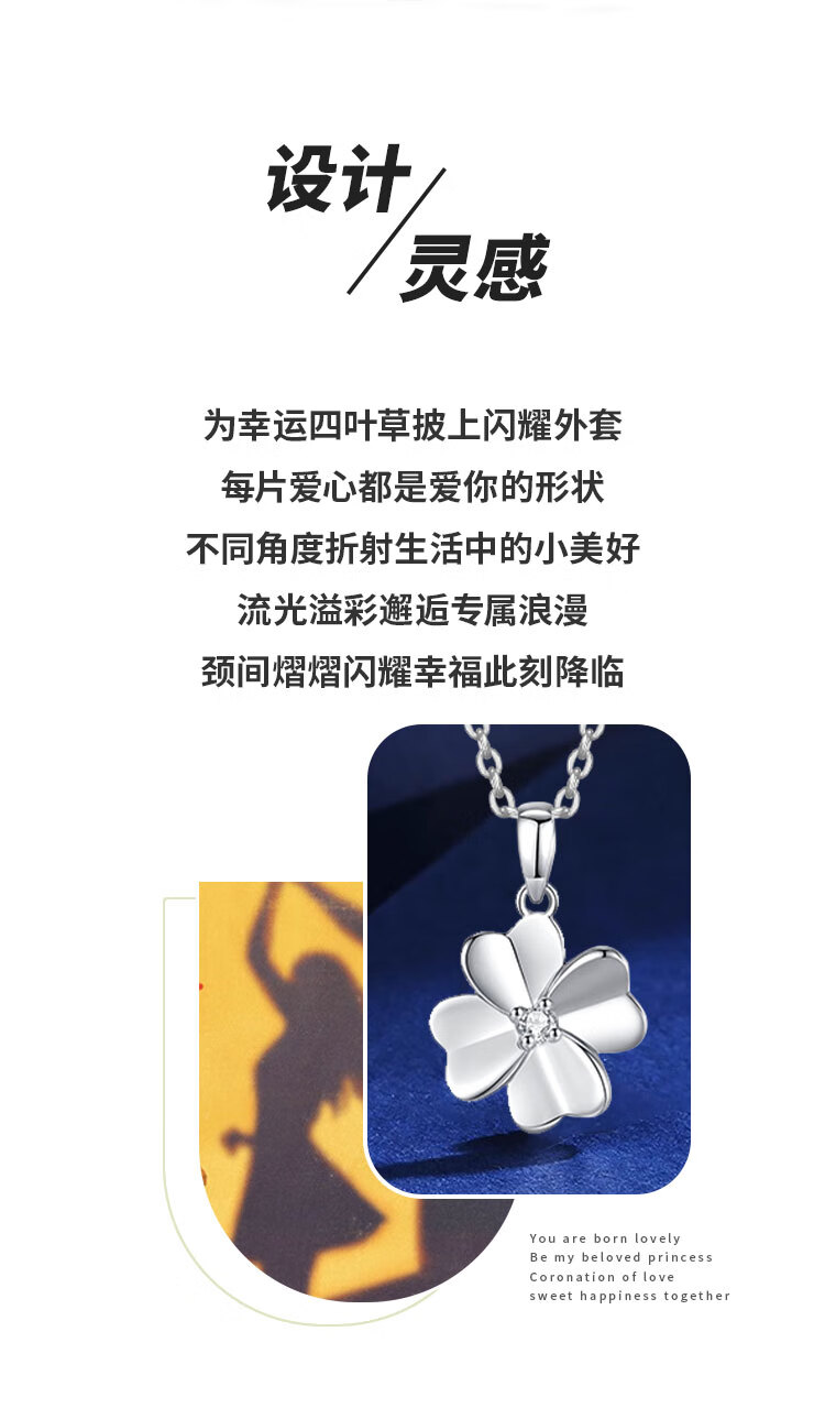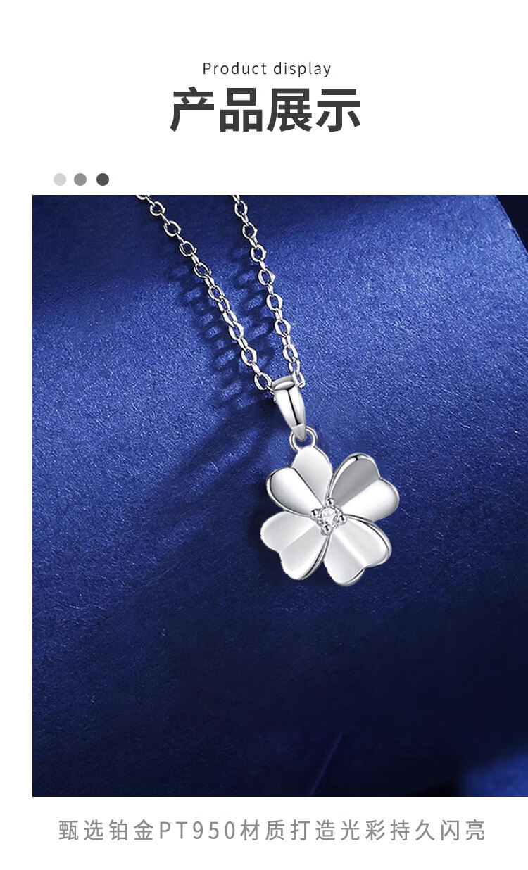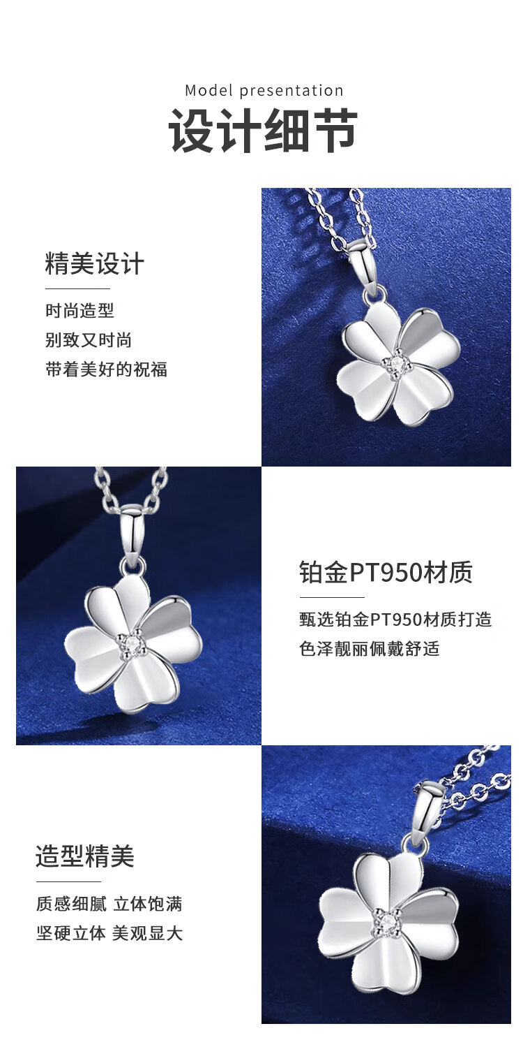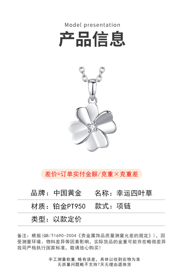 CHINA GOLD pt950 platinum necklace women's platinum lucky four-leaf clover pendant Valentine's Day birthday gift for girlfriend and lover four-leaf clover pendant with S925 chain about 1.58g