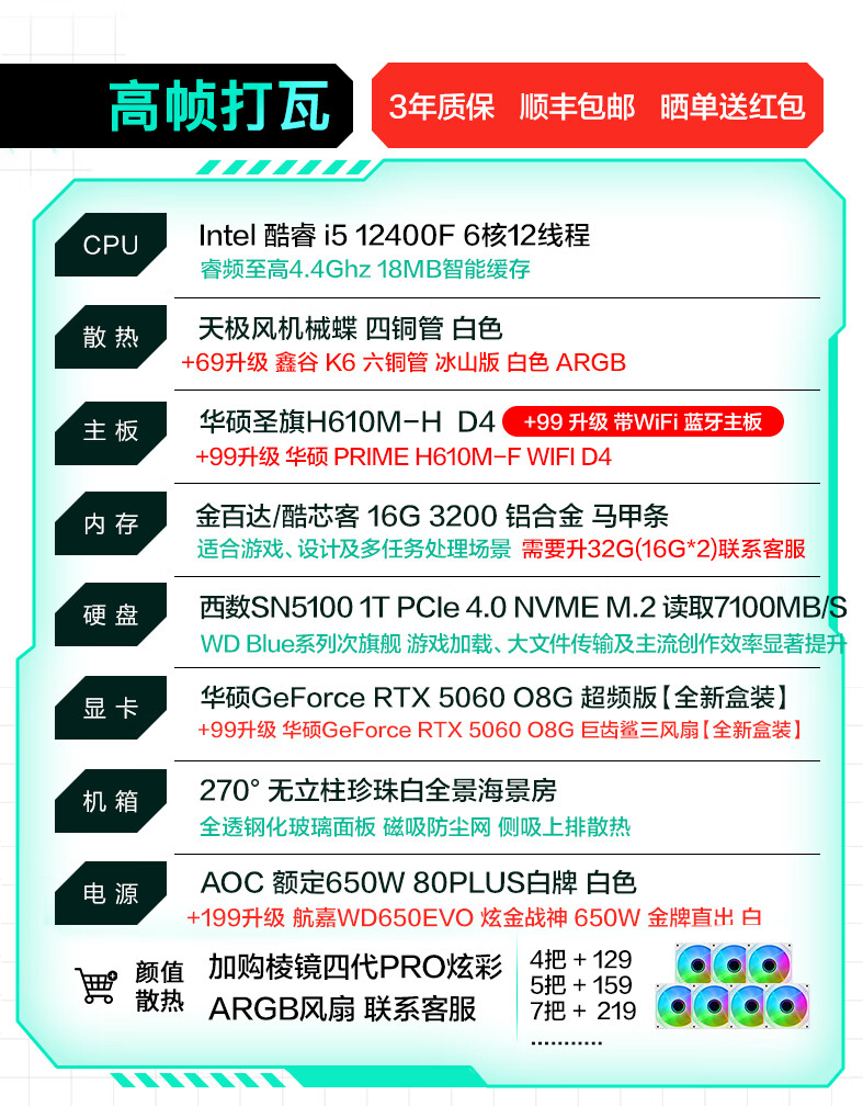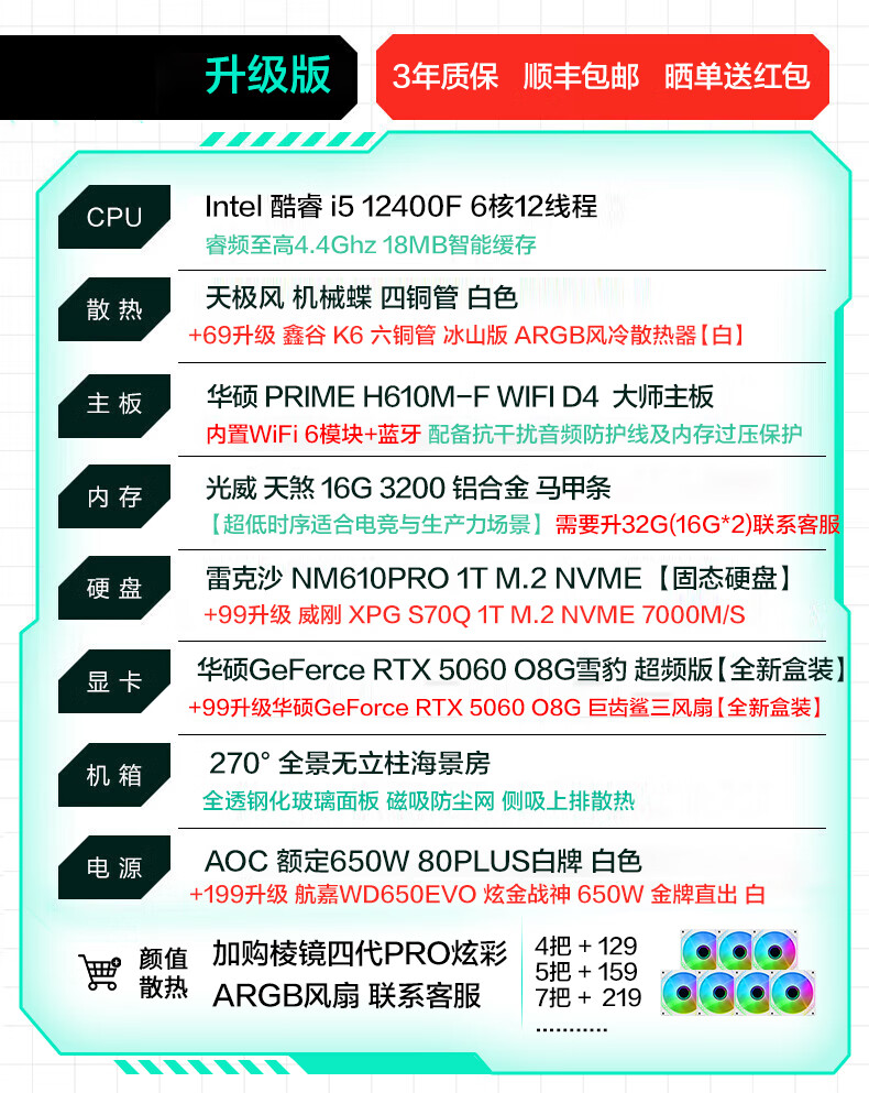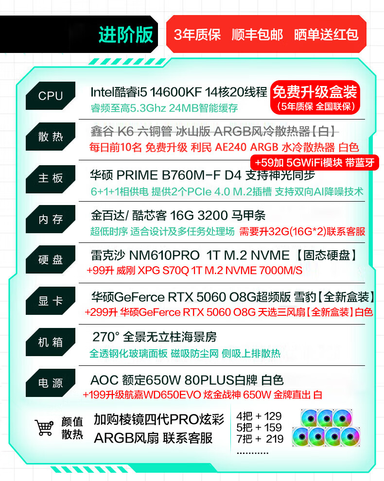 ASUS RTX 5060 host 24 periods interest-free FamilyMart RTX 5070 Ti/ 14600KF assembled computer host e-sports game desktop DIY complete machine sea view room 14600K + ASUS RTX 5070 enhanced version