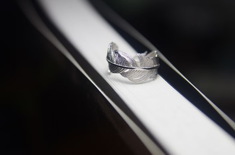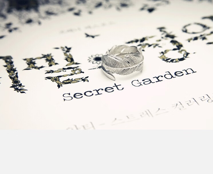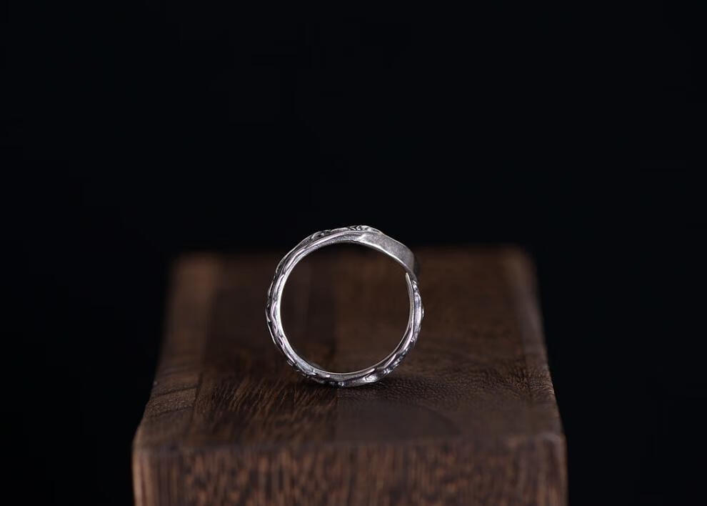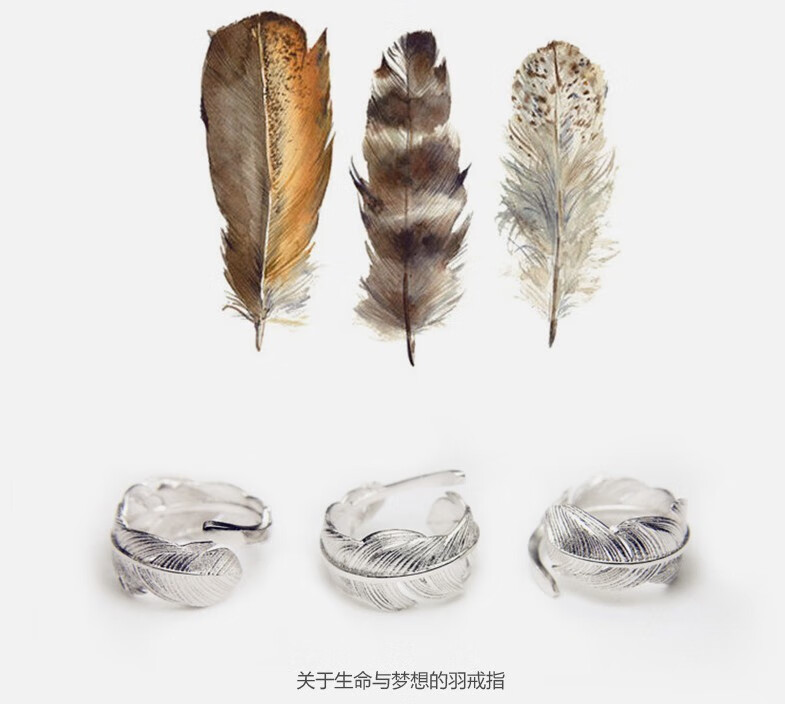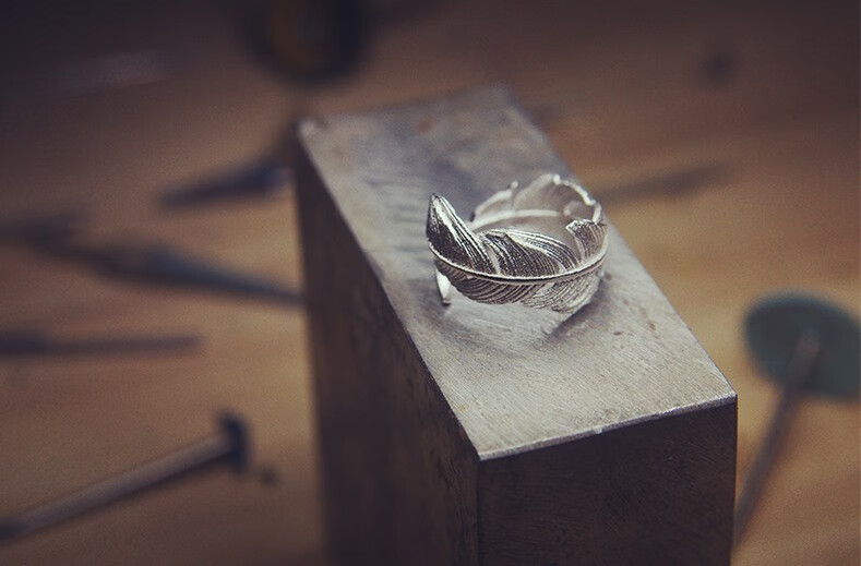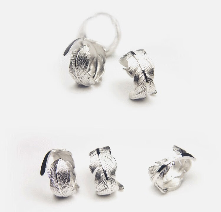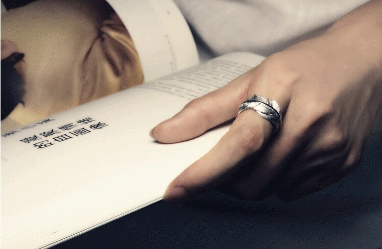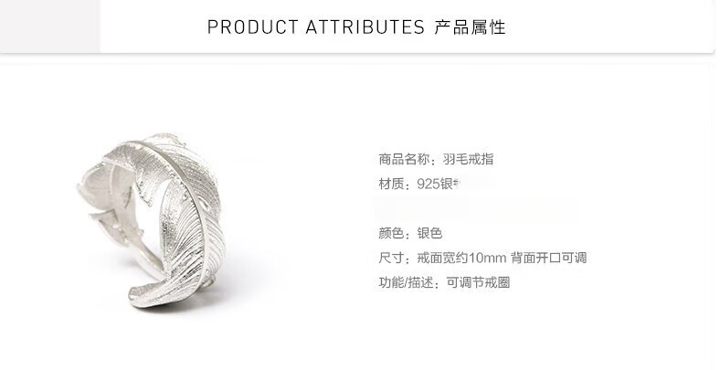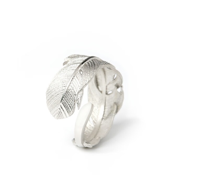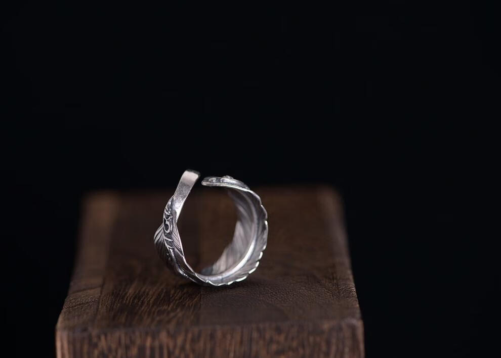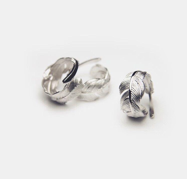 Flash engraved old Phoenix Japanese and Korean style 9999 pure silver handmade couple open ring tail ring middle index finger jewelry trendy and fashionable feather ring (white and silver) same style as Lao Fengxiang
