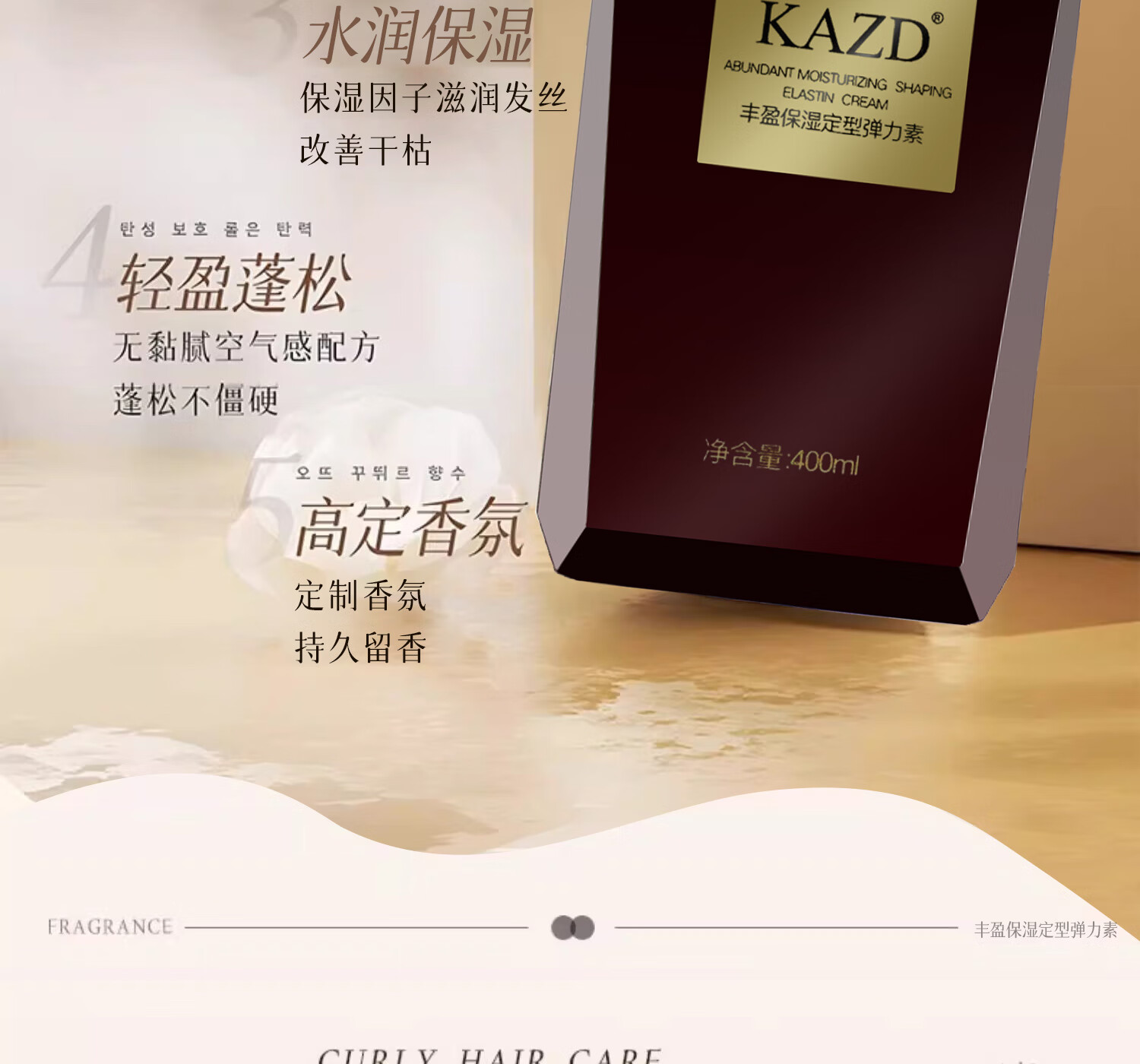KAZD official direct ELL official store KAZD elastin for women's curly hair, moisturizing, long-lasting styling, anti-frizz, plump, moisturizing and styling elastin 400ml