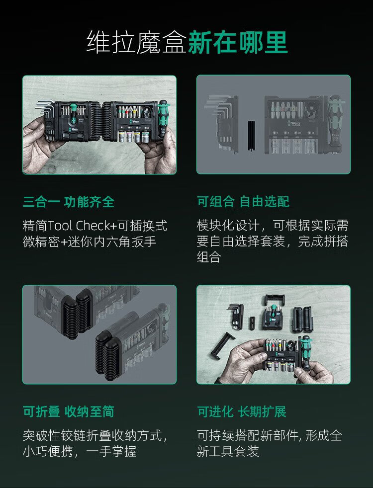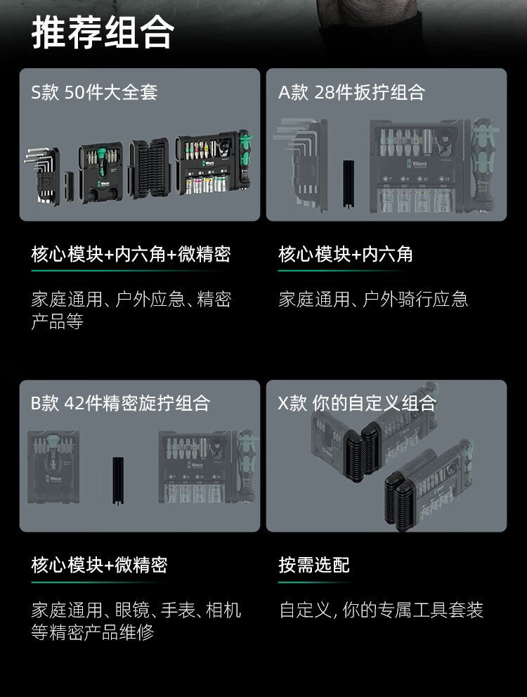 WERA imported mini ratchet wrench set, hexagon combination precision screwdriver, German universal tool set, magic box, 50-piece magic box set (05049020001)