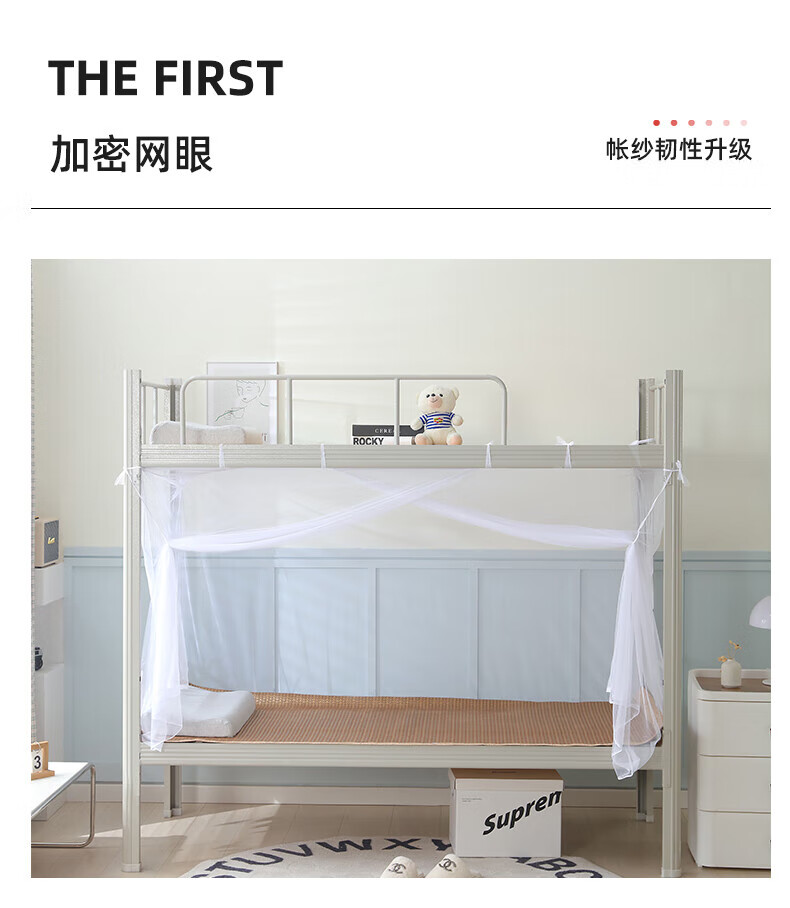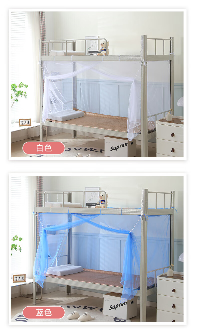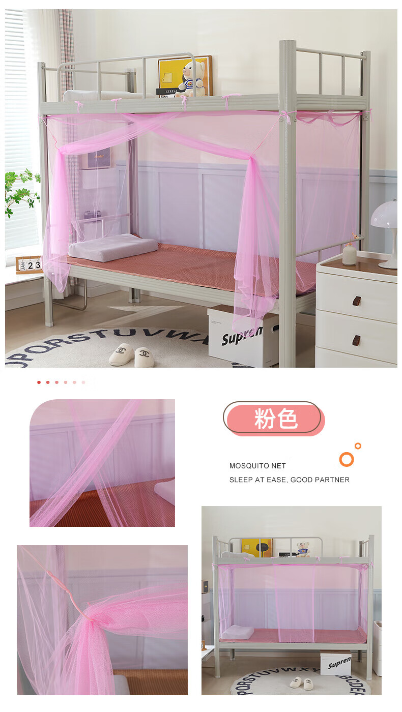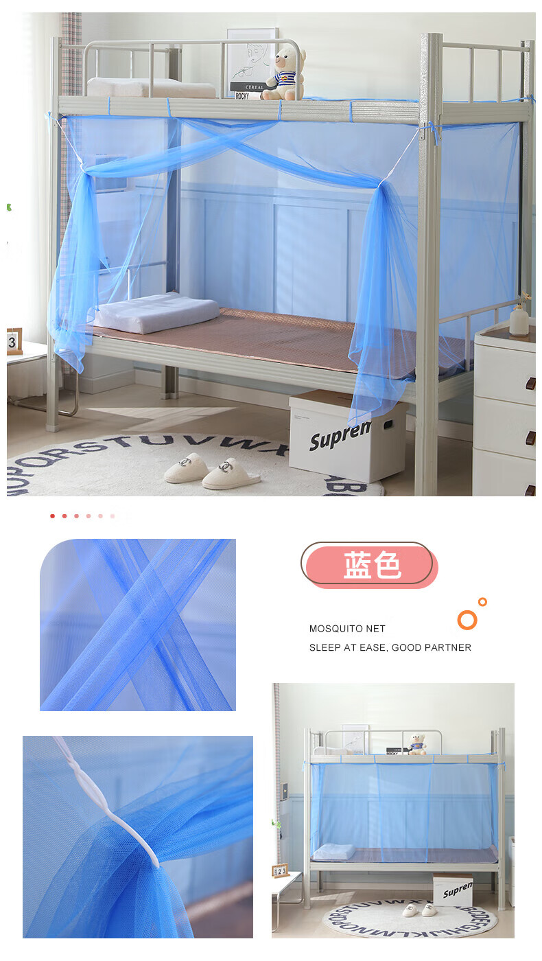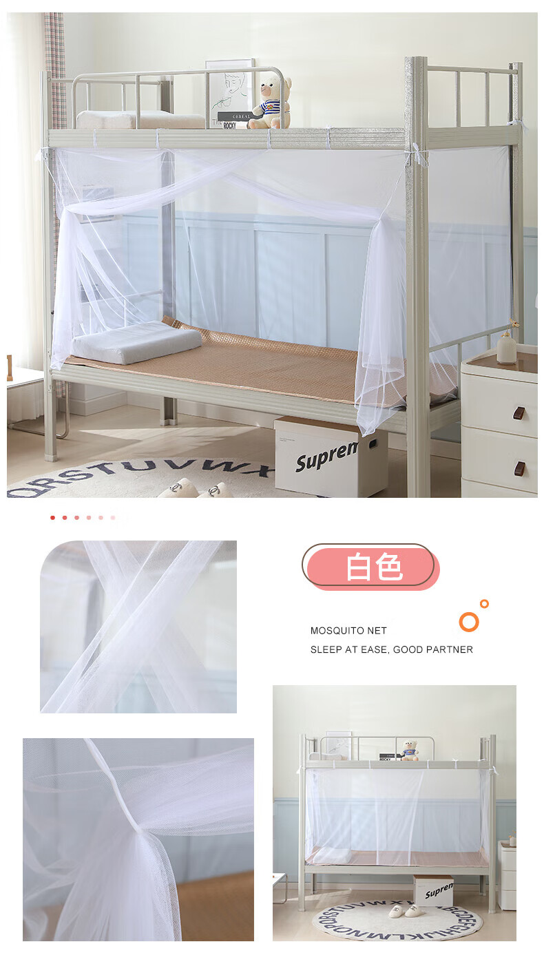 Student Dormitory Mosquito Net Single Bed 0.9x1.9 Upper and Lower Bunk Anti-fall Anti-mosquito Free Installation Household Old-fashioned Mosquito Net Holder Old-fashioned Mosquito Net-White 90cm*195cm*160cm (Specially dense with tent hooks)