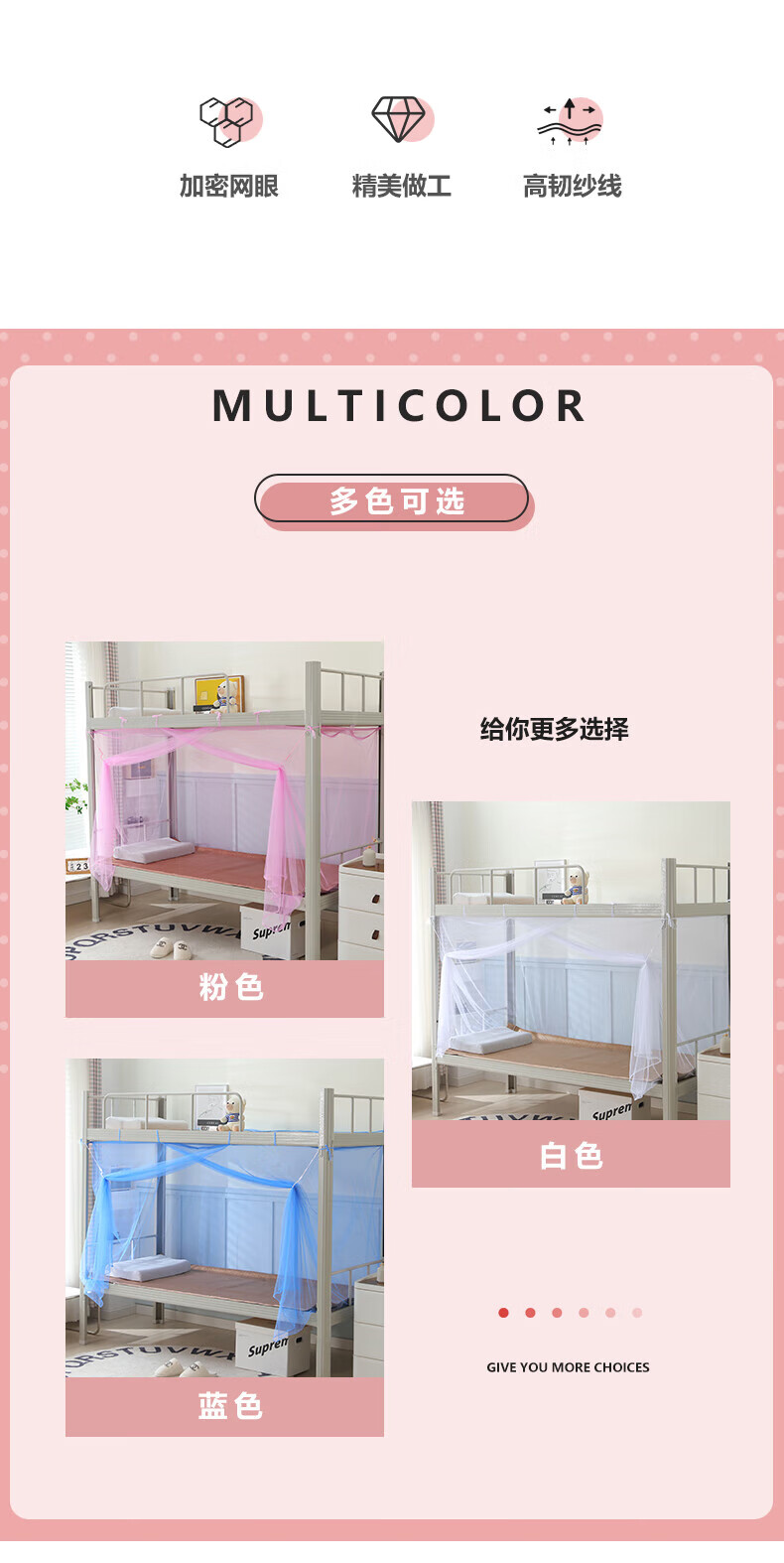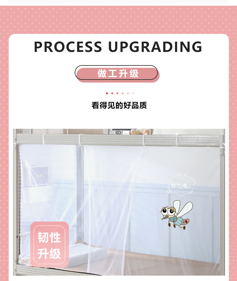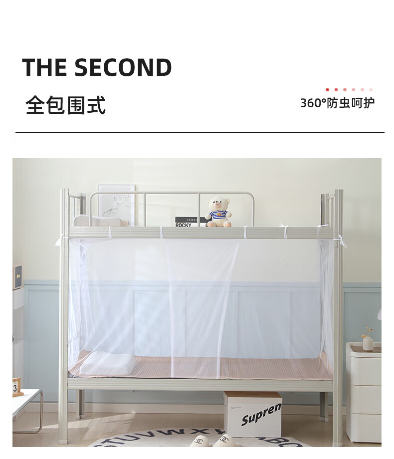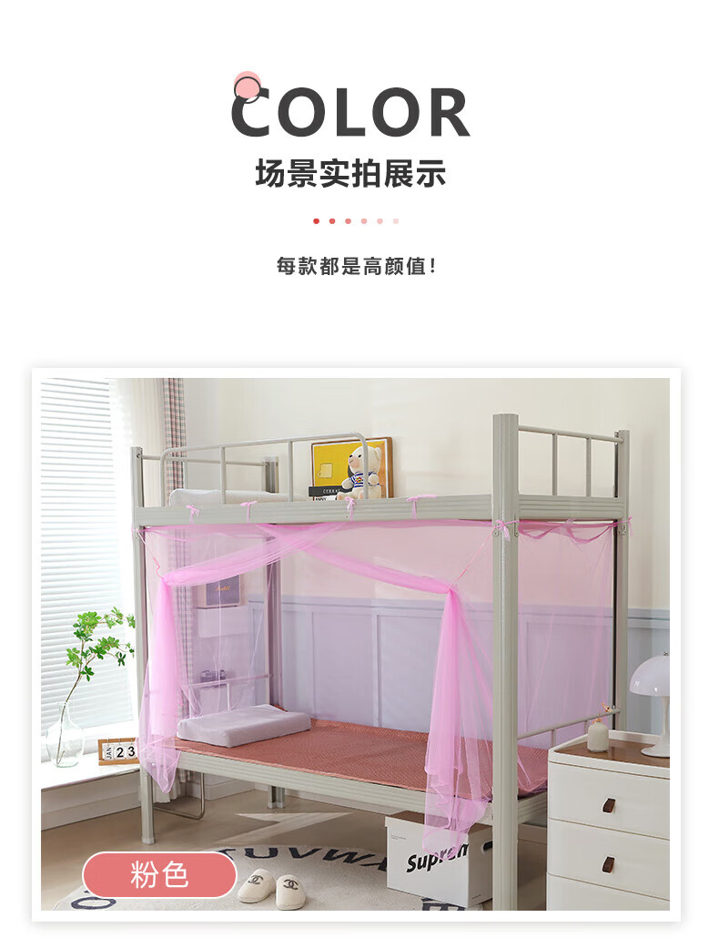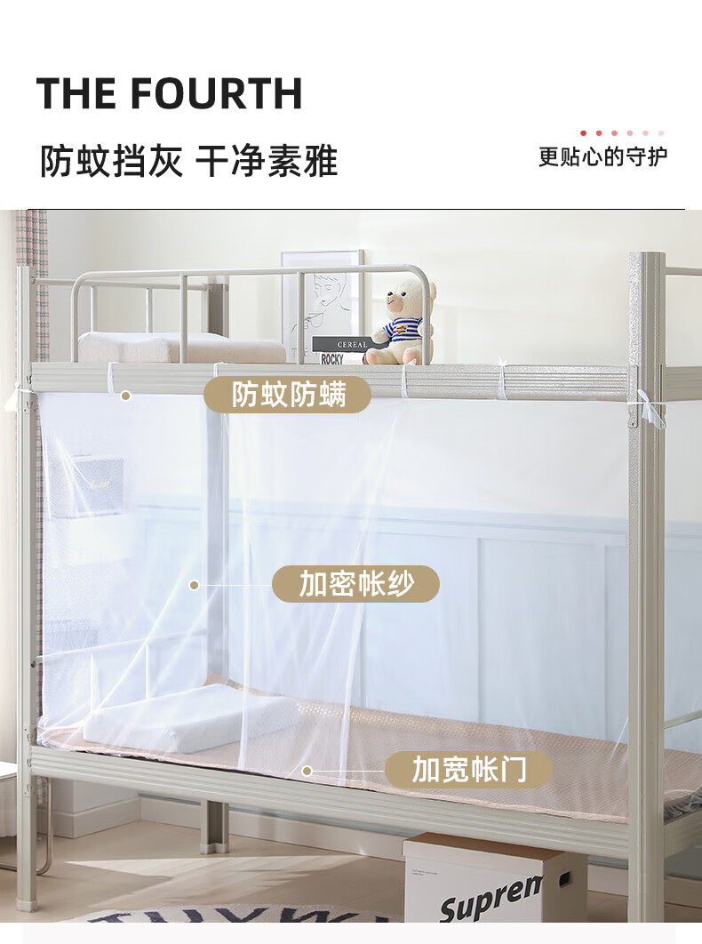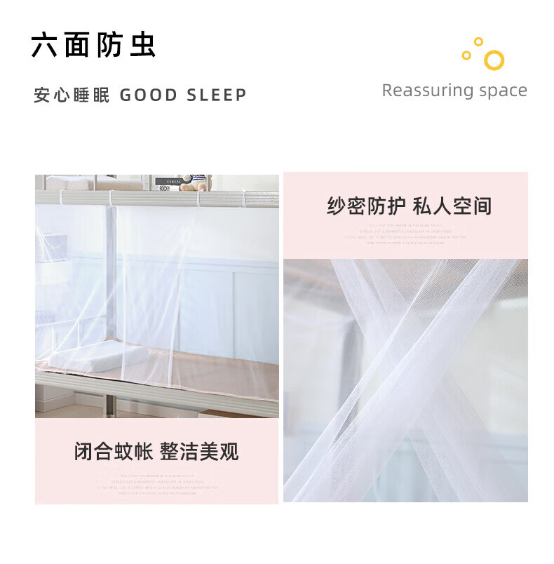 Student Dormitory Mosquito Net Single Bed 0.9x1.9 Upper and Lower Bunk Anti-fall Anti-mosquito Free Installation Household Old-fashioned Mosquito Net Holder Old-fashioned Mosquito Net-White 90cm*195cm*160cm (Specially dense with tent hooks)
