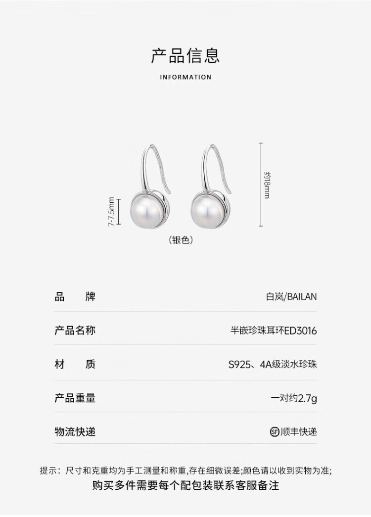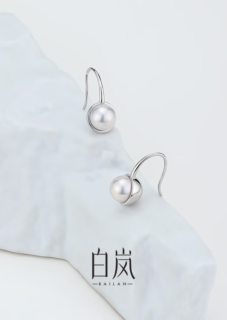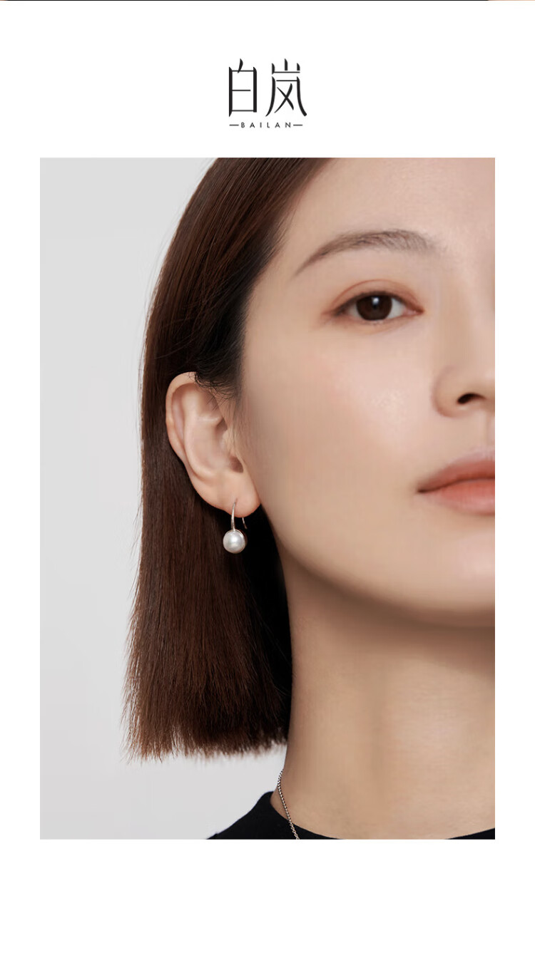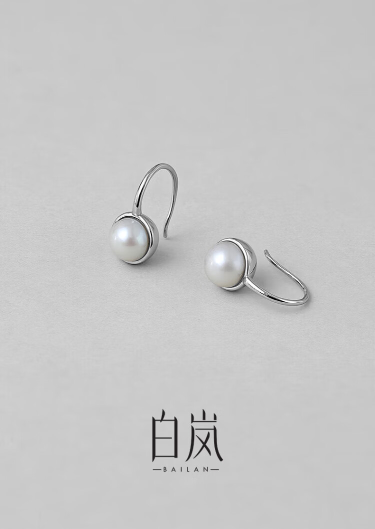 Bai Lan half-embedded pearl earrings for women, light luxury fashionable earrings, niche design earrings, birthday gift for wife, half-embedded pearl earrings