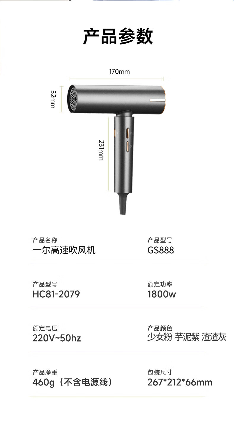 Hair dryer hair salon high power 1800w brushless hair dryer barber shop teacher Tony's special high wind high speed hair dryer hair dryer peach pink (high speed hair dryer + 110,000 super speed)