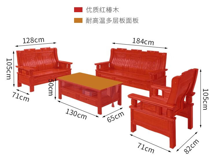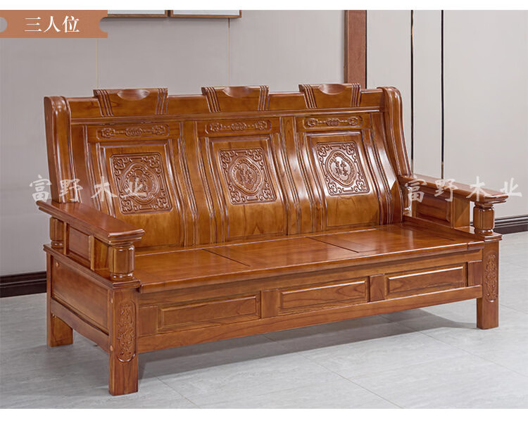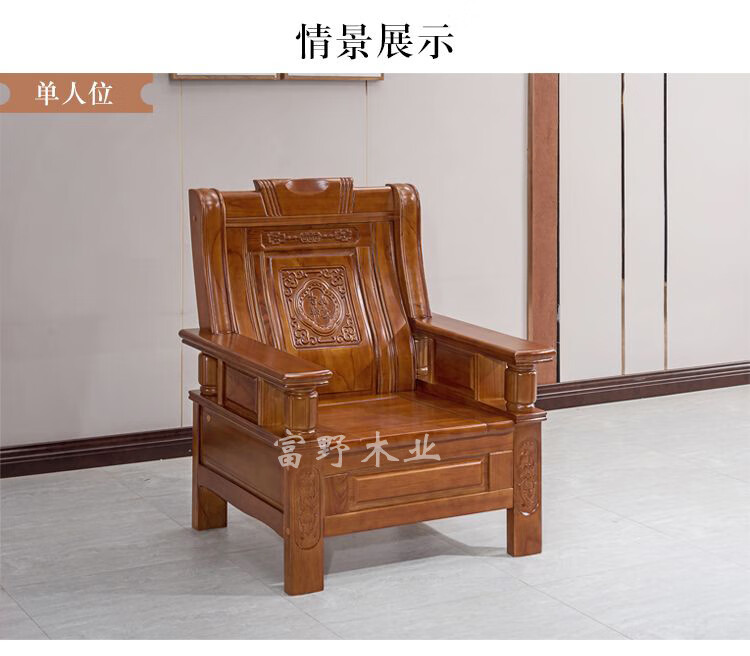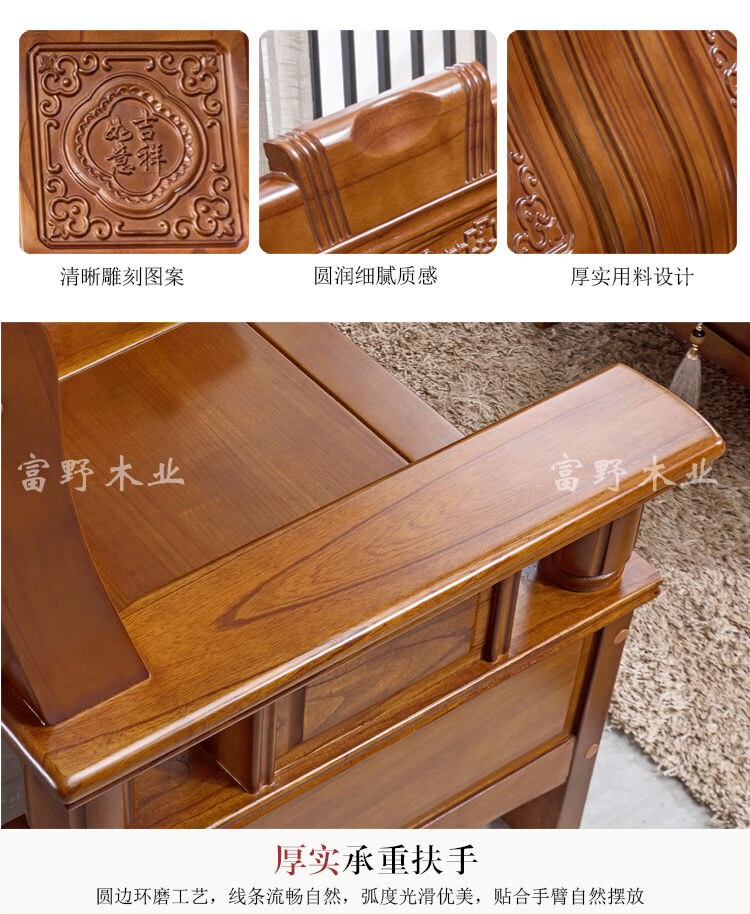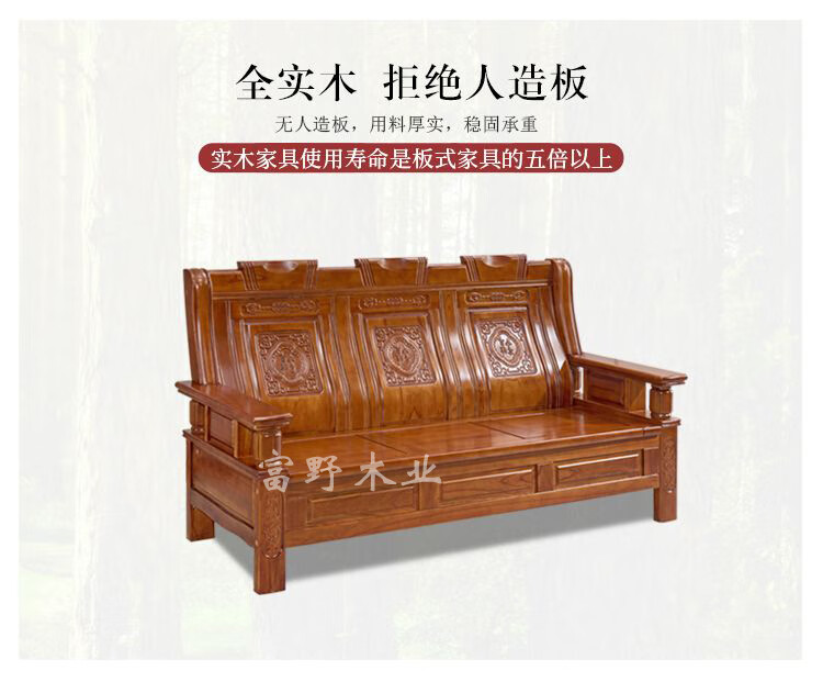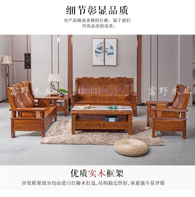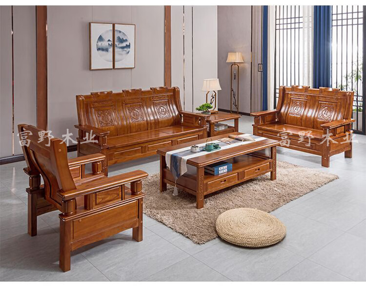 Tomino solid wood sofa new Chinese style furniture combination set modern simple wooden sofa economical rural living room furniture 1+2+3+long coffee table+square table
