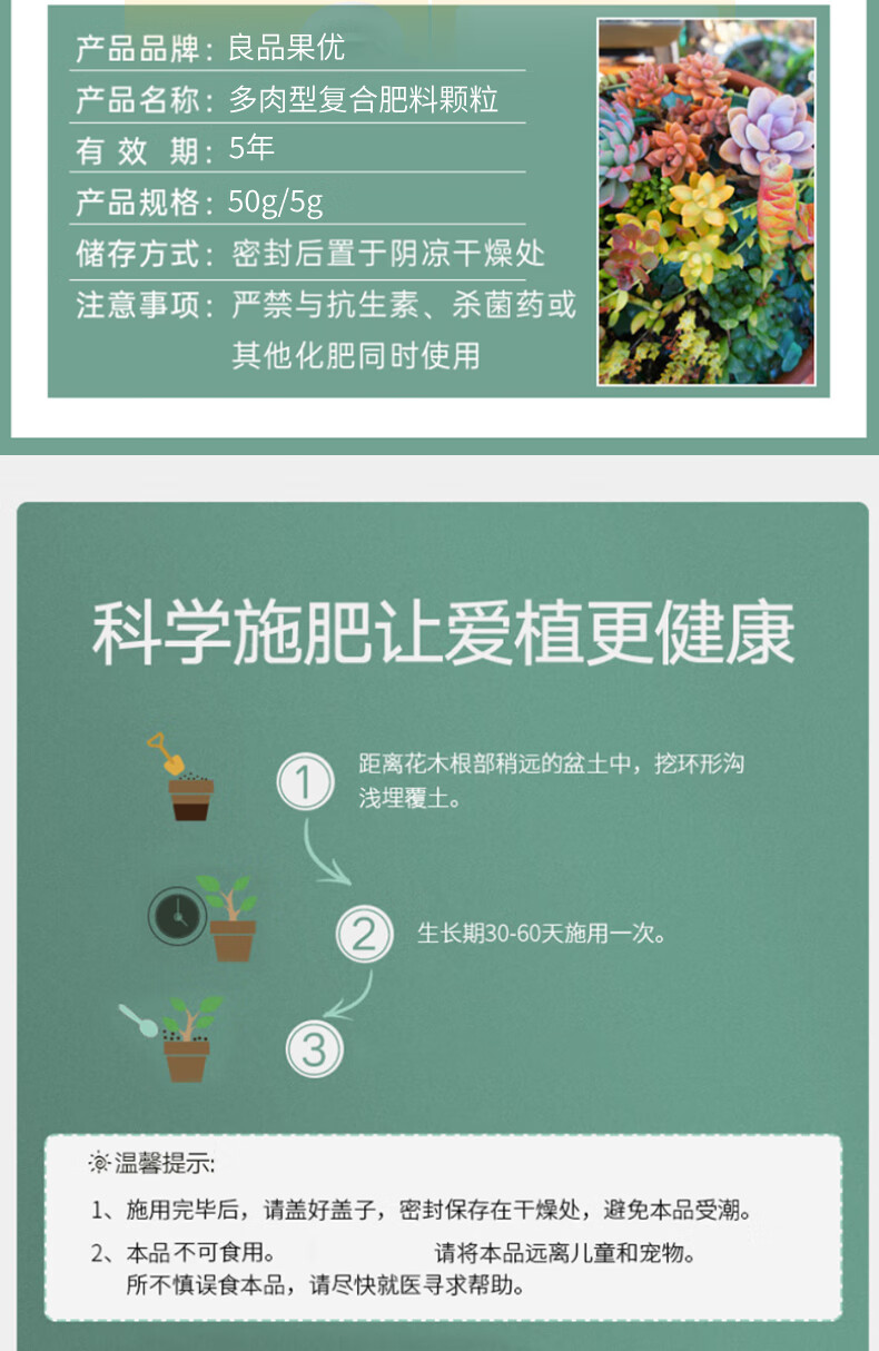 Succulent fertilizer special fertilizer nutrition granules for household flower potting nitrogen, phosphorus and potassium compound long-acting controlled-release fertilizer slow-release fertilizer 1 pack individually packaged
