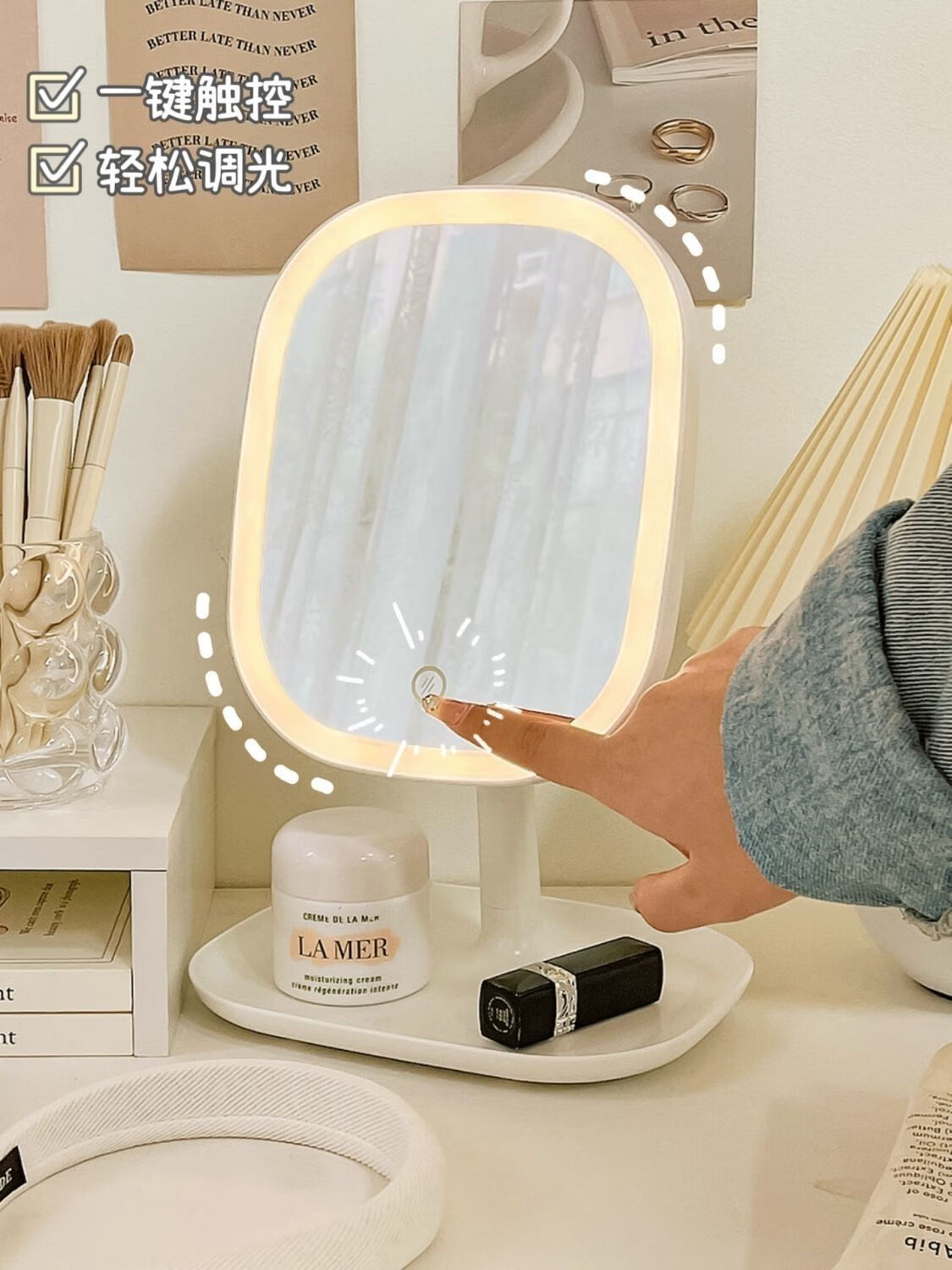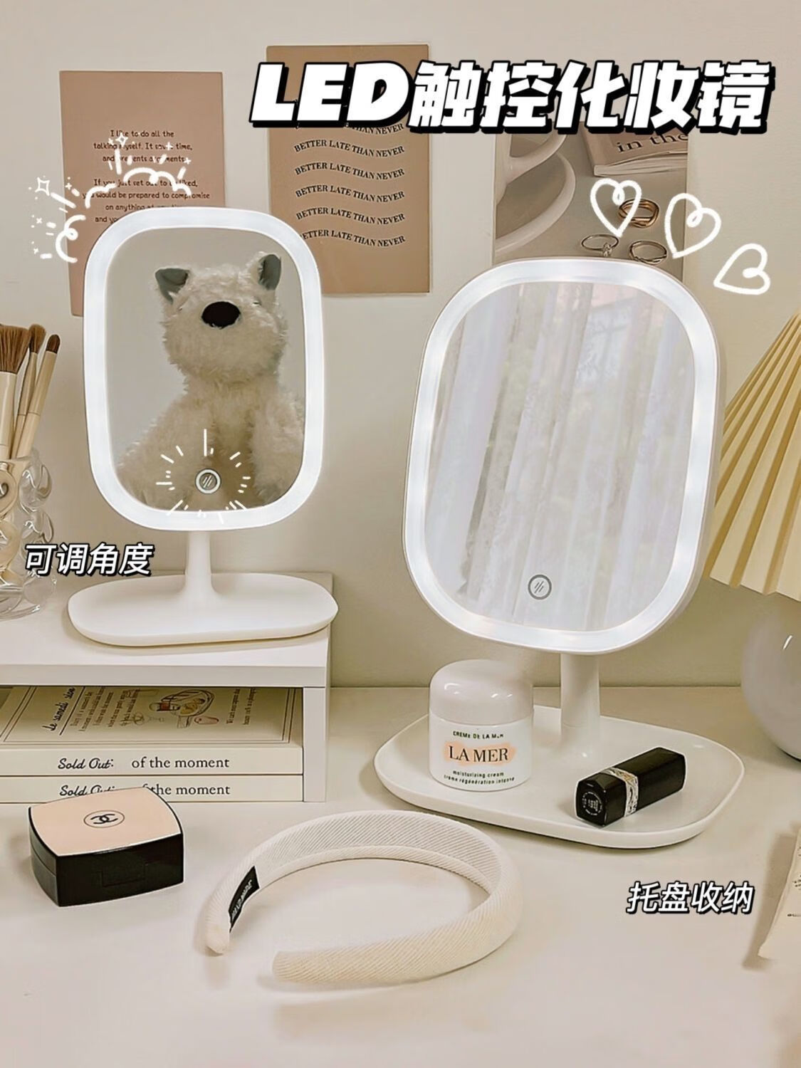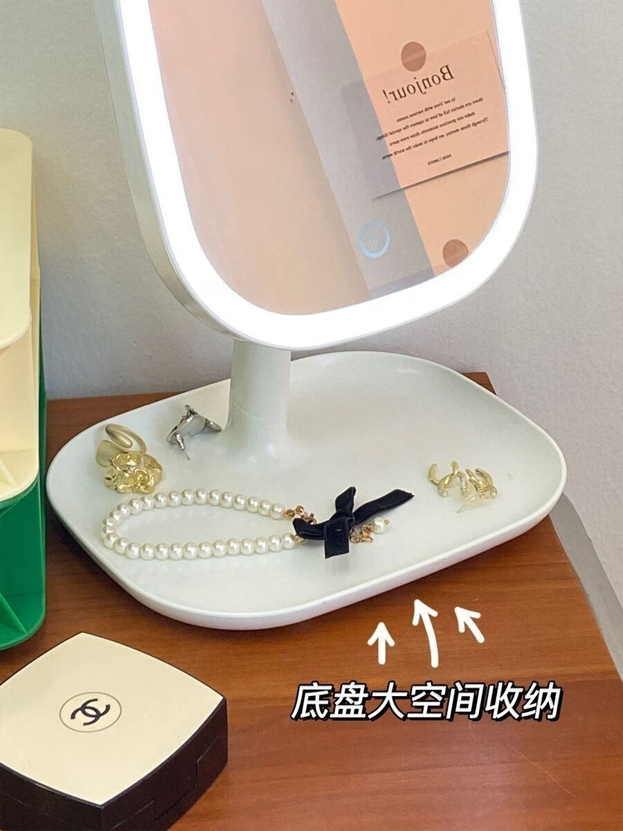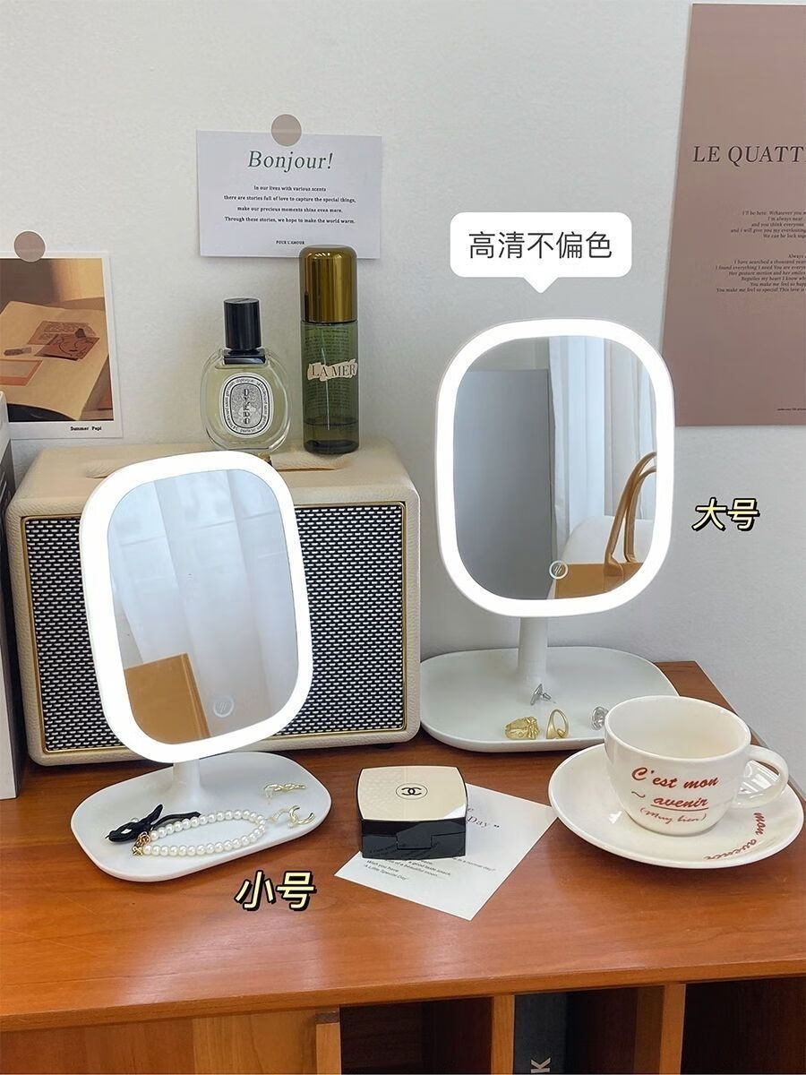 Light-filling mirror LED makeup mirror for dormitory student mirror desktop mirror beauty mirror square light luxury makeup mirror LED three-color light adjustable long battery life CK11 innocent white CK12 4K mirror without light model
