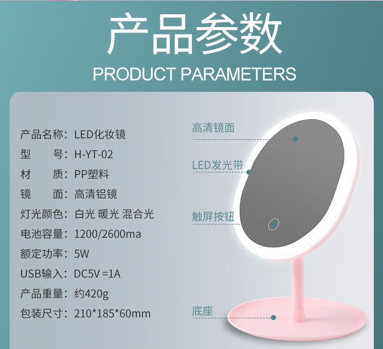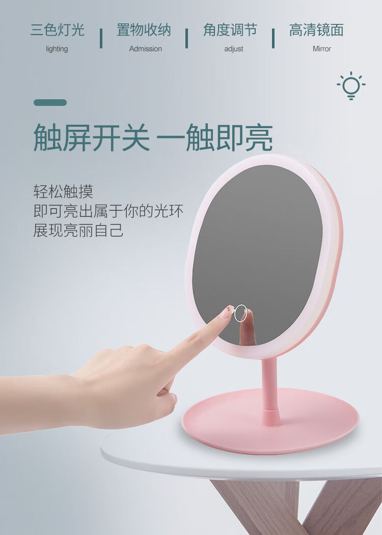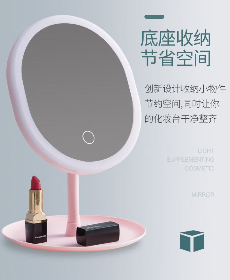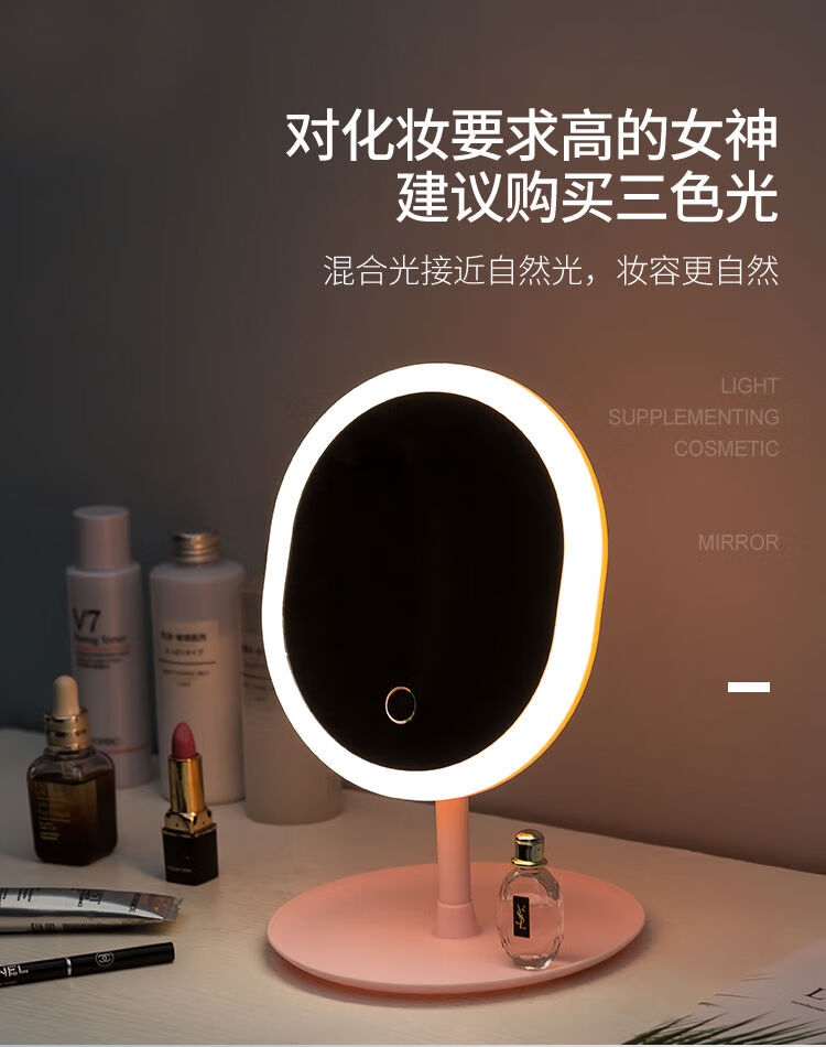 LED beauty mirror makeup mirror desktop makeup fill light girl dormitory internet celebrity portable ins princess mirror LED three-color light adjustable long battery life CK22 pearl white CK23 4K mirror without light model
