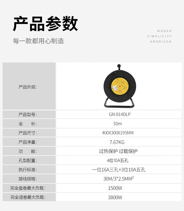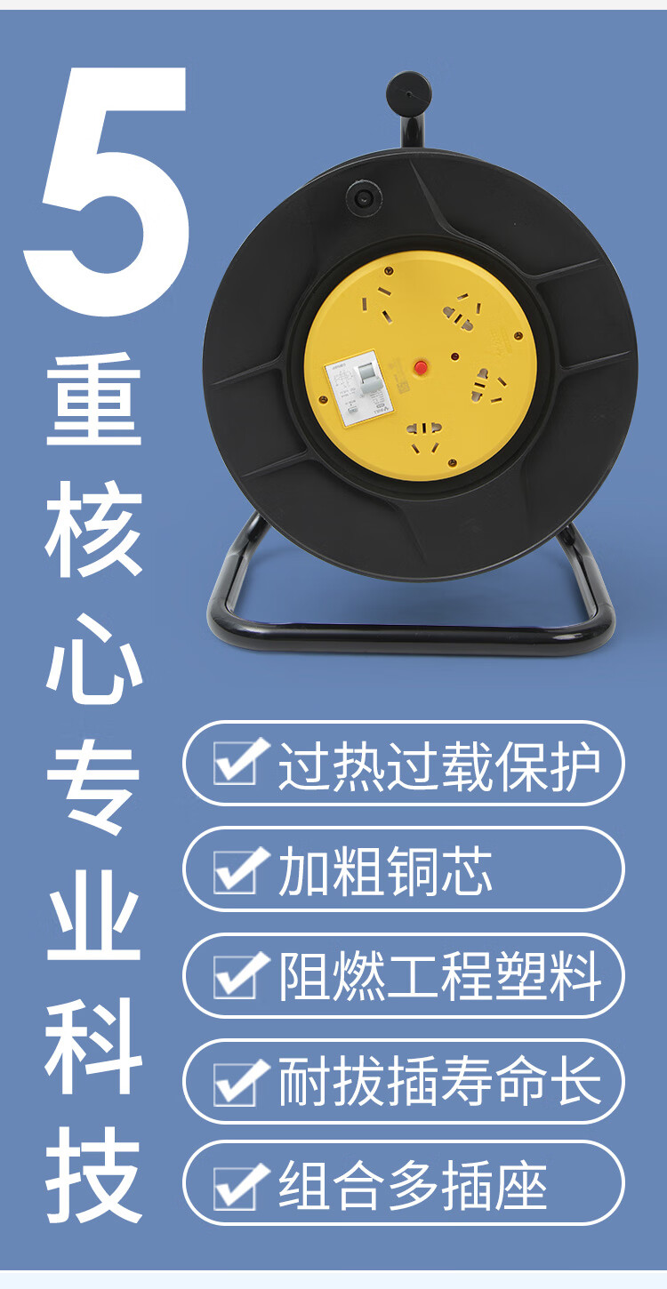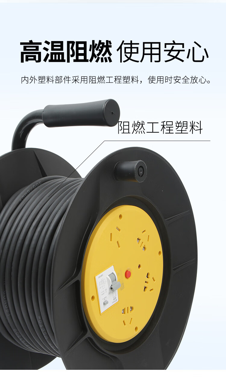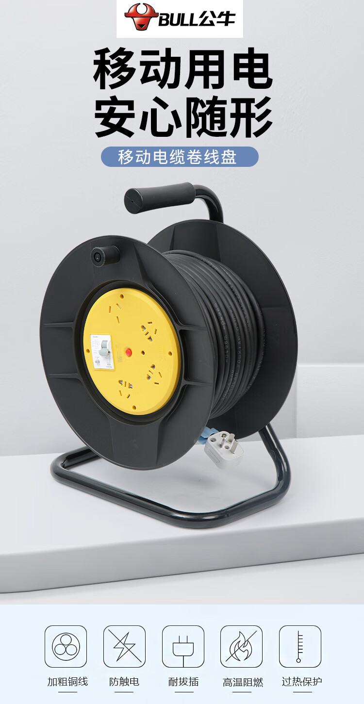 Bull reel mobile cable spool 814DLP winding towing line empty reel plug-in extension cord 20m 30 meters 50m 3 core 2.5 square meters 30 meters