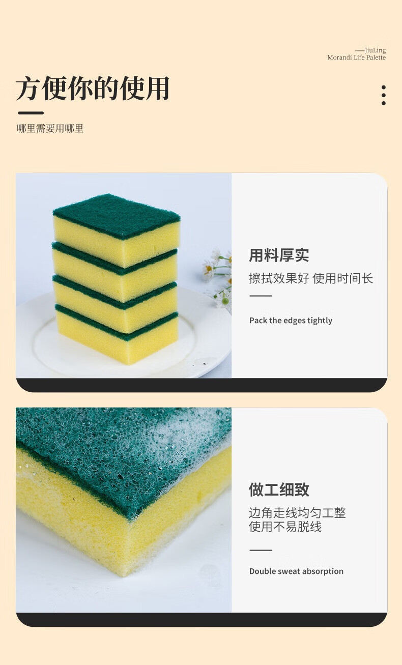 Dishwashing sponge, pot sponge block, kitchen dishwashing scouring pad, 3 sponge wipes
