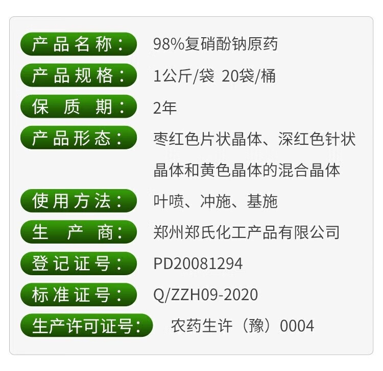 Zheng's Chemical 98% Compound Sodium Nitrophenolate Powder Plant Growth Regulator Rooting and Strengthening Seedlings Agricultural Synergistic Growth-Promoting Regulator 98% Compound Sodium Nitrophenolate 1KG