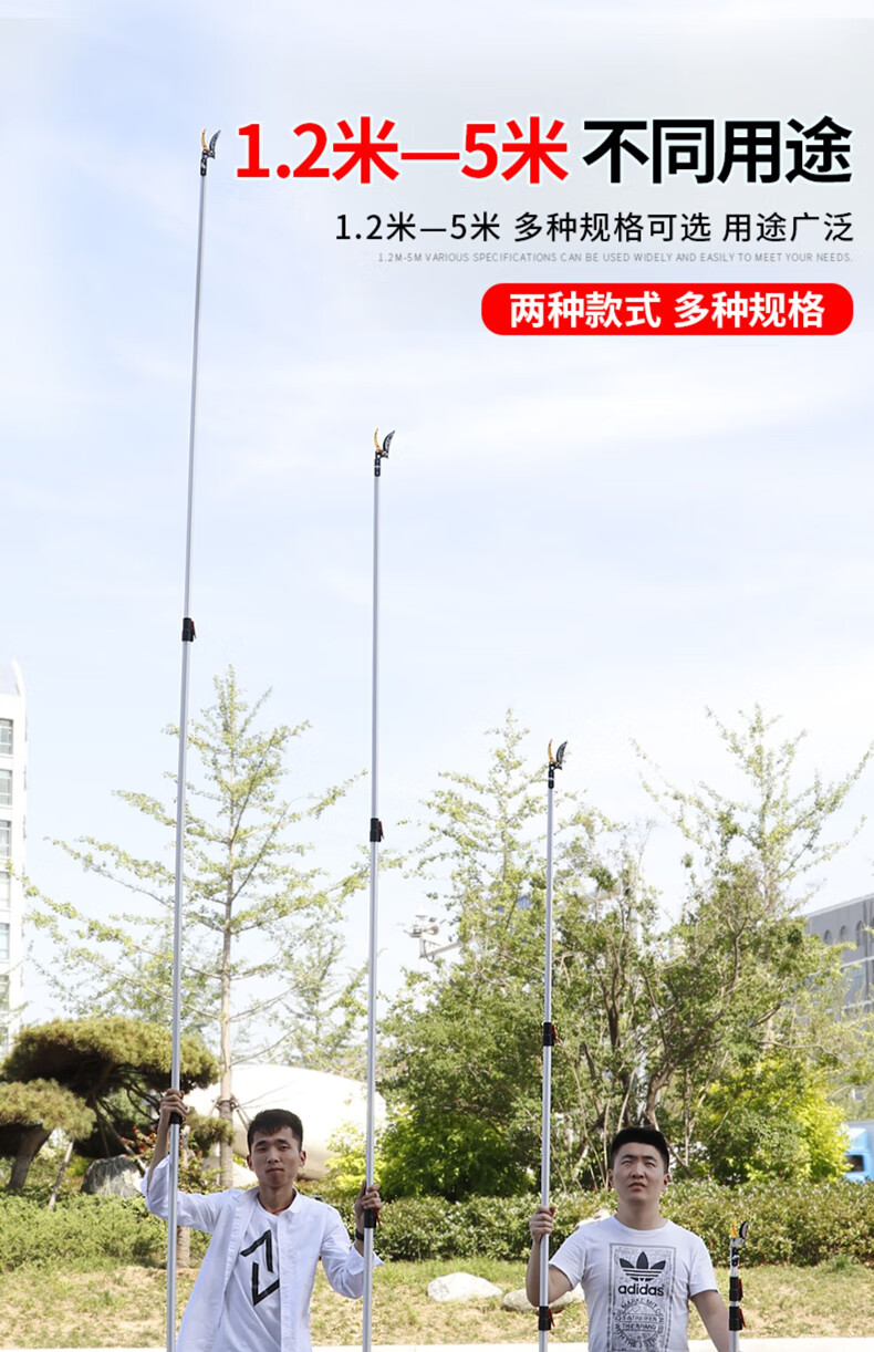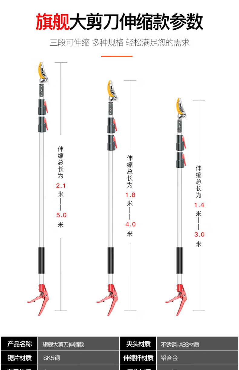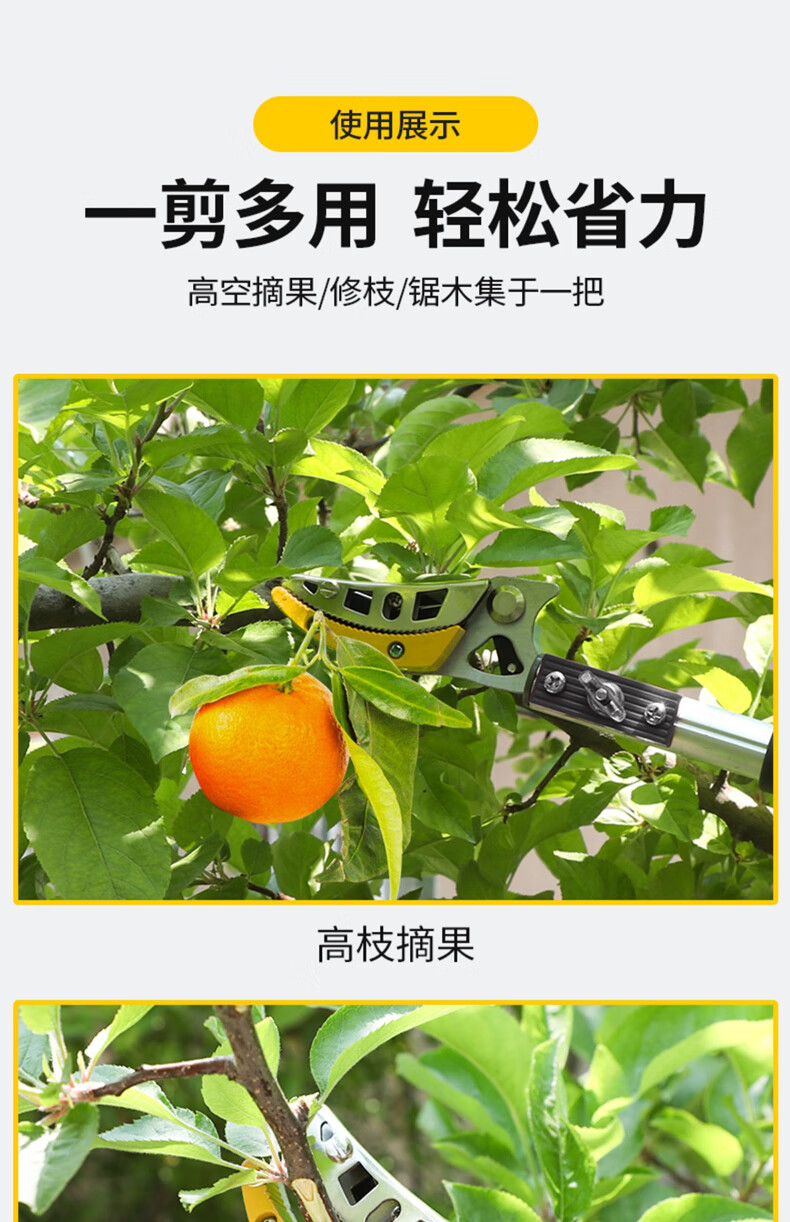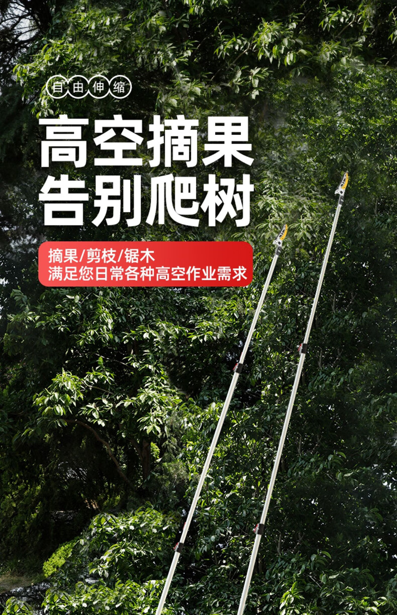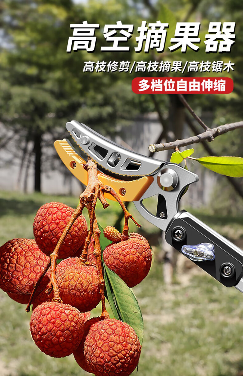 Fruit picking artifact telescopic pole for picking lychees, peppers, bayberries, peaches, apricots and plums, high-altitude branch shears, special scissors, 3-section telescopic 2.1-5 meters + saw blade, fruit branch shears
