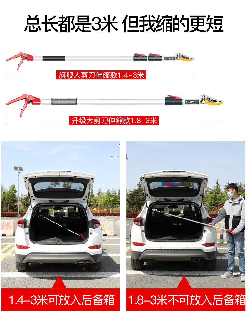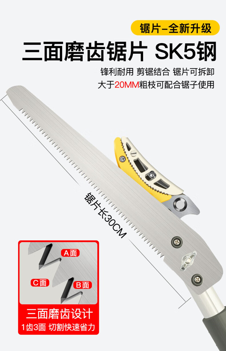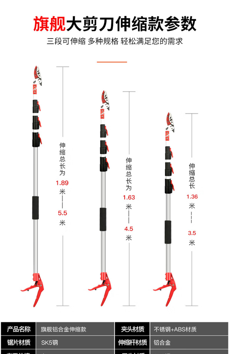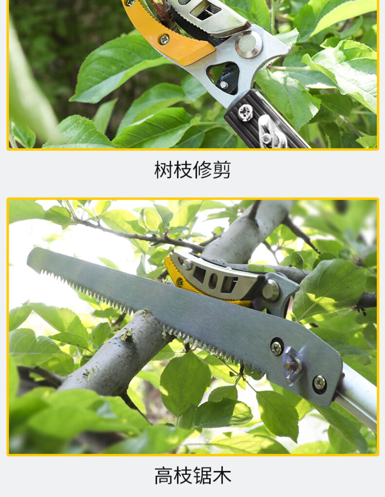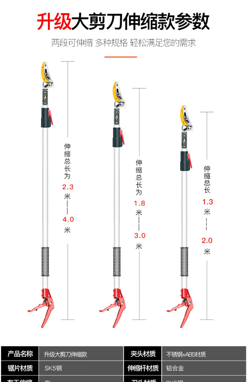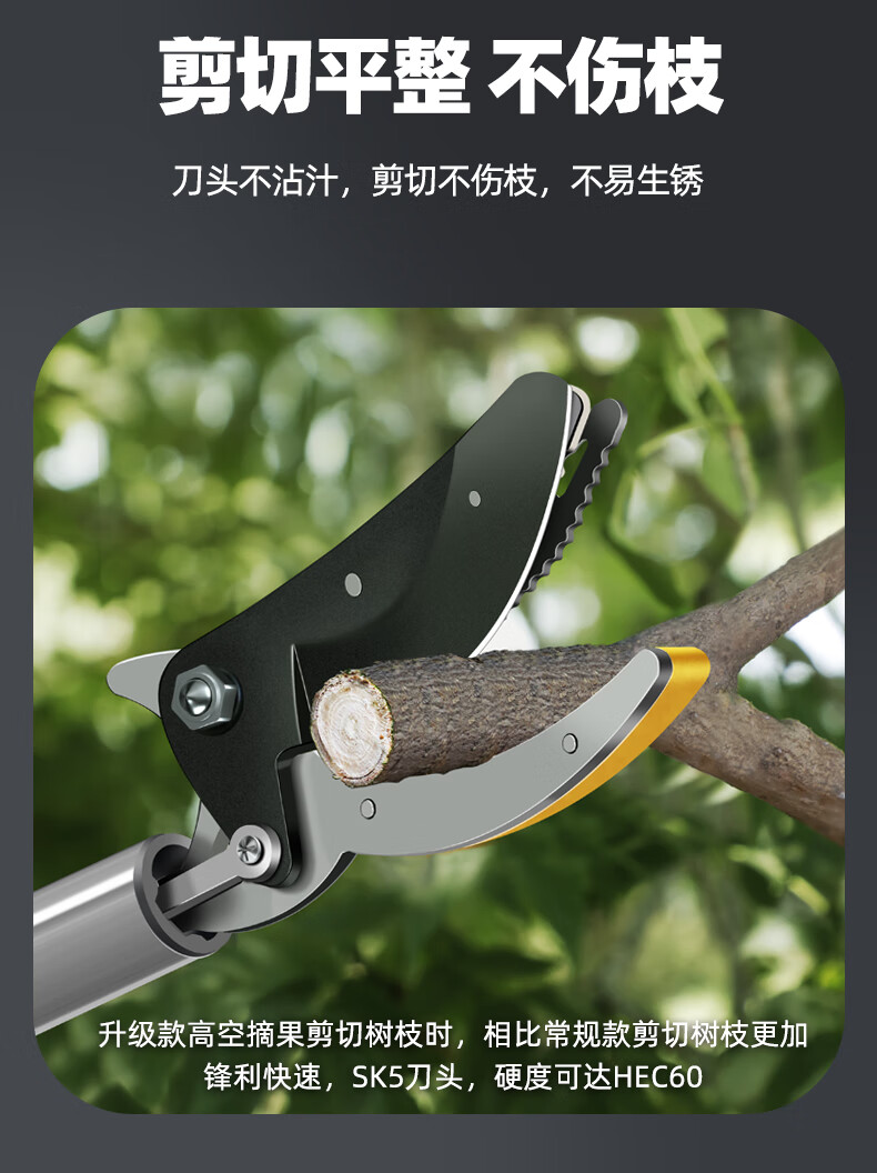 Fruit picking artifact telescopic pole for picking lychees, peppers, bayberries, peaches, apricots and plums, high-altitude branch shears, special scissors, 3-section telescopic 2.1-5 meters + saw blade, fruit branch shears