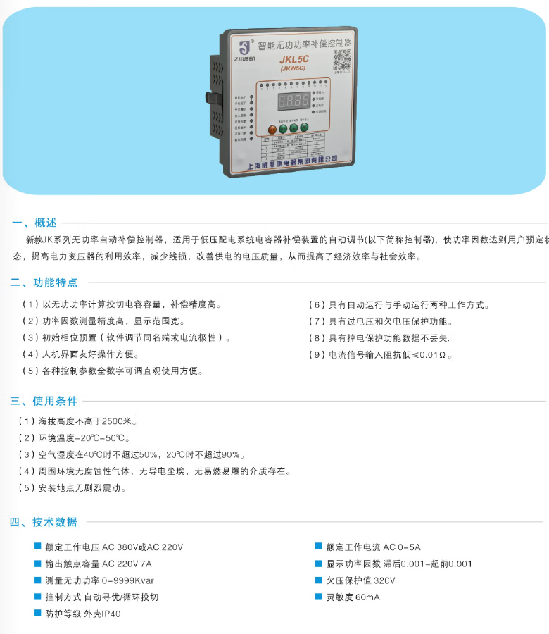 Viscon Shanghai intelligent reactive power automatic compensation controller photovoltaic four-quadrant reactive power compensation controller new JKL5C-12 loop 220v total compensation static 1