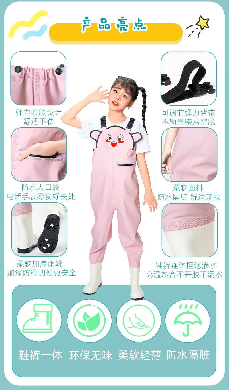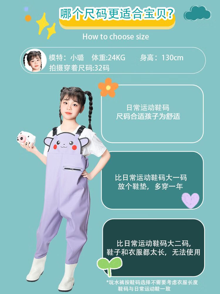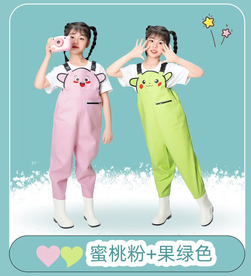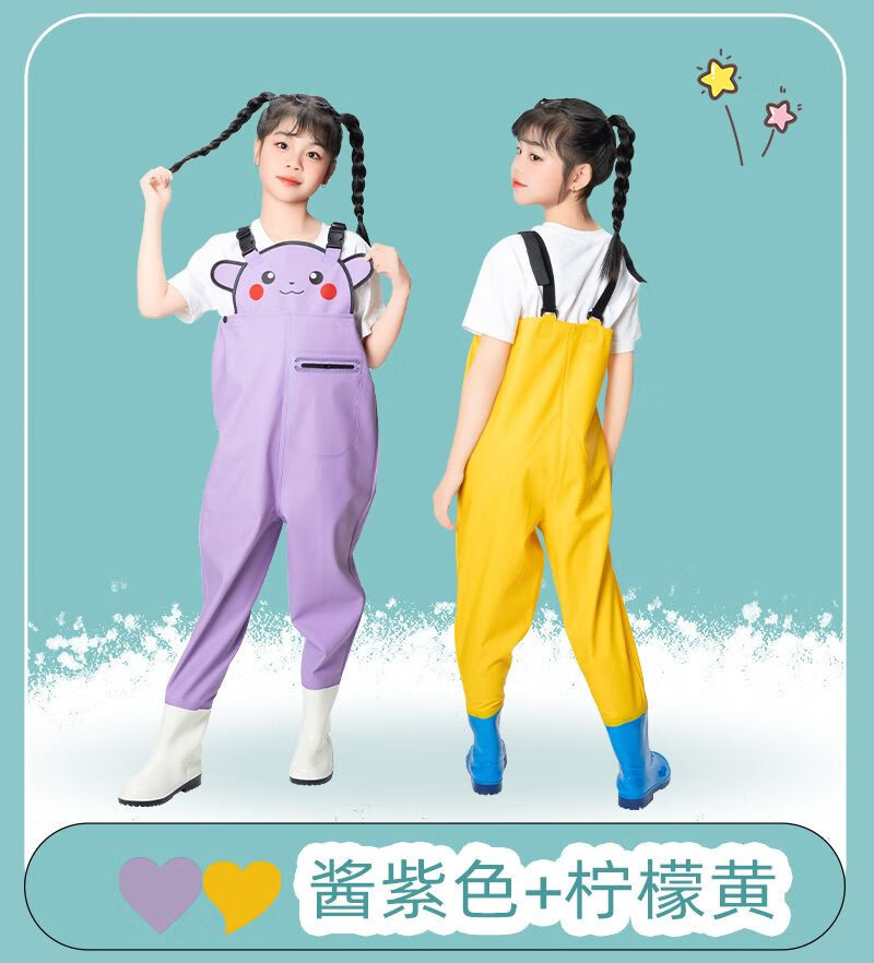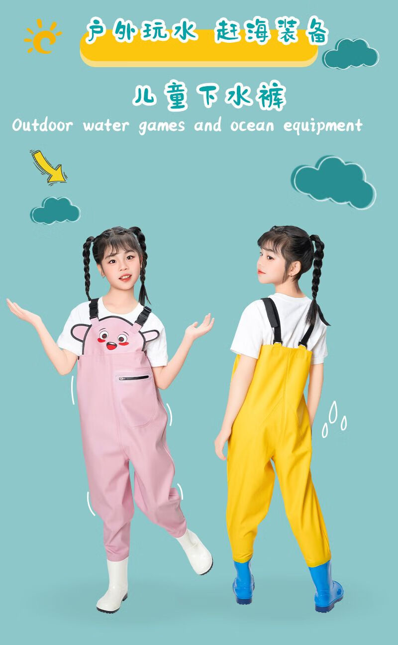 Children's water play one-piece waders, waterproof clothes, sea-going equipment, wading clothes, men's and women's rain boots, rain pants, whole body rainproof, children's yellow overalls, impulse size 24