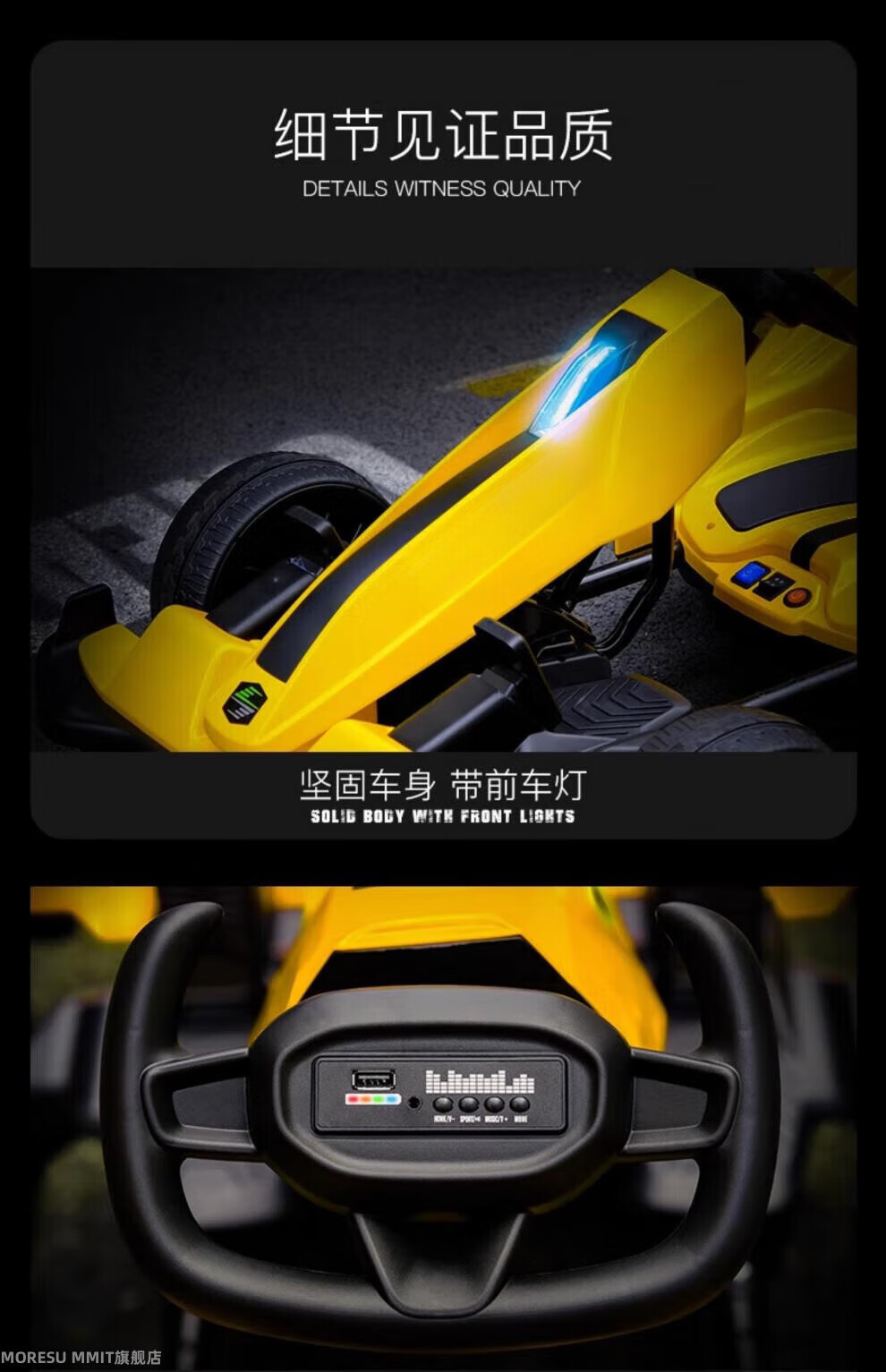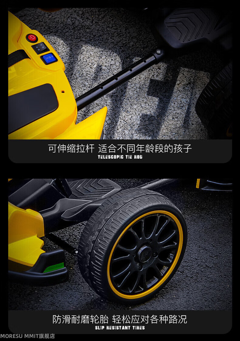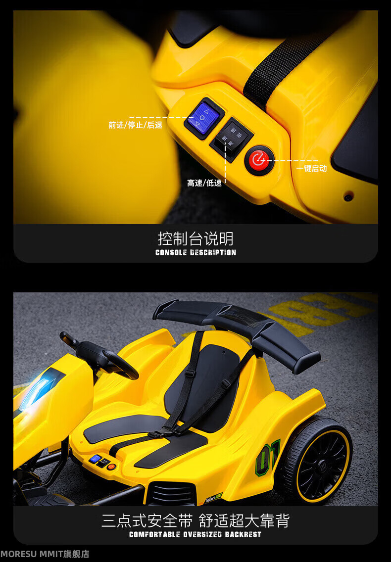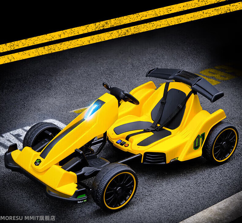 MORESUMMIT new children's electric go-kart for boys and girls charging stroller can sit on adult four-wheel dual drive remote control toy car gift yellow dual drive