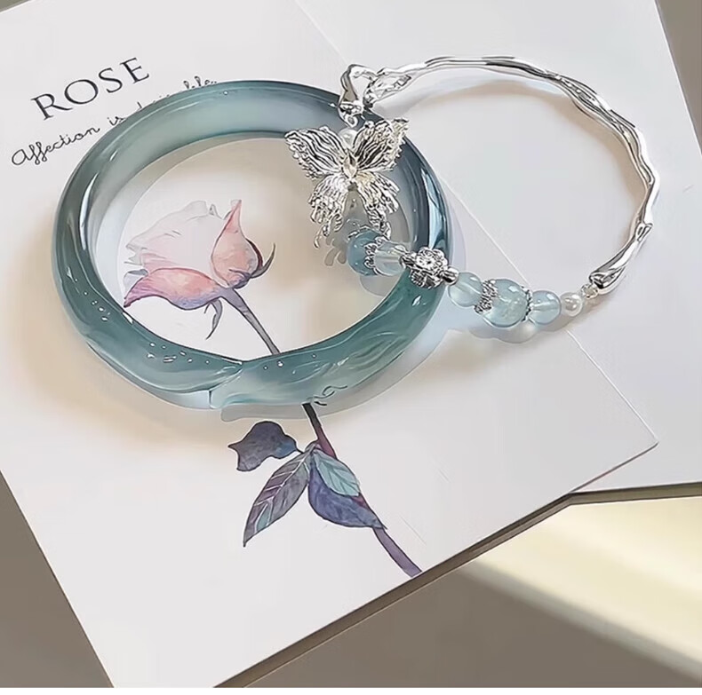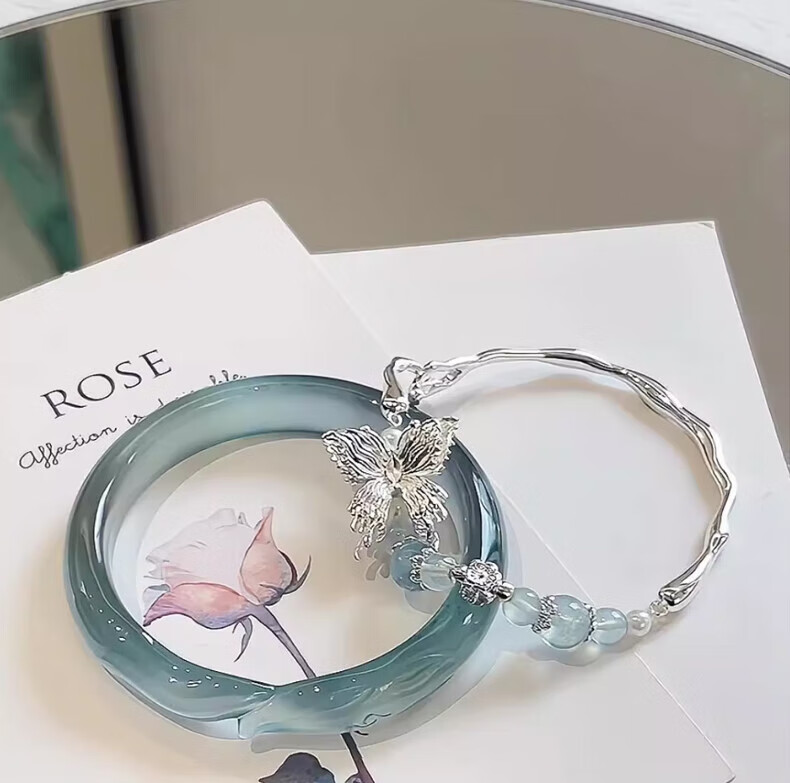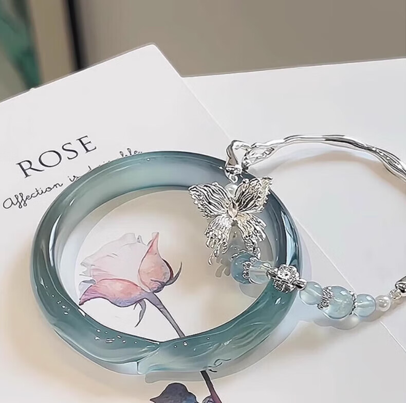KZD Blue Ice Fox Bracelet for Women Stacked Sea Blue Butterfly Bracelet for Women with Cool Feeling and Niche Temperament Xiaohongshu Bracelet + Bracelet
