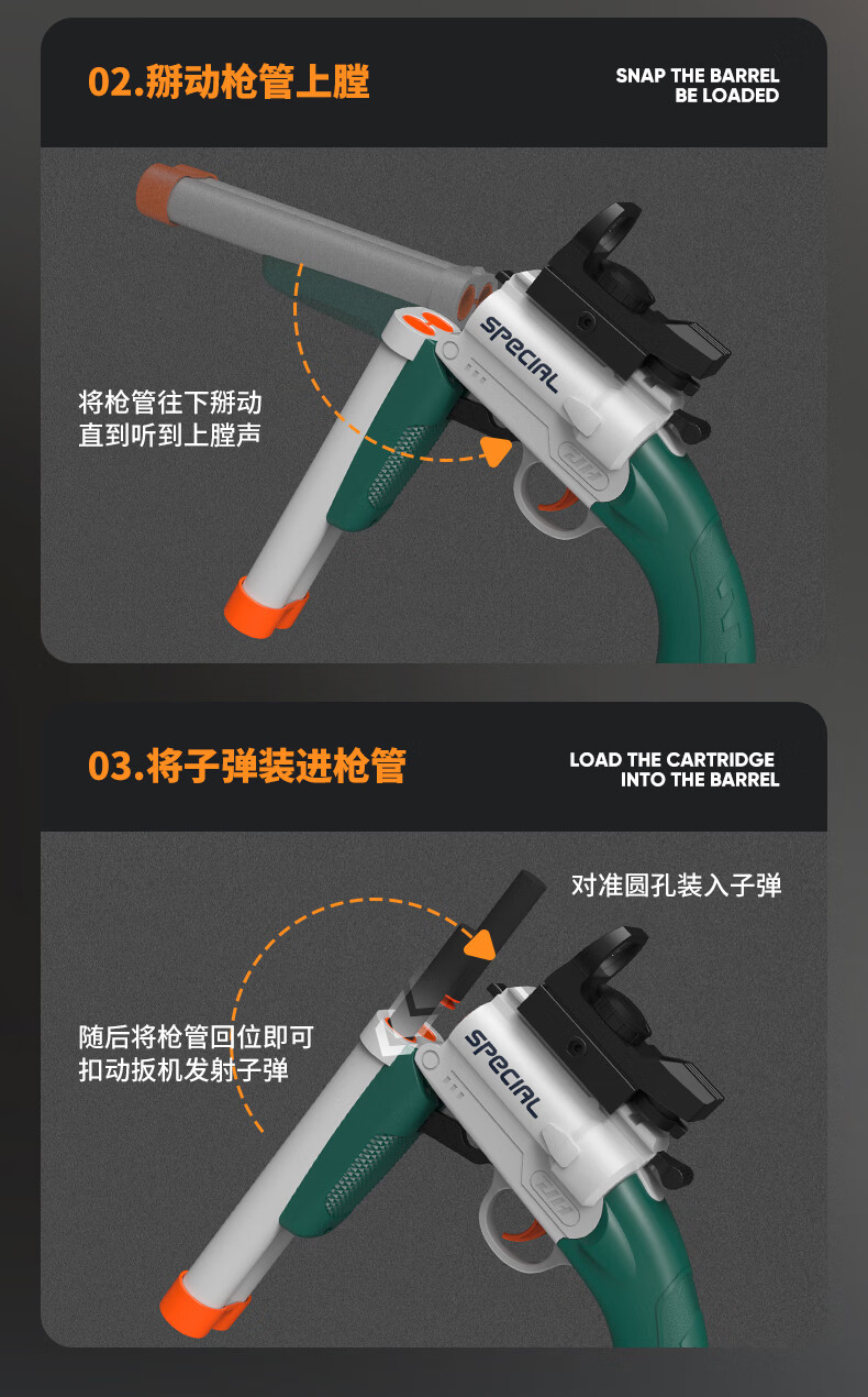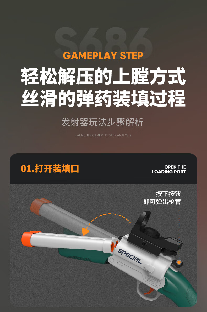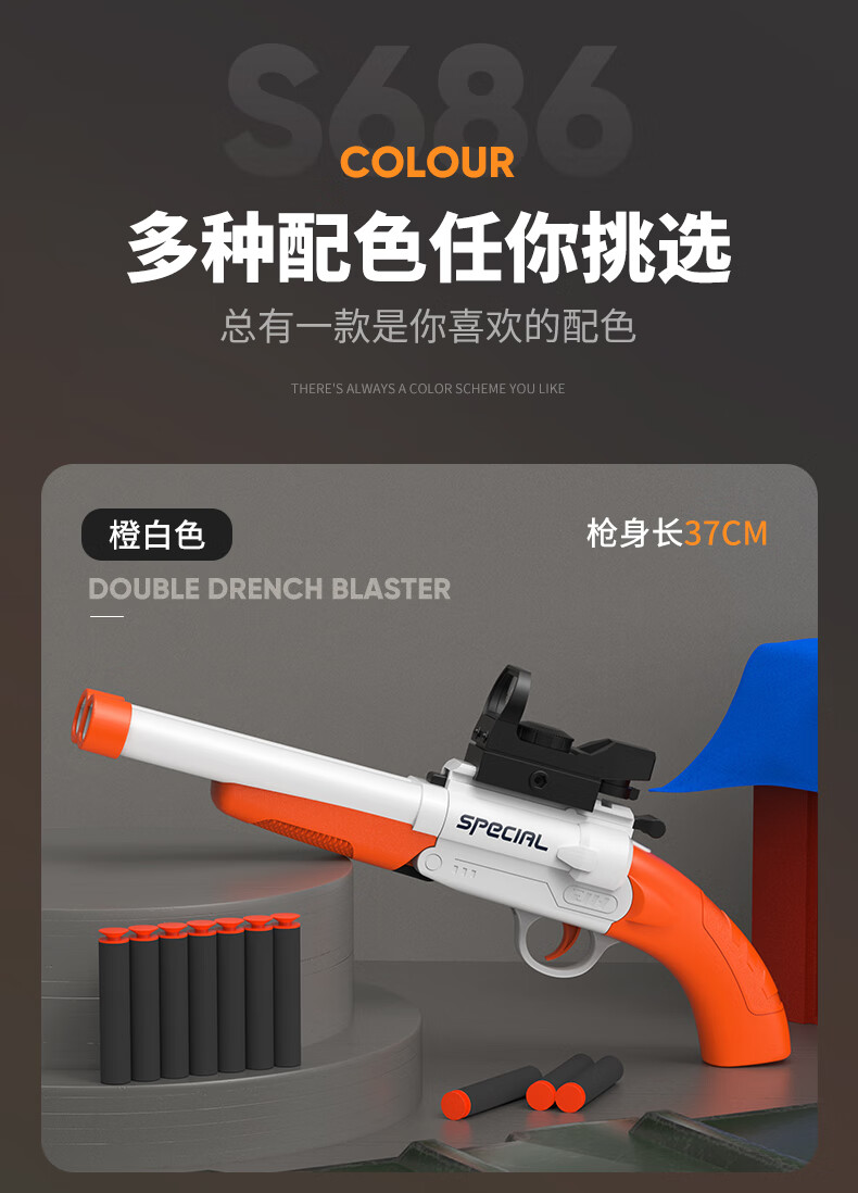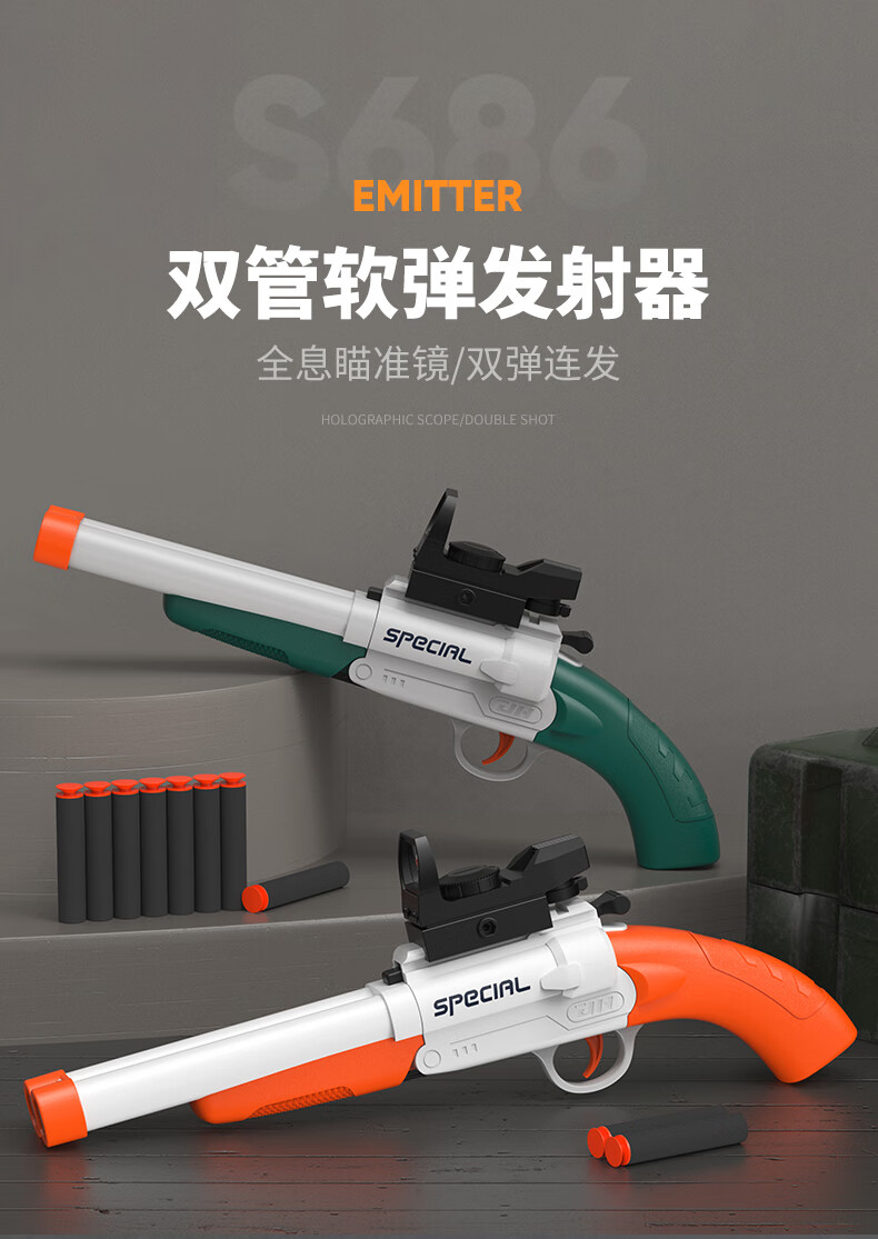 Children's toy double-barreled soft bullet gun holographic aiming S686 short-barreled sprayer orange and white