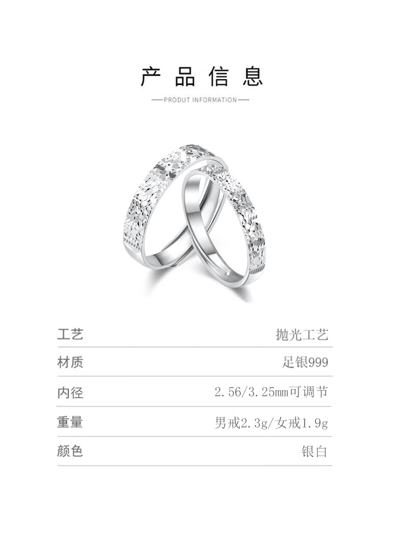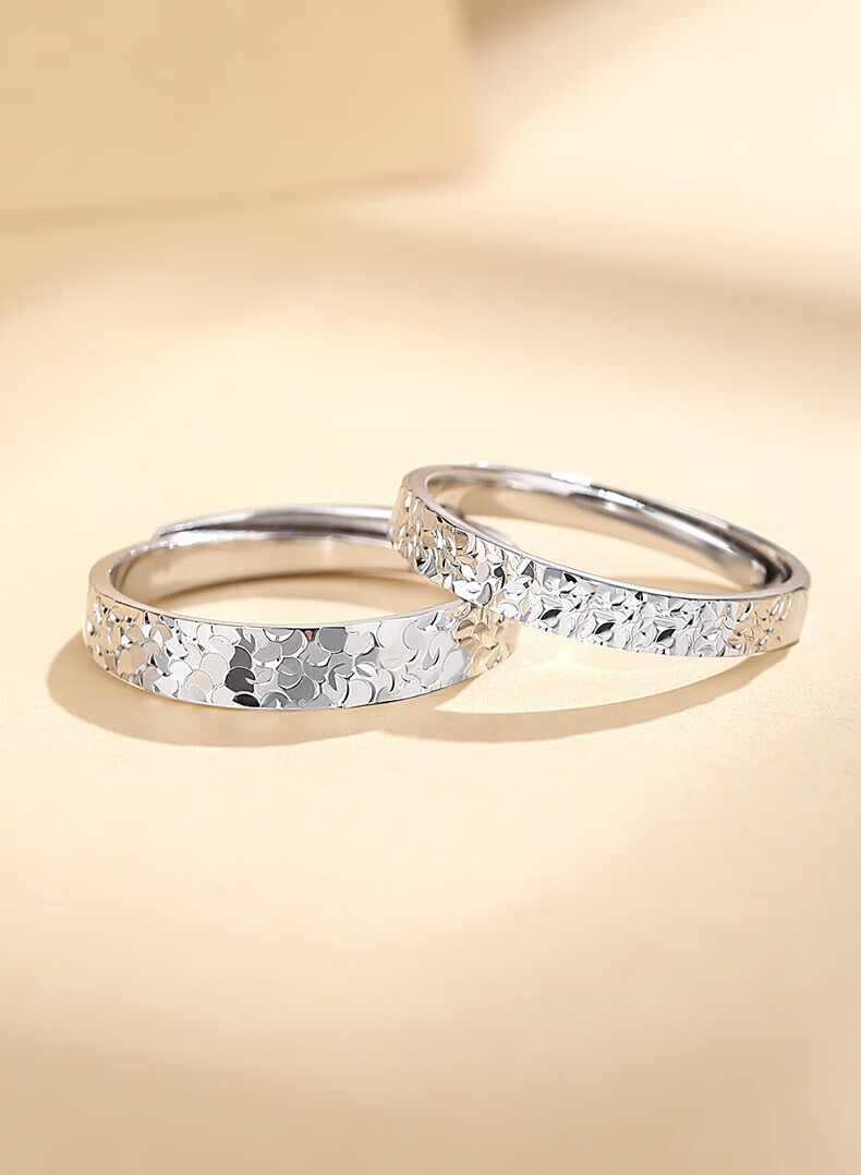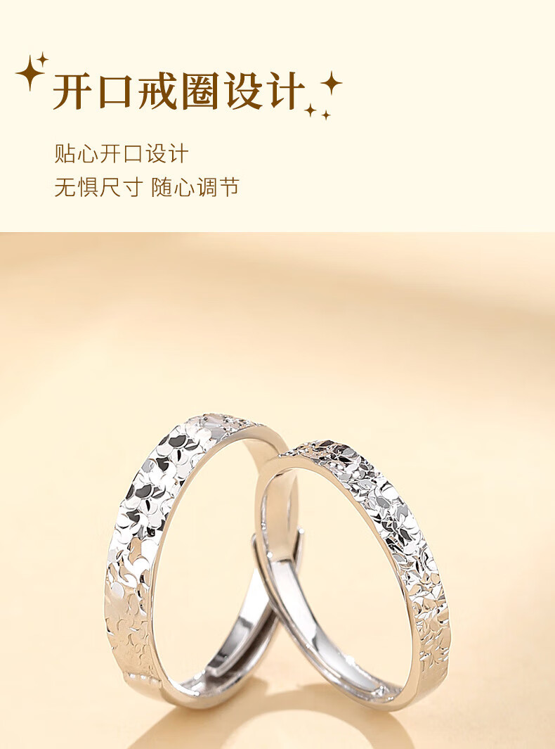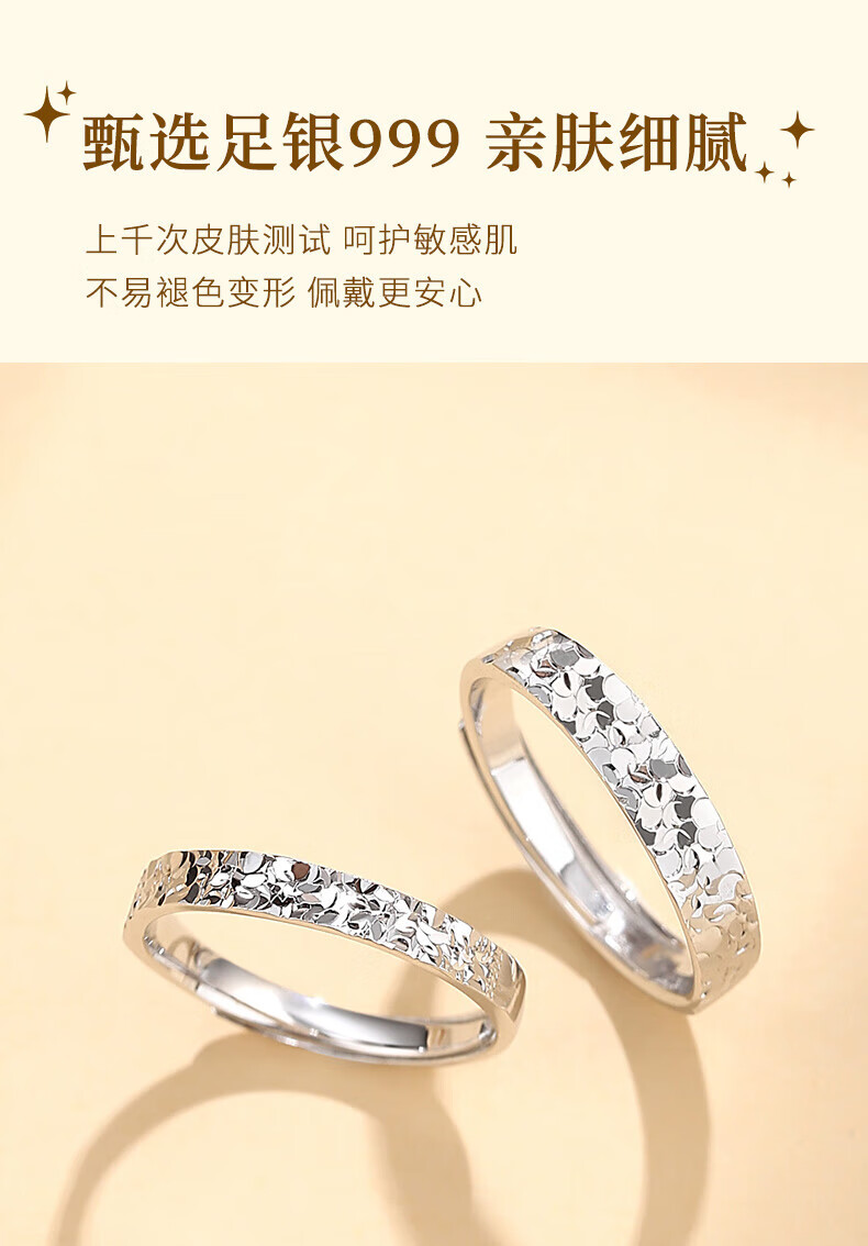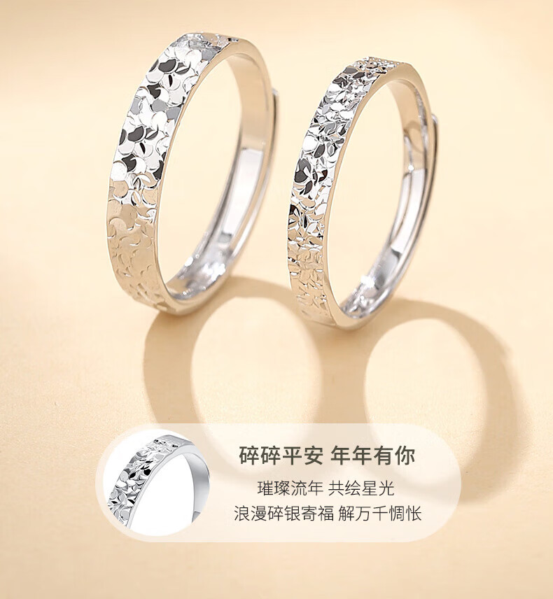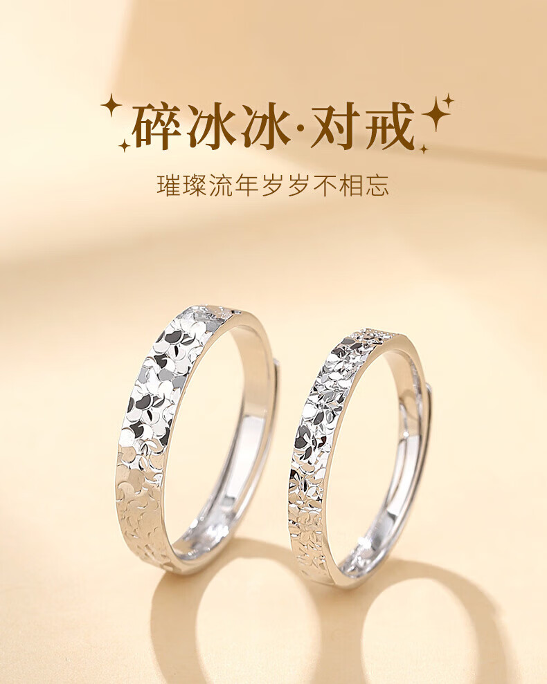 Broken Ice 999 Pure Silver Couple Rings Men's and Women's Sterling Silver Rings for Chinese Valentine's Day Official Anniversary Birthday Gift Broken Ice 999 Pure Silver-Paired Rings Gold Original Gift Box