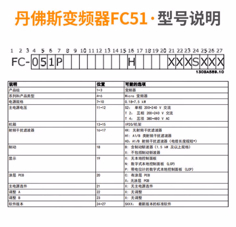 Danfoss inverter FC51 single three-phase 220/380V132F002/3/5/18/20/22/24Dan 132F0028 three-phase 380V5.5KW does not include surface