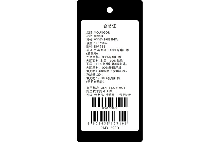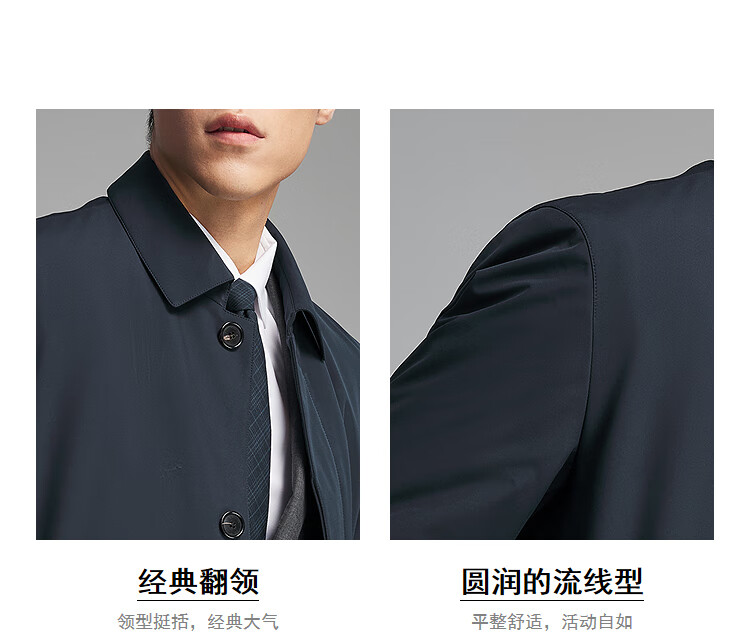 Youngor windbreaker men's high-quality polyester fiber down windbreaker business lapel classic inner zipper 2025 new product combination Navy VYYF419865FFA 2XL 185/104A (recommended 170-180Jin Jin equals 0.5 kg)