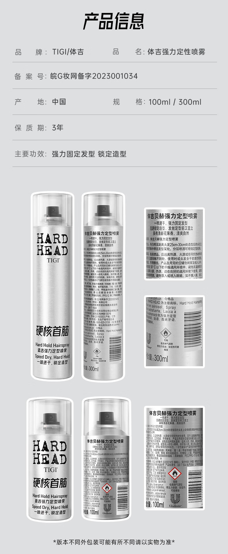 Tiji's new product, strong styling spray hairspray, long-lasting elastic curling sheet, space hairspray 300ml + elastin 5ml*2