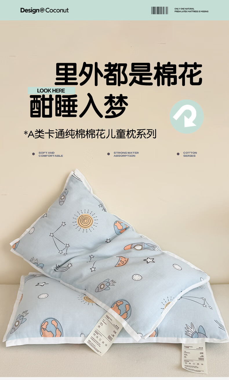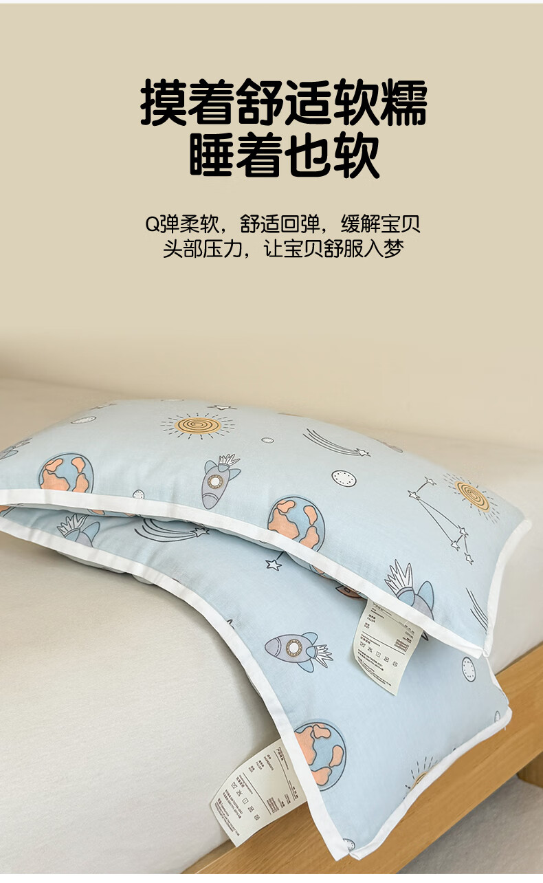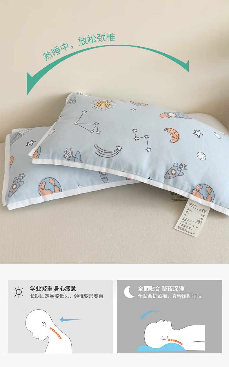 Yalu Class A 100% Cotton Children's Cotton Pillow Pair Pack 3-6-12 Years Old Kindergarten Baby Nap Pillow Core Removable and Washable Rainbow Planet Single Pack Class A 100% Cotton 30*50cm 100% Cotton Inside and Out Removable and Washable