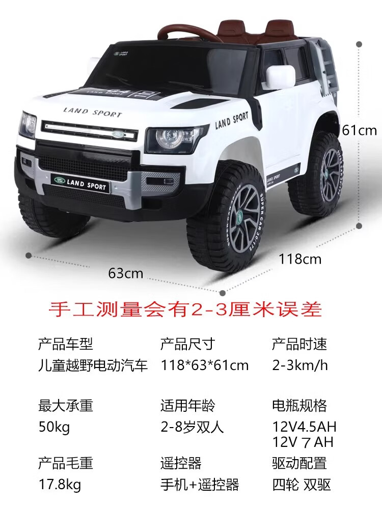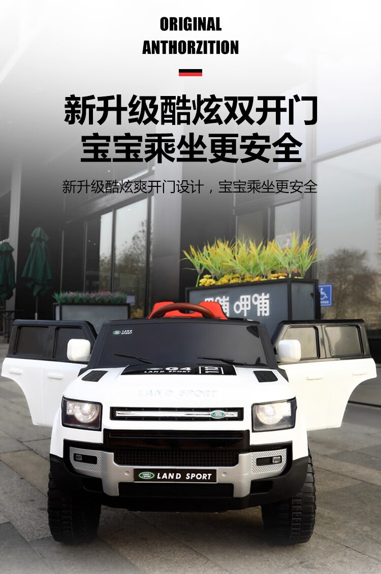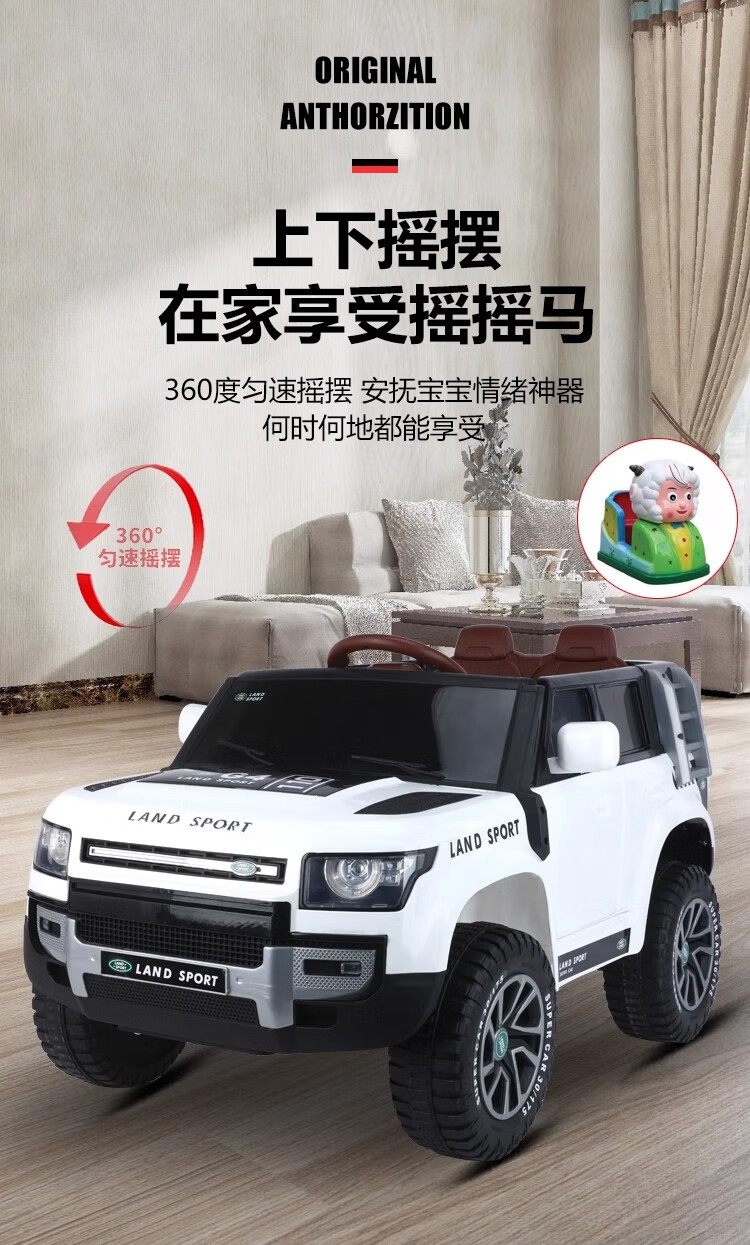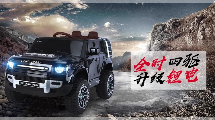 Baby electric car, children can ride on four-wheel drive off-road vehicle, male and female baby four-wheel with swing remote control toy car, painted black + dual drive + remote control + swing + Bluetooth