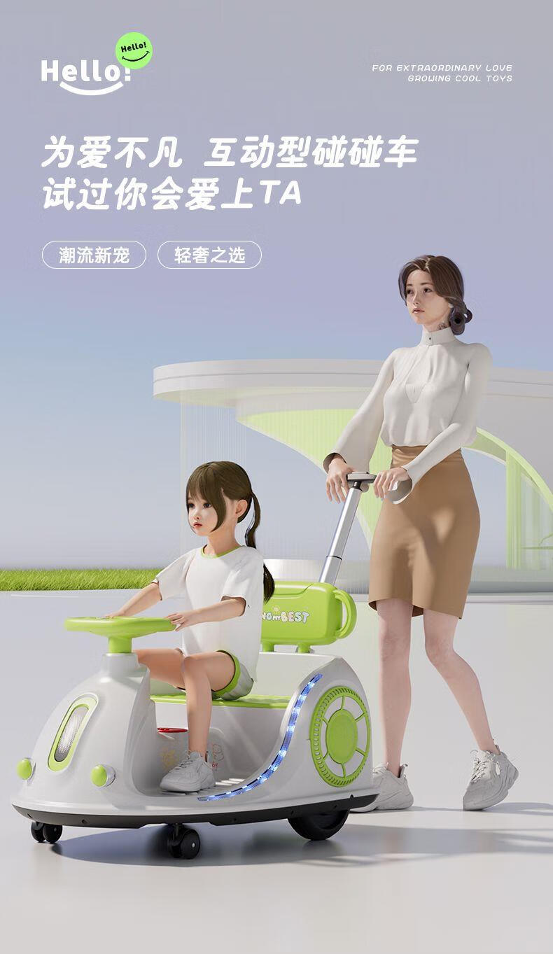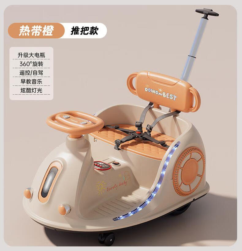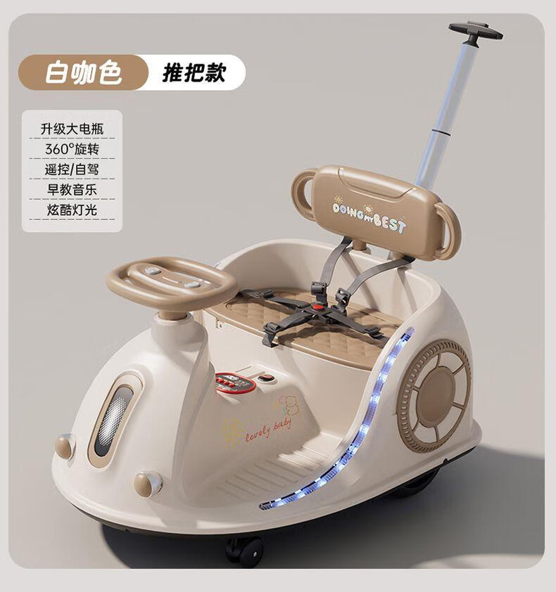Electric Twist Car Children's Bumper Car Children Can Sit Adults Children's Music Toys Men's and Women's Anti-Rollover White Coffee Color 6V7A+Dual Drive+Electric+Remote Control