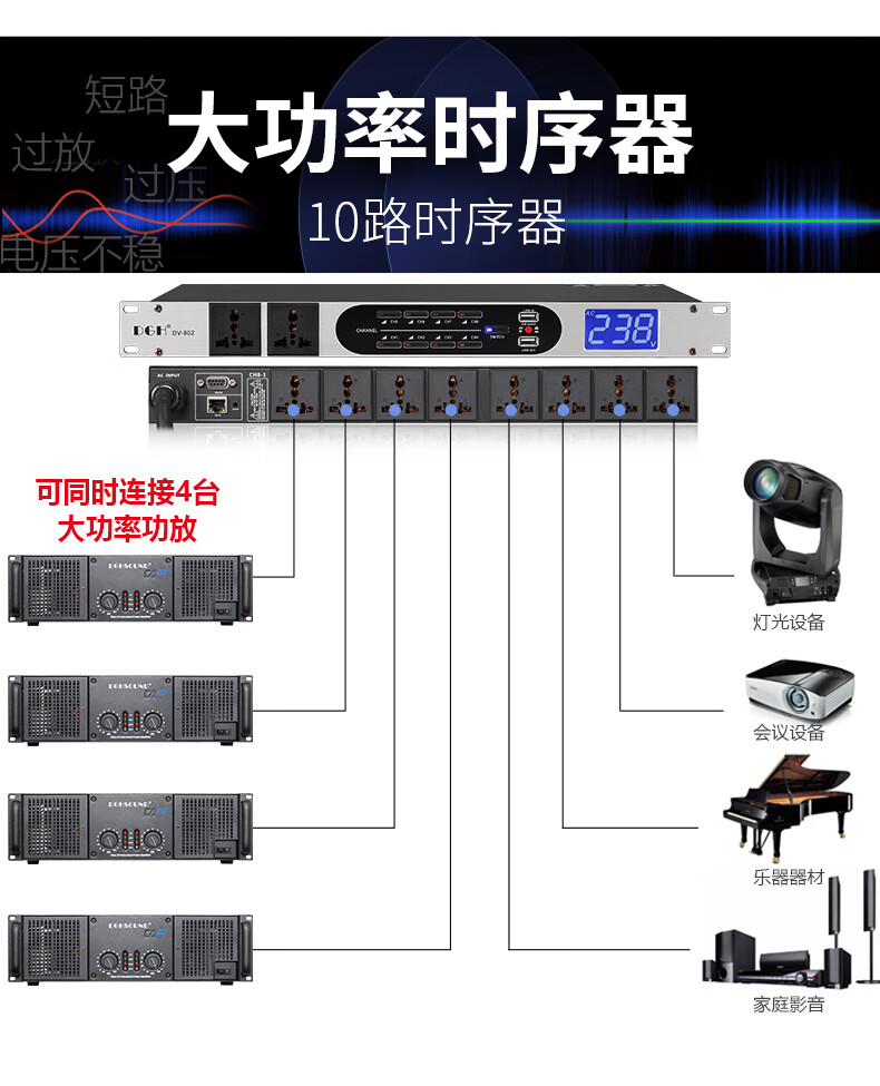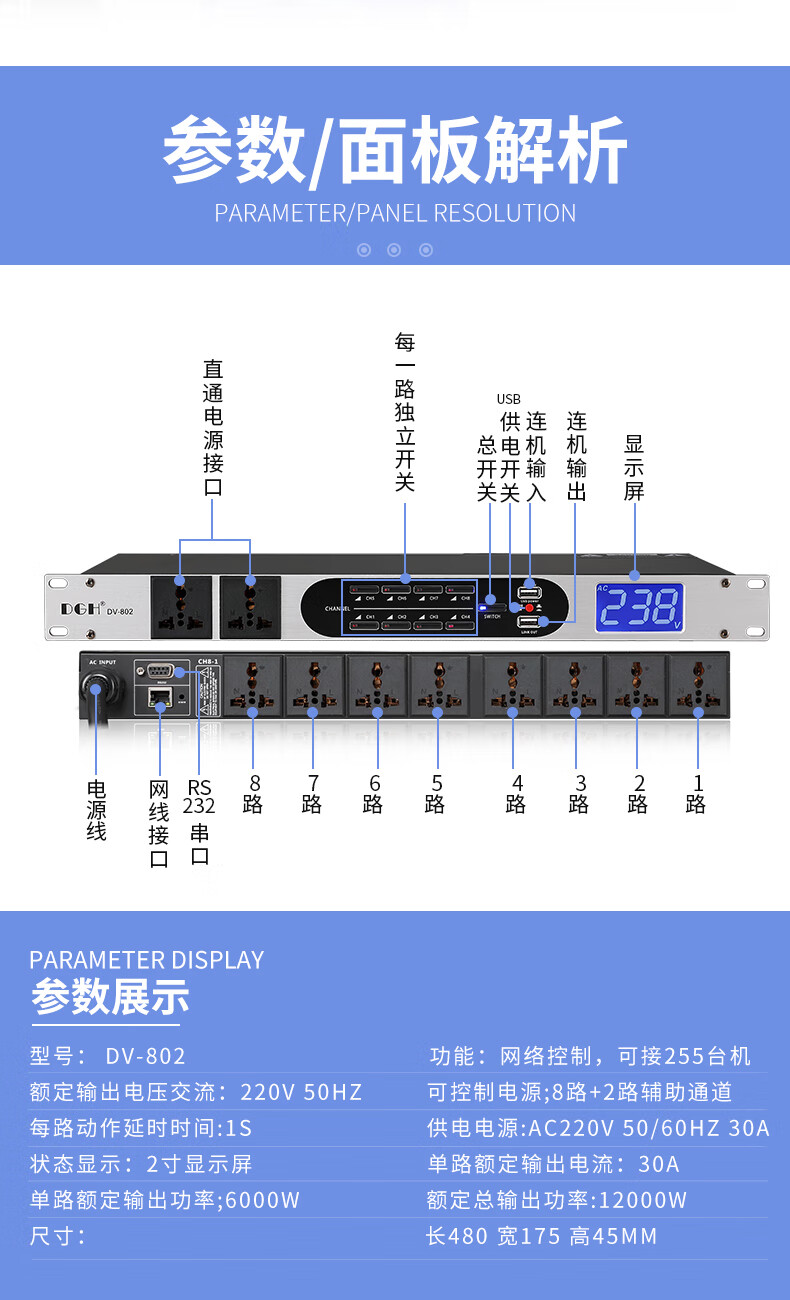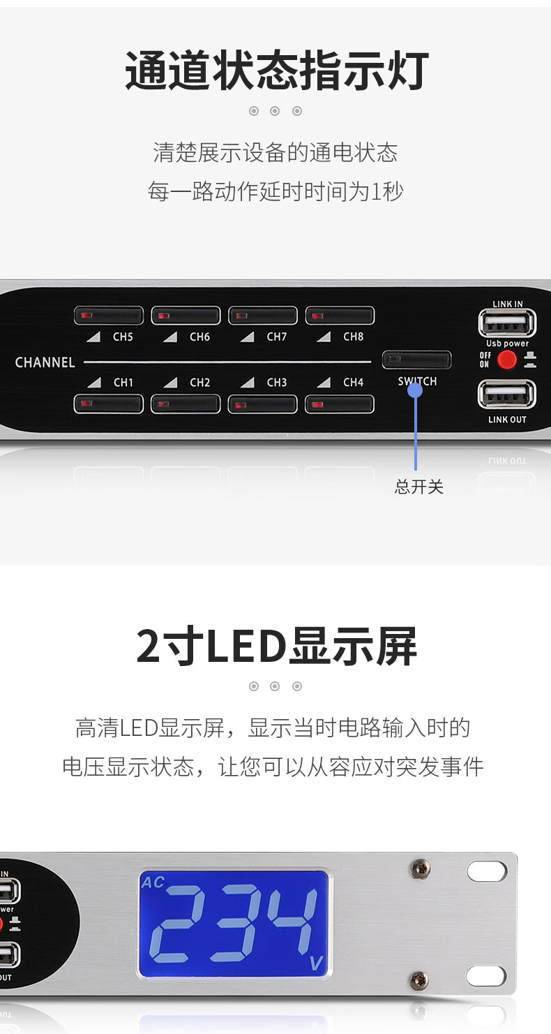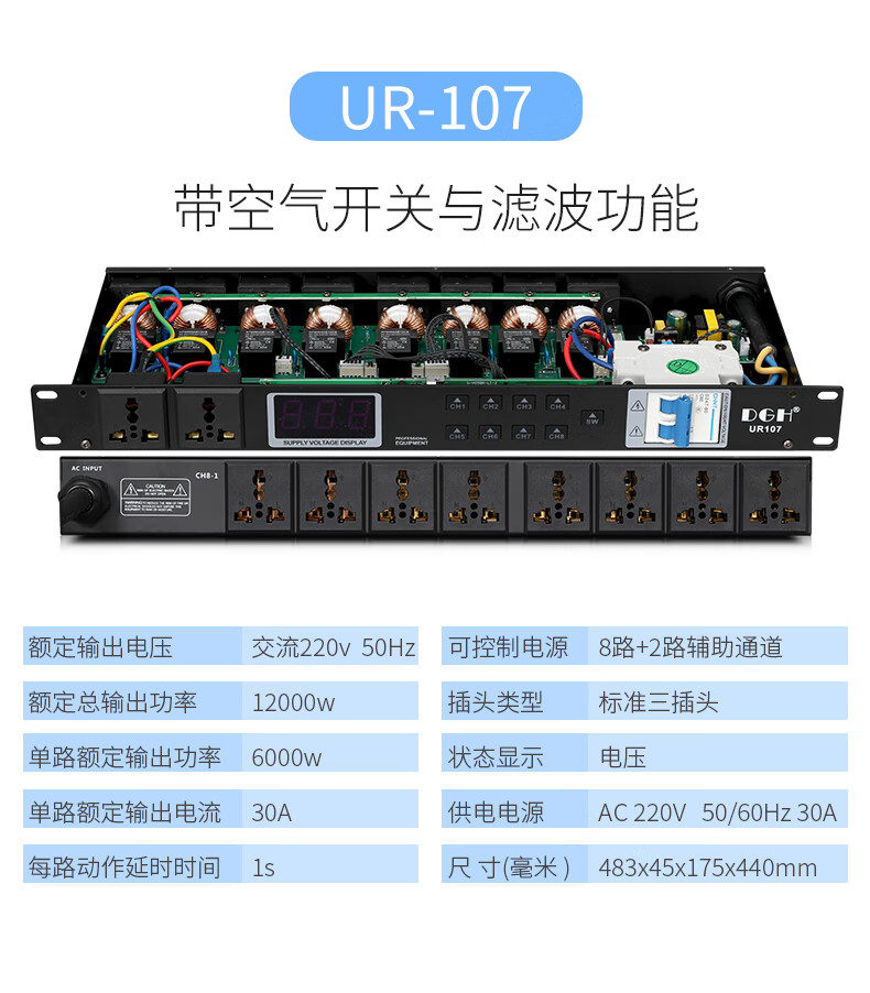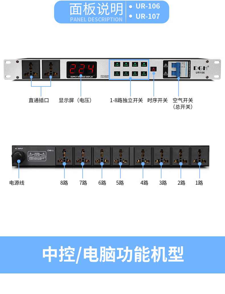 Jinghuilai is suitable for DGH professional network control 10-way power sequencer 8-way sequence manager computer central control RS2 UR-105 with independent control and voltage display 22