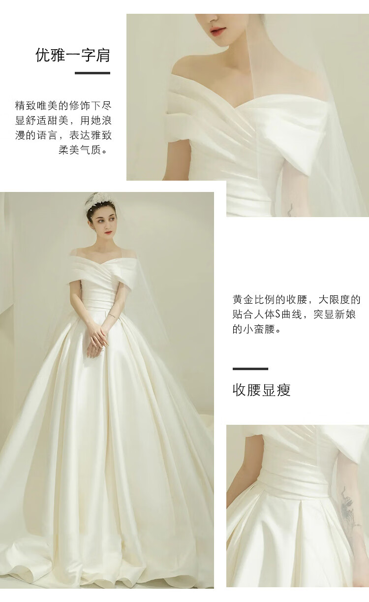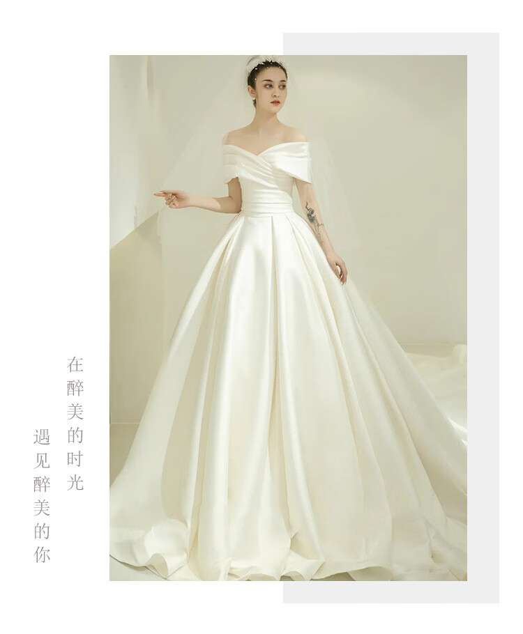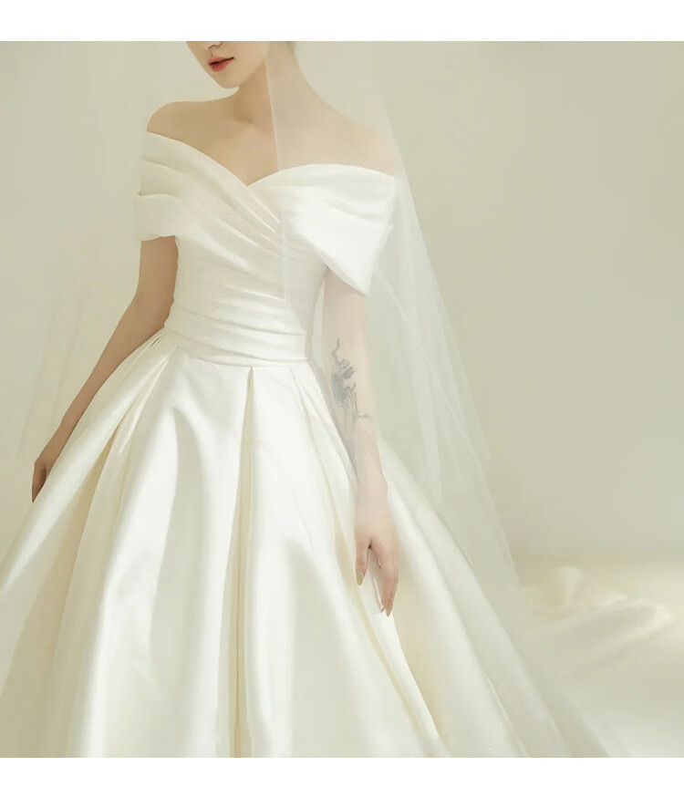 Pierre Cardin (Pierre Cardin) Satin Wedding Dress 2025 New Temperament Bride One-shoulder Palace Style French Atmosphere Simple Fairy Style Main Entrance Veil Ivory White (Tie) XL