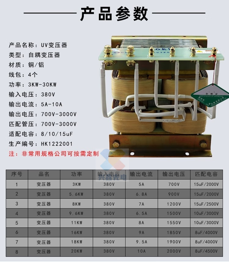 Jingsenzhen UV lamp transformer 3KW5.6kw8KW9.6KW12KW Ultraviolet UV lamp capacitor High voltage mercury lamp transformer 3KW aluminum core transformer 300W or more
