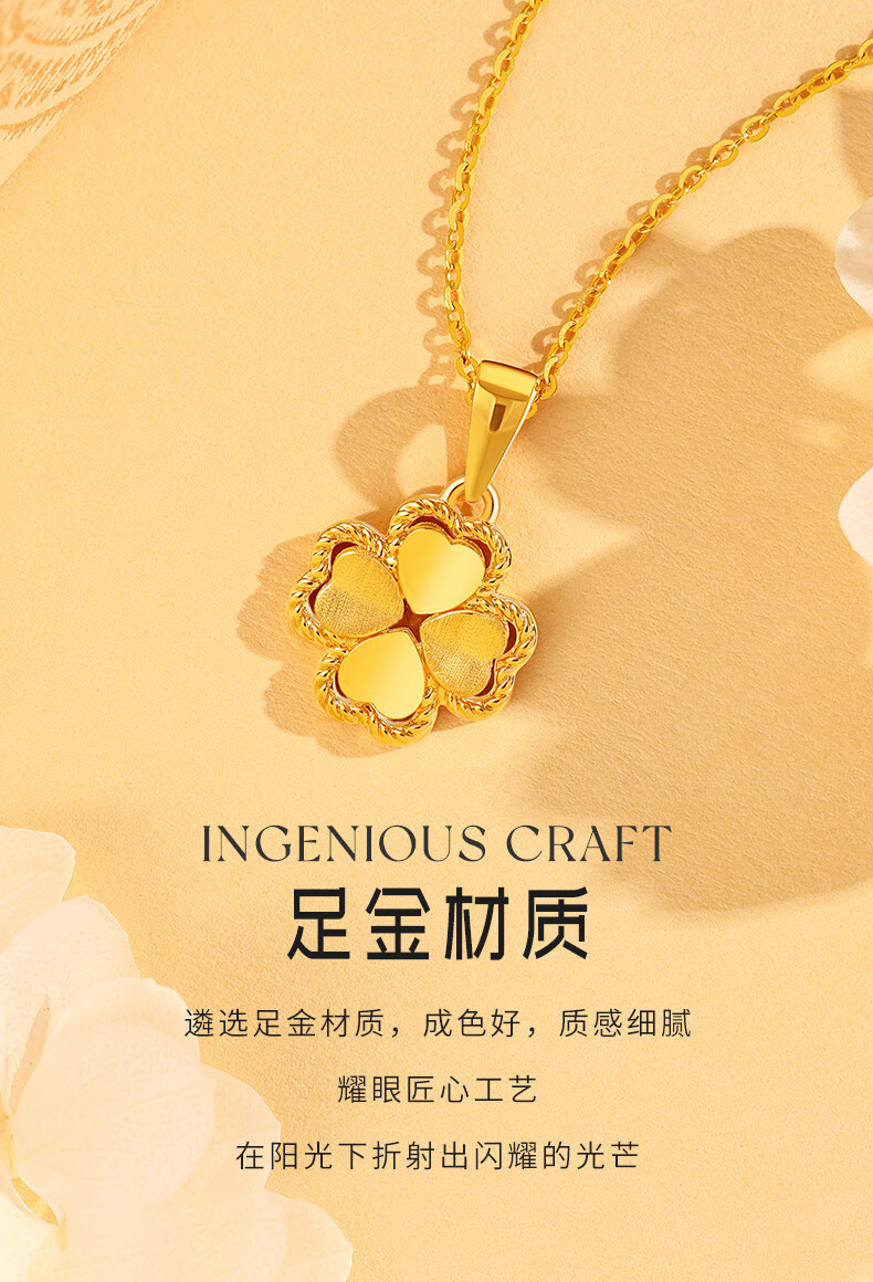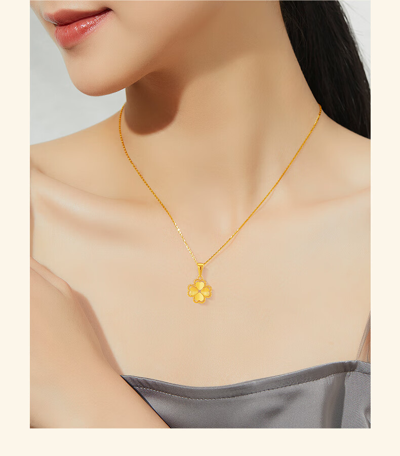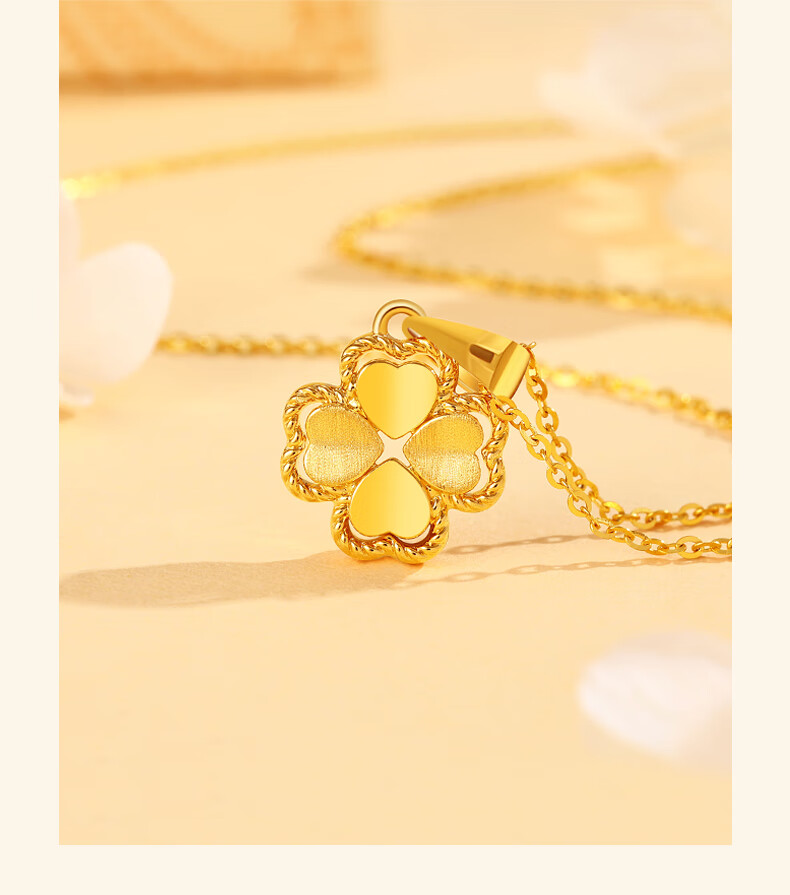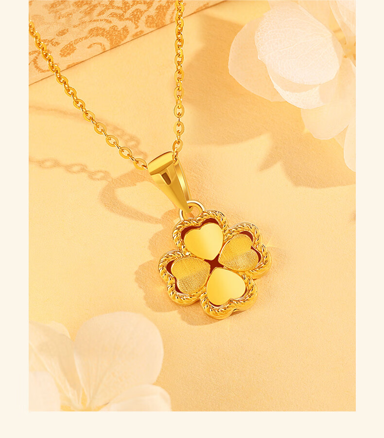 Chinese Jewelry Gold Necklace Heartbeating Four Leaf Clover Women's Pure Gold Pendant Birthday Festival Valentine's Day Gift for Girlfriend and Wife Gold Set Chain Gold Approximately 1.9-2g + Gift Box