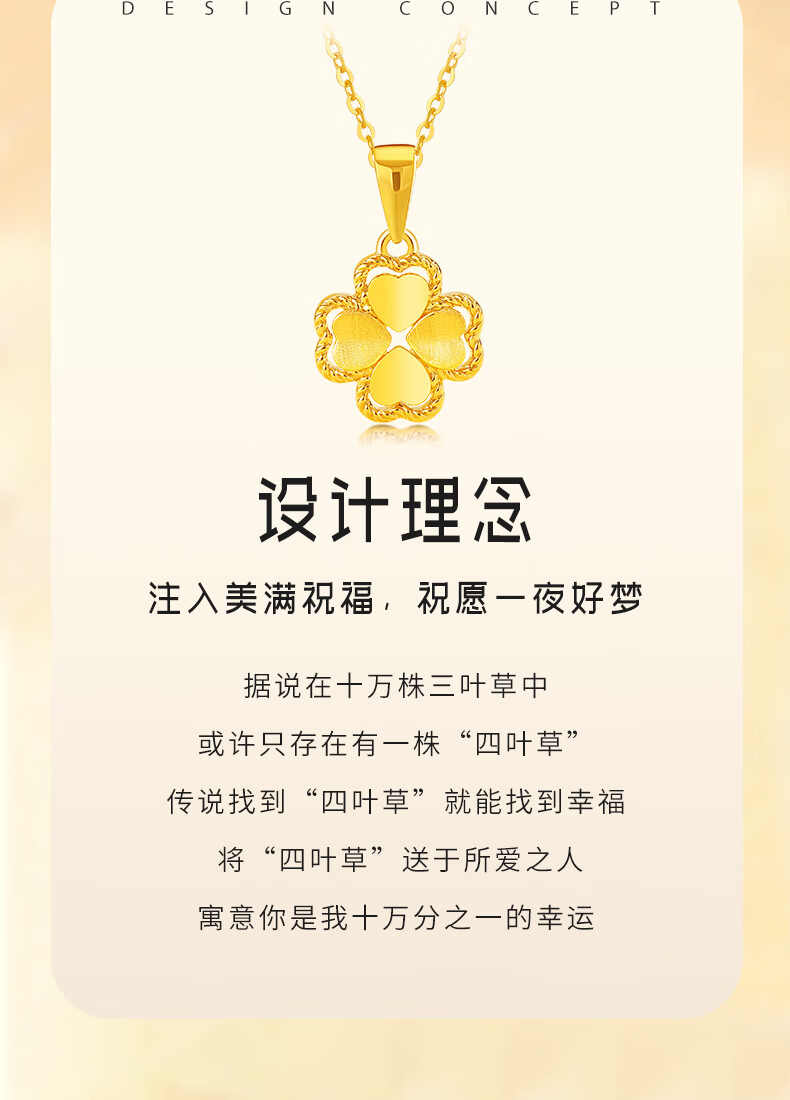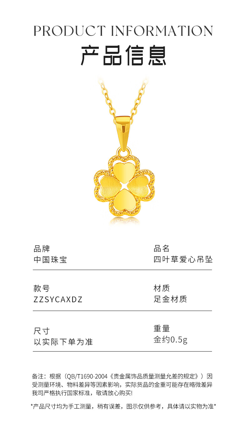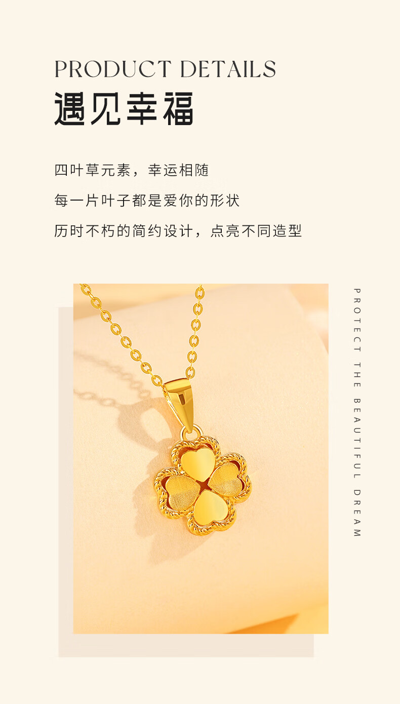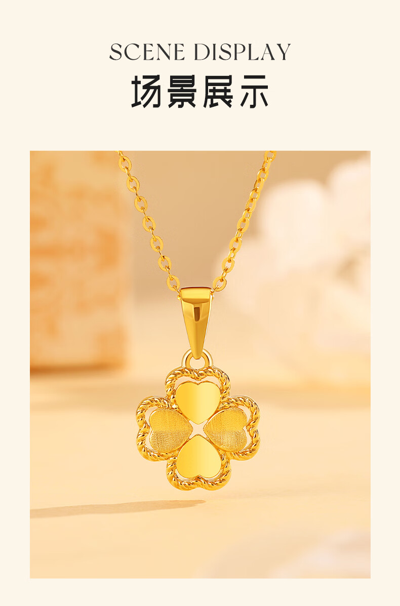 Chinese Jewelry Gold Necklace Heartbeating Four Leaf Clover Women's Pure Gold Pendant Birthday Festival Valentine's Day Gift for Girlfriend and Wife Gold Set Chain Gold Approximately 1.9-2g + Gift Box