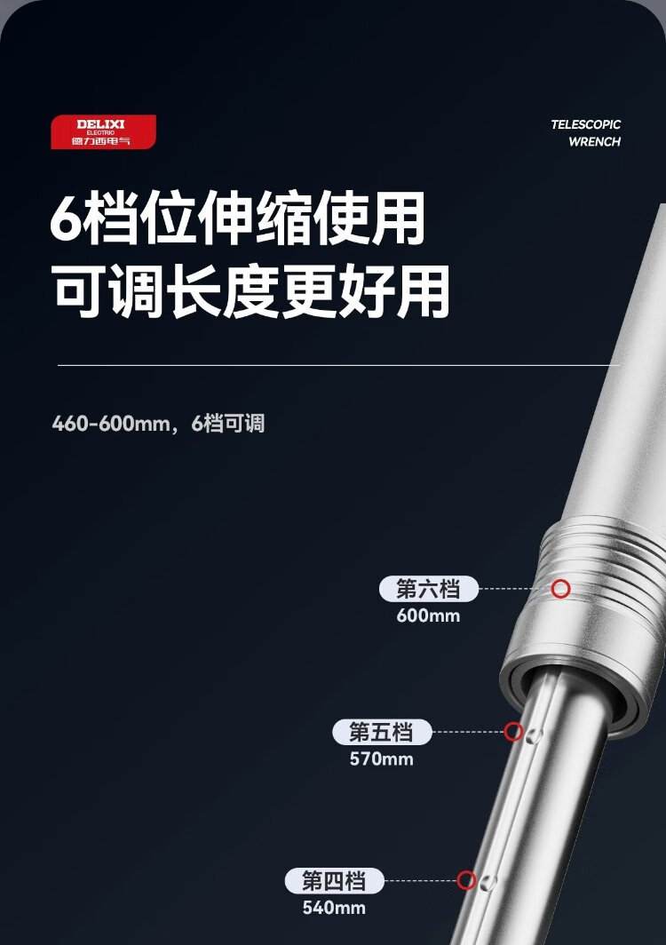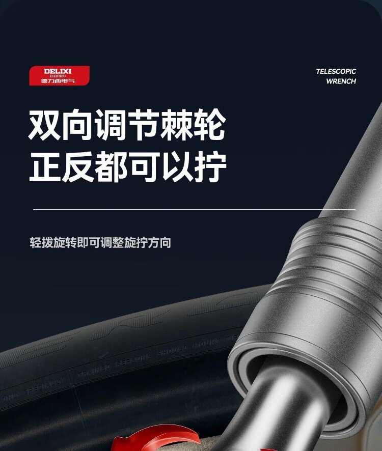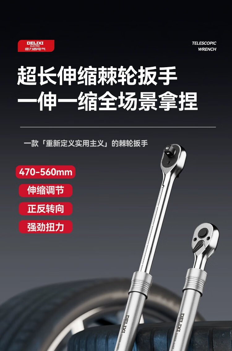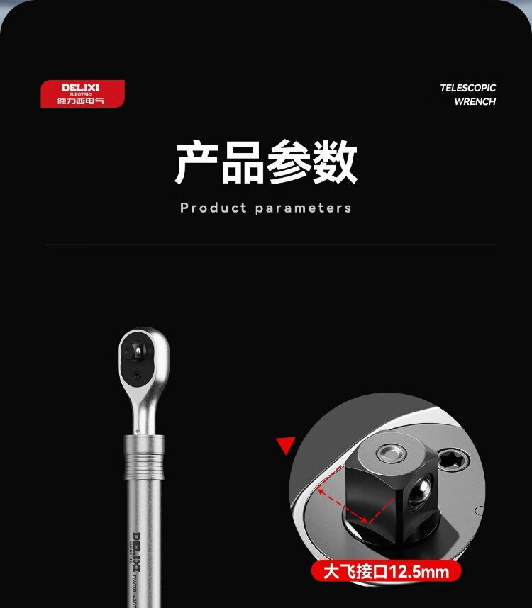 Delixi Industrial Grade 1/2 Dafei 72-Tooth Extended Telescopic Ratchet Wrench Socket Quick Wrench Labor-saving Two-way Available Delixi 1/2 Extra Long Telescopic Ratchet Wrench*1