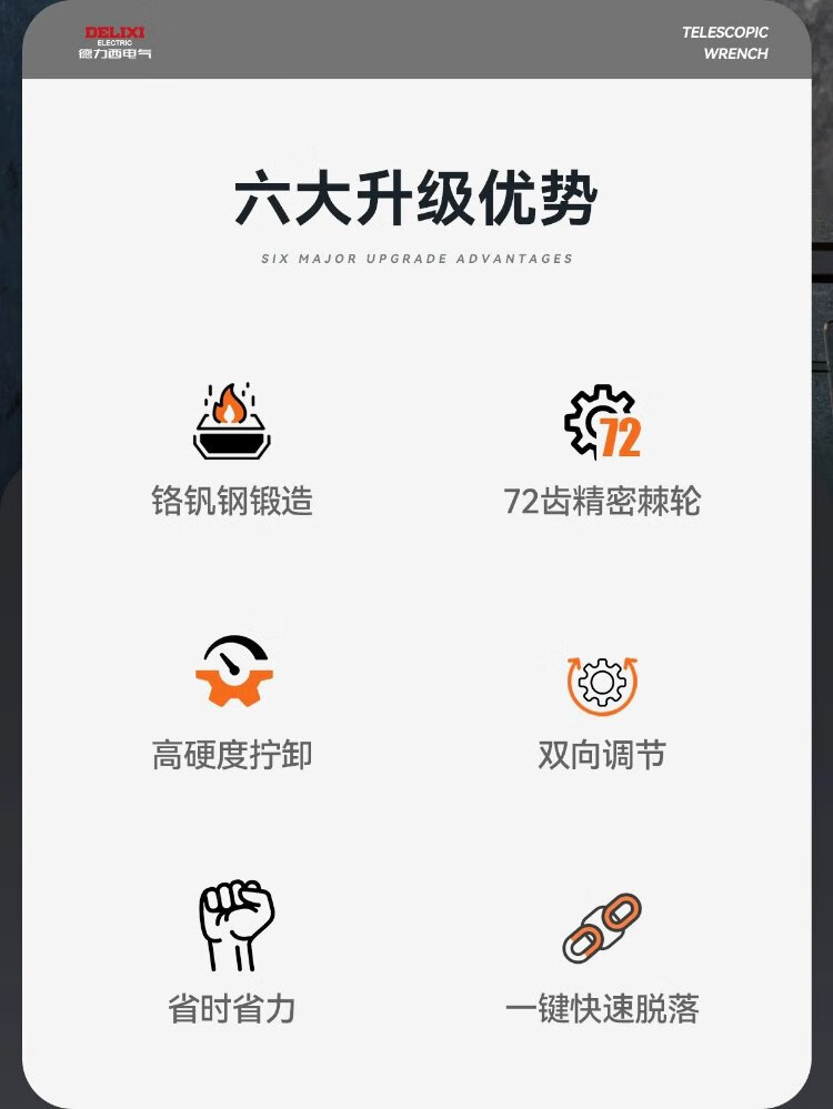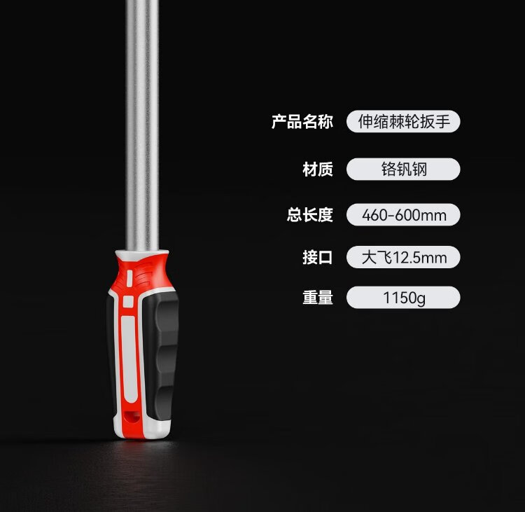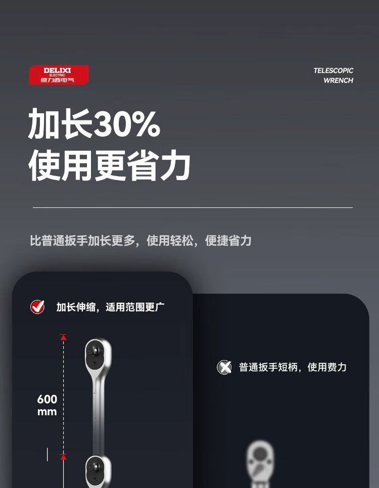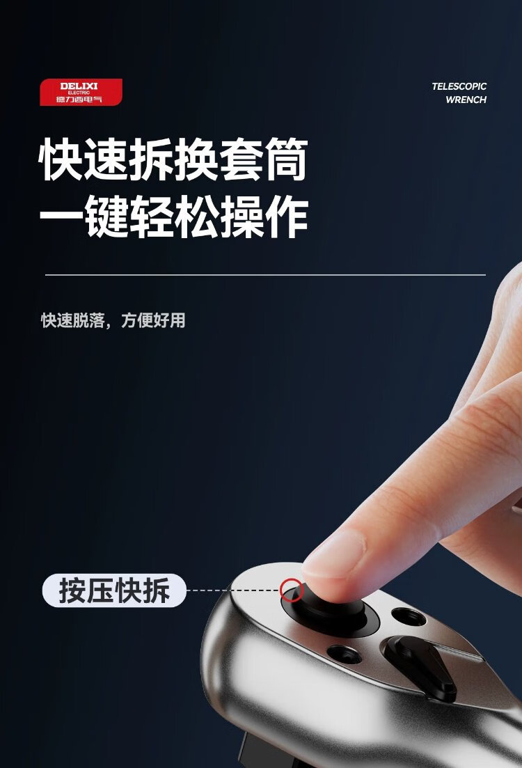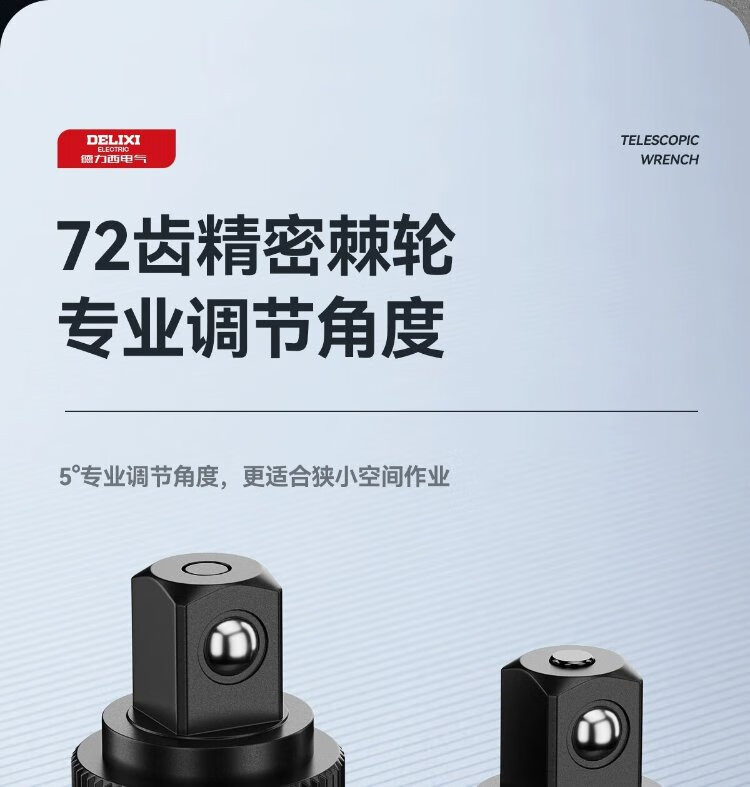 Delixi Industrial Grade 1/2 Dafei 72-Tooth Extended Telescopic Ratchet Wrench Socket Quick Wrench Labor-saving Two-way Available Delixi 1/2 Extra Long Telescopic Ratchet Wrench*1