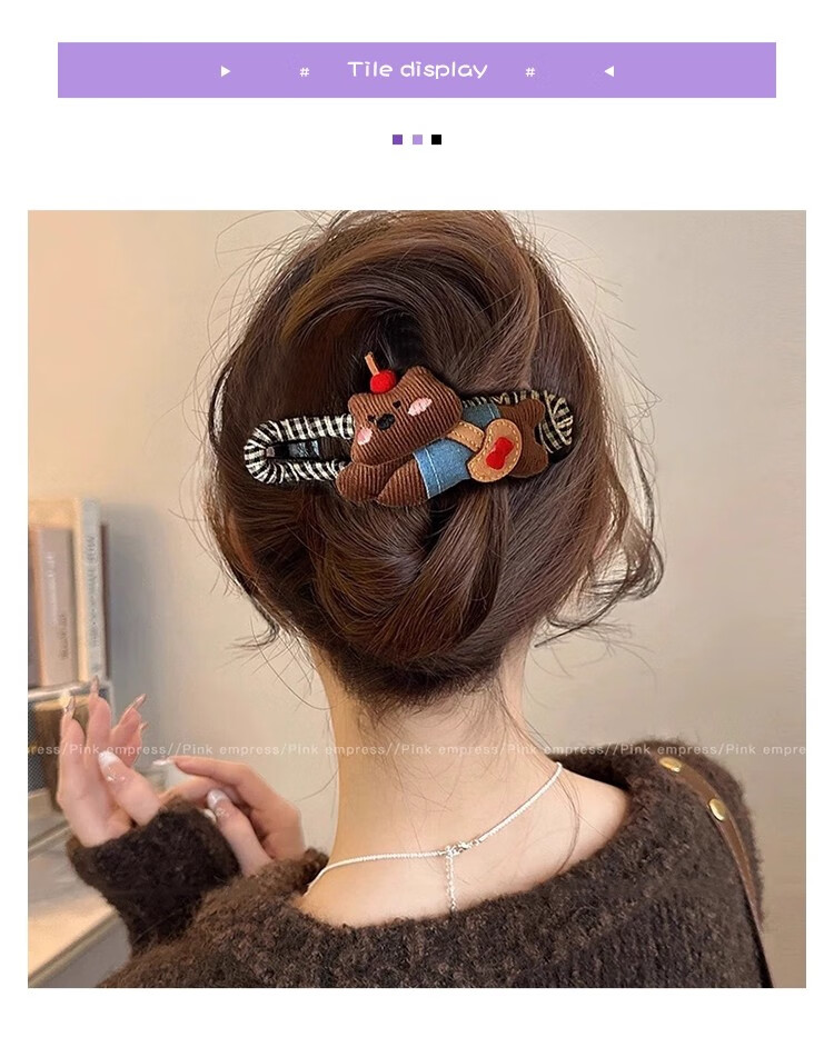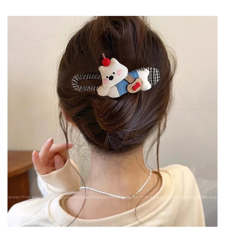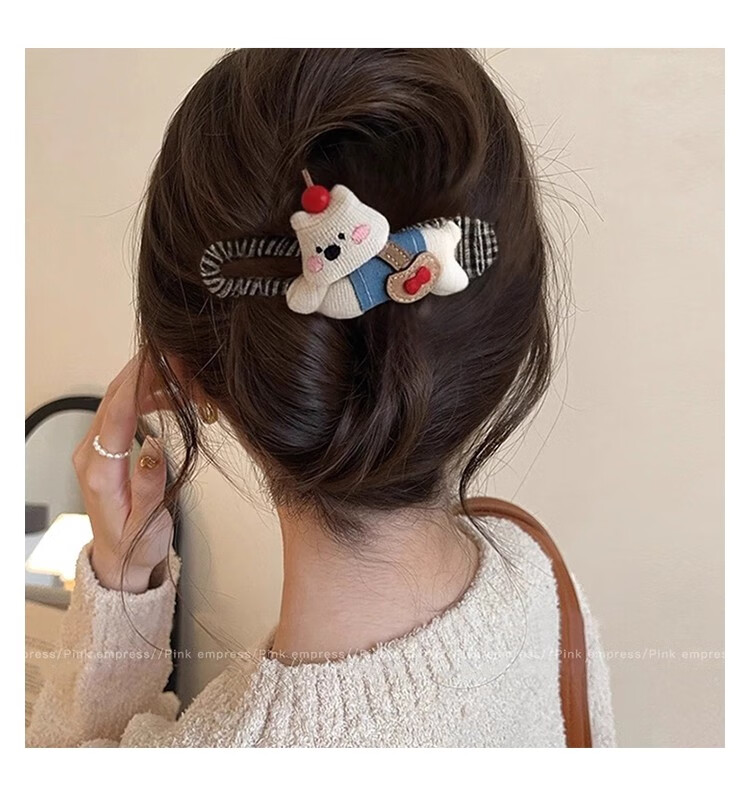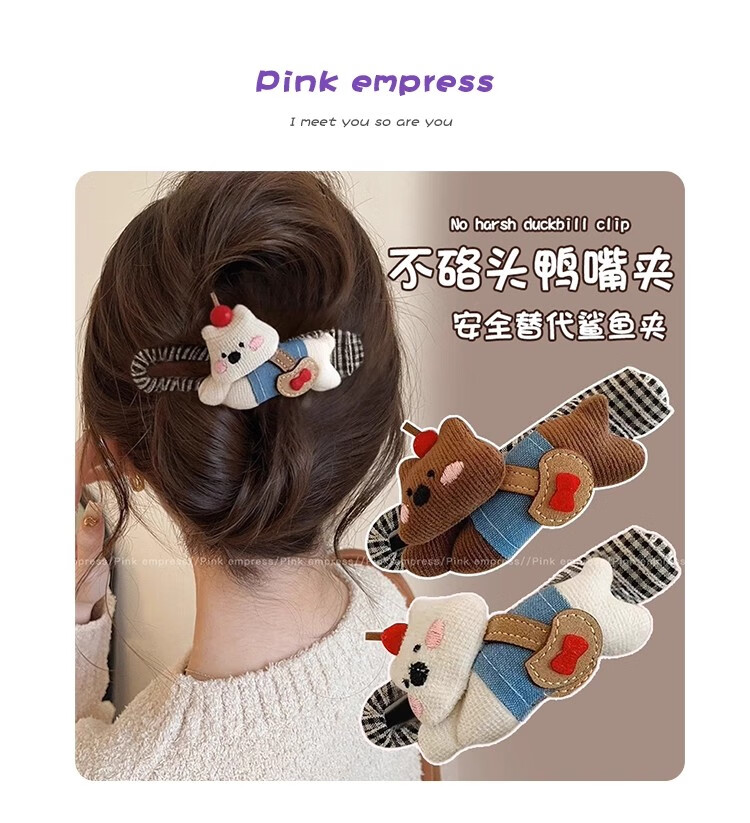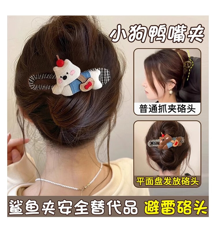 Light luxury bow duckbill hairpin for women 2025 new high-end one-word clip on the back of the head, grabber hairpin gift 1# Cherry White Puppy Duck Clip