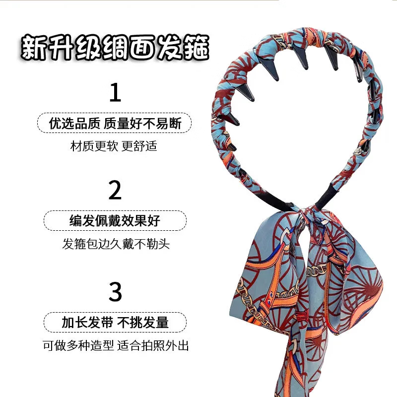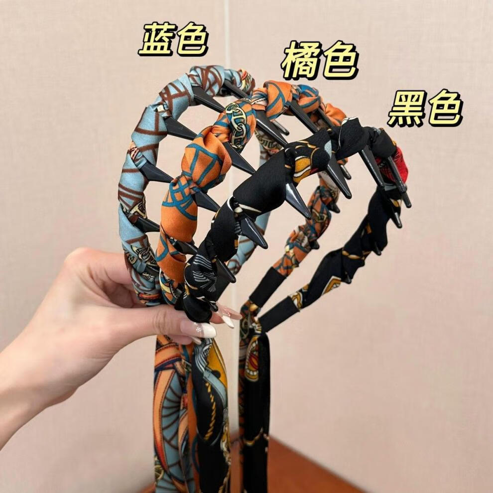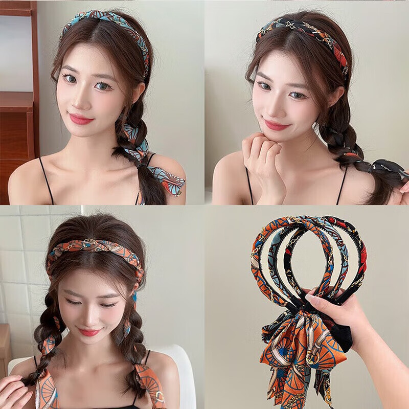 New Gongque Retro Printed Streamer Tooth Comb Hairband, One-piece High Skull Hairpin, Braided Hair Ribbon, Headband for Women 2 Retro Streamers Orange