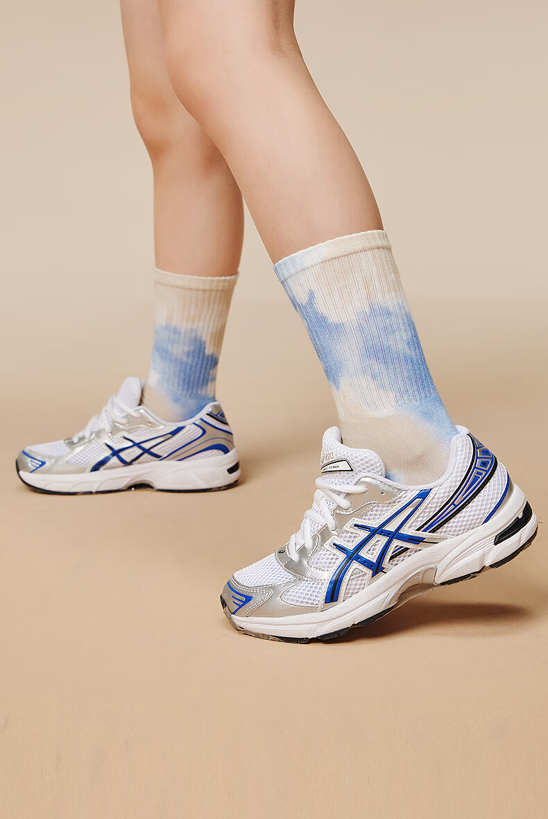 ASICS Children's 25th Autumn Fashionable Full Print Sports Socks Antibacterial, Deodorant, Soft and Comfortable Children's Socks 5014 Blue Pink One Size M